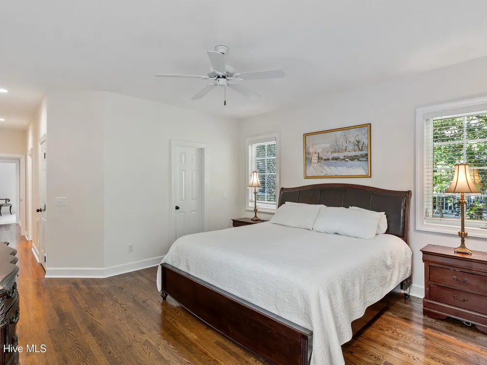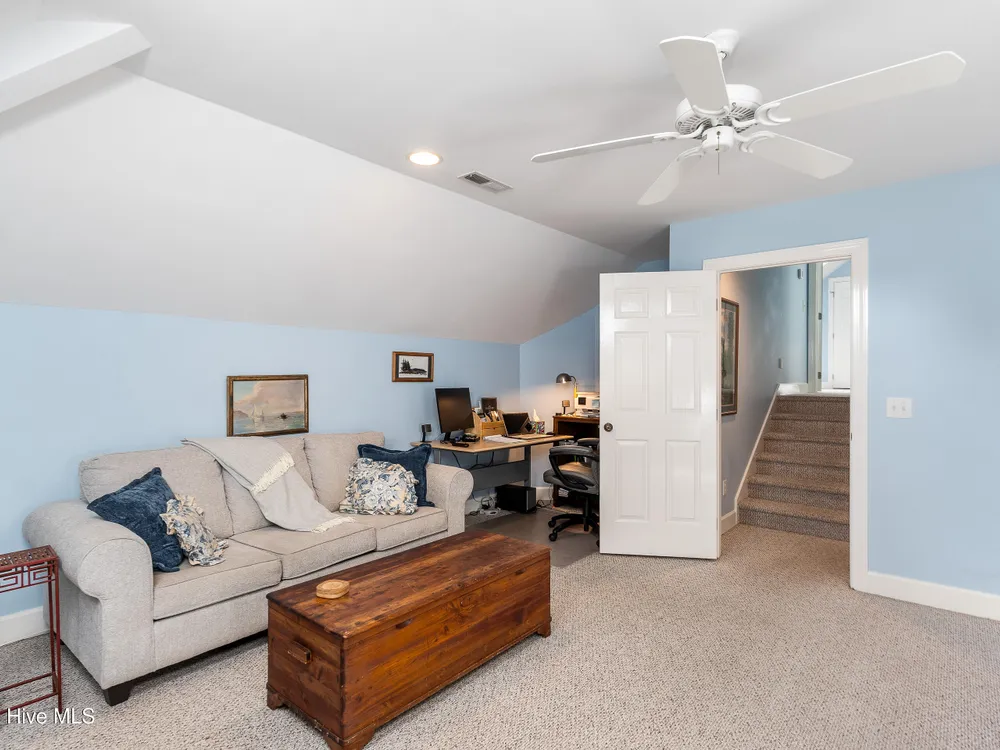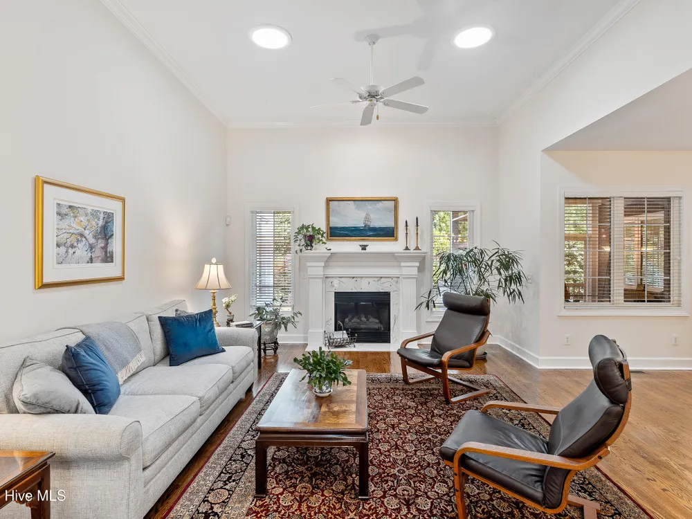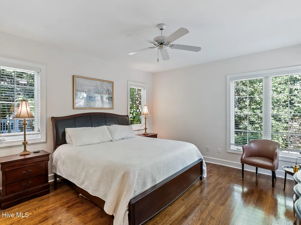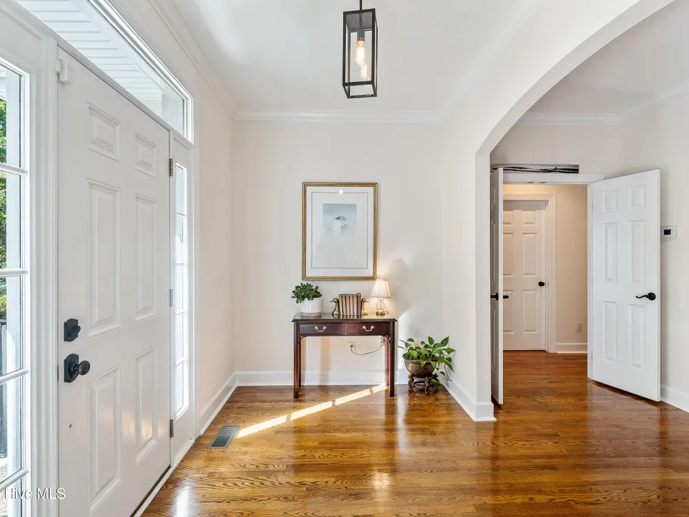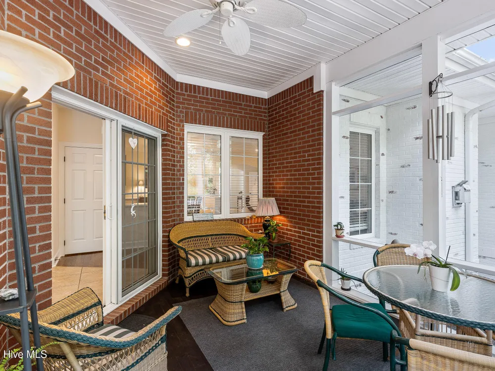 Welcome to this beautifully cared-for 3 bed, 3 bath brick home in the tree-lined neighborhood of Bishops Park. This home offers a peaceful, private backyard with a screened-in porch -- perfect for morning coffee or evening unwinding under the trees and the lovely Japanese maple. Inside, you'll find a bright and welcoming living area with natural light from solar tubes, a gourmet kitchen with a large island and induction cooktop, and an office/study on the main floor. The primary suite features a spa-like bath with heated floors, and one additional bathroom has been thoughtfully remodeled. Upstairs boasts another bedroom with full bath and bonus room over the garage. Other features include a central vacuum system, two dehumidifiers in the enclosed crawlspace, epoxy-coated garage floor, and over 700 sq ft of attic storage. Deeded water rights to a private boat ramp with dock and separate picnic area on the Intracoastal Waterway make this home feel like a true retreat.