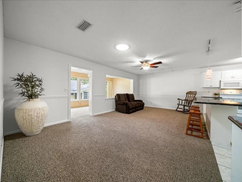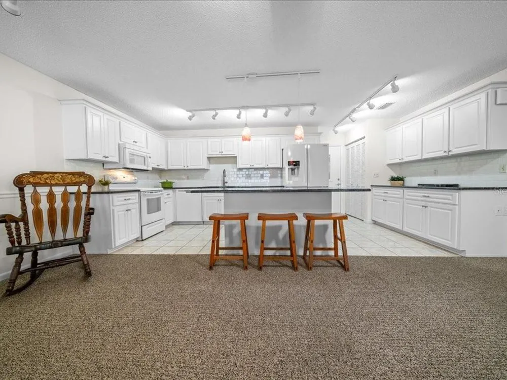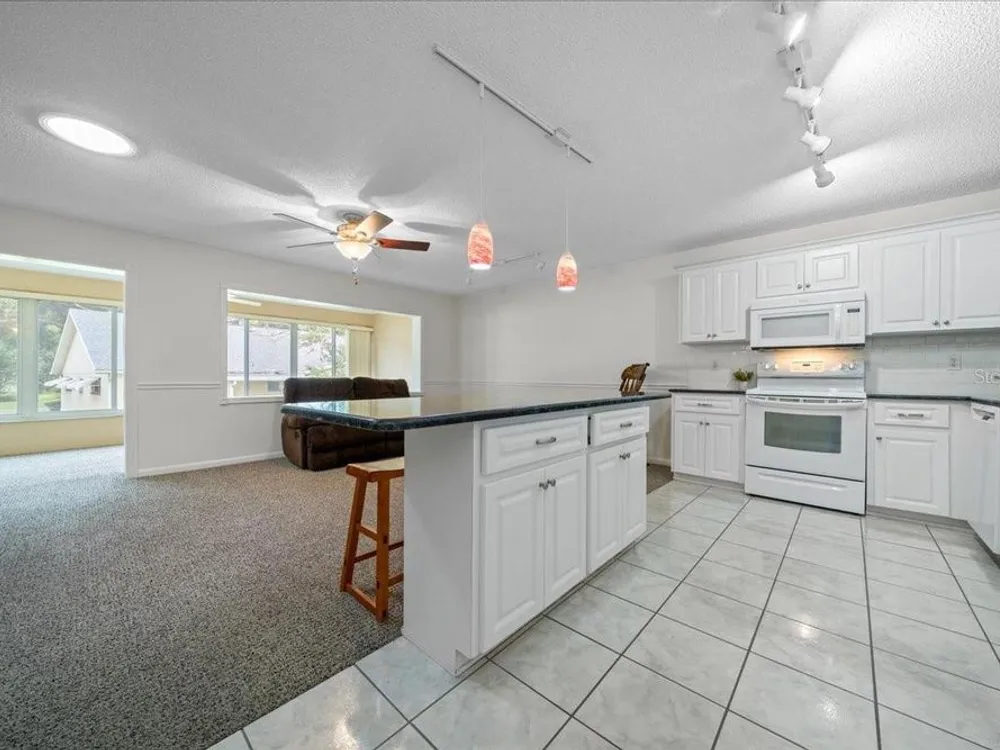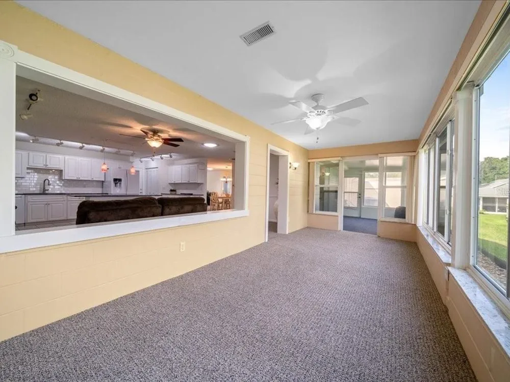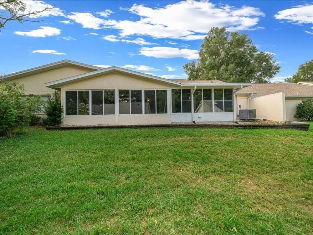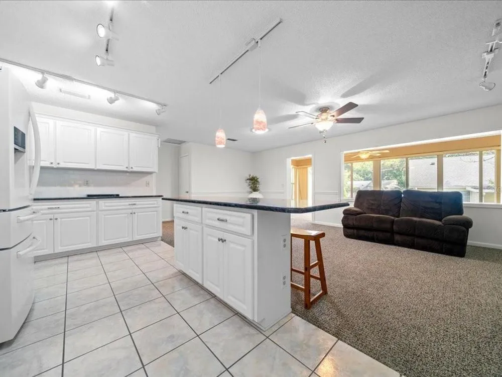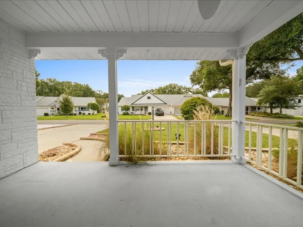 Don’t miss this beautiful 2-bedroom, 2-bath villa in On Top of the World, one of Ocala’s most sought-after 55+ communities offering an active, low-maintenance lifestyle. This tastefully remodeled villa lives large, offering 1,835 square feet of air conditioned living space plus a two-car garage. It is completely move-in ready with numerous updates throughout. Inside, you’ll find a large remodeled kitchen with gleaming white cabinetry with pull-out shelving, black granite countertops, and an oversized island with bar seating — perfect for entertaining. A The bright, open living and dining area features Berber carpet and a ceiling fan, and thoughtfully placed solar tubes in both living and kitchen areas allow for plenty of natural light throughout the main areas of the home. Both the interior and the exterior of the home have just been painted, leaving this home fresh and ready for the new owner. The primary suite offers a remodeled ensuite bath with a glass-enclosed shower and rainfall shower head and separate body spray system, while the guest bath has also been updated with a glass shower and beautiful vanity area. Additional features include a newer roof (2022), generator hookup and generator powering the entire home, and multiple flex spaces including an enclosed sunroom, an air-conditioned enclosed porch, and a rear patio ideal for outdoor grilling or relaxing. On Top of the World is a golf cart friendly community where residents enjoy three pools (two outdoor and one indoor, (plus another under construction), two fitness centers, pickleball, tennis, shuffleboard, bocce ball, horseshoes, and 175+ clubs. There’s also a woodworking shop, an archery range, a remote-control flying field, and access to three nearby shopping centers — all accessible by golf cart, if you so desire. And you’ll have plenty of time to enjoy all that and more, because this villa offers the benefit of maintenance-free living — the monthly HOA fee covers basic cable, roof repair, exterior painting every seven years, irrigation water, exterior maintenance and insurance, landscaping, trash and recycling, plus 24/7 gated security. If you’re looking for a well-maintained, updated villa in one of Ocala’s most vibrant 55+ communities, this home delivers everything you could want as far as comfort, convenience, and peace of mind. Make your appointment to see this beautiful home today!