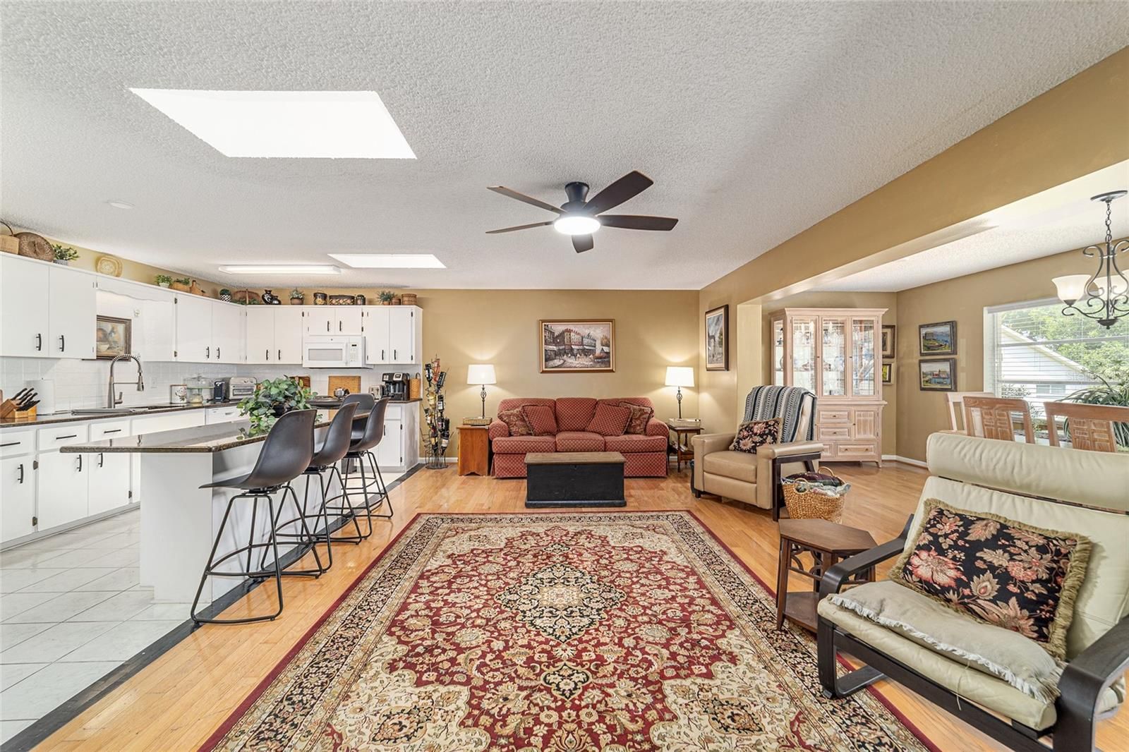 Welcome to easy living in the highly sought-after On Top of the World—an award-winning 55+ community located in Ocala, FL, known for its vibrant, active lifestyle and incredible amenities. This beautiful, extended Bostonian model is being sold fully FURNISHED (except for three small pieces), with all appliances, lamps, rugs and window treatments—making it truly move-in ready. Owner is also offering a one-year Gold home warranty for peace of mind. Recent major improvements include a New Roof in 2022, new interior paint over past two years, and beautiful granite kitchen counters. The exterior painting (approval granted for changing color to all white with black shutters) is due soon – there is a possible opportunity for buyer to select paint color if purchased in time. From the inviting covered front porch, come inside to the large living room featuring warm wood flooring and added crown moldings. The bright kitchen with white cabinetry and tile backsplash, center island, black granite counters, pantry and tile flooring opens seamlessly to the family room, creating a welcoming space for everyday living or entertaining guests. The formal dining room provides a beautiful space for sharing meals. Adding more living space, just behind the Primary Suite is the enclosed Florida Room with plank tile flooring, vinyl windows, roll-down shades, and a new fan. The spacious primary suite features a walk-in closet and a private en-suite bath with a walk-in shower, ready for you to add your personal touches. The guest bedroom and full bathroom provide comfortable visitor accommodations. The large two-car garage includes laundry area, attic access, and space for a golf cart. A private patio area surrounded by mature Holly trees, a Loquat Fruit tree, a Bottlebrush tree, and multiple azaleas is great for relaxing. Enjoy maintenance-free living with an HOA that covers lawn care, basic cable, exterior painting, and roof repairs—freeing up your time to take advantage of everything the community has to offer. Life in OTOW goes far beyond your front door. Residents have access to multiple clubhouses, three golf courses, a driving range, and pro shop, along with on-site dining options featuring full-service bars. Wellness and recreation options include fitness centers, indoor and outdoor pools, a sauna, steam room, and jacuzzi. For those who enjoy staying active, there are tennis, pickleball, basketball courts, and even a softball field. Unique amenities set this community apart—from hobby and art studios, woodworking shop, and billiards room to an arcade, miniature golf, archery, and even private flying fields for remote-control enthusiasts. Pet lovers will appreciate the dog-friendly atmosphere, including fun social events like Doggie Yappy Hours. Conveniently located near the World Equestrian Center, as well as medical facilities, shopping, dining, and historic downtown Ocala, this home offers both tranquility and accessibility. Residents can even enjoy golf cart access to nearby conveniences, plus a community courtesy bus for added ease. As part of Marion County—proudly known as the “Horse Capital of the World®”—you’ll be living in one of the most unique and celebrated equestrian regions in the country. See it today!