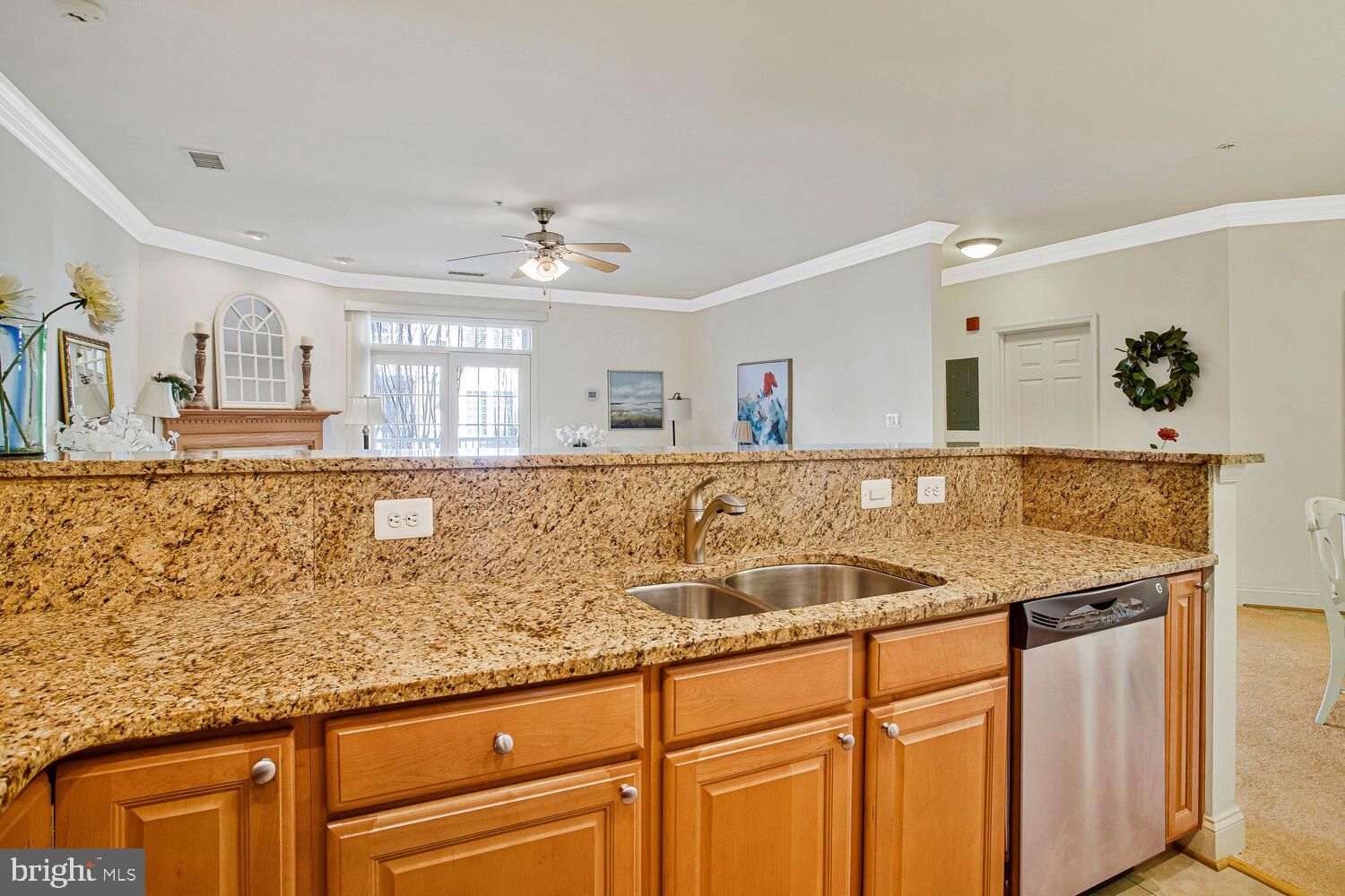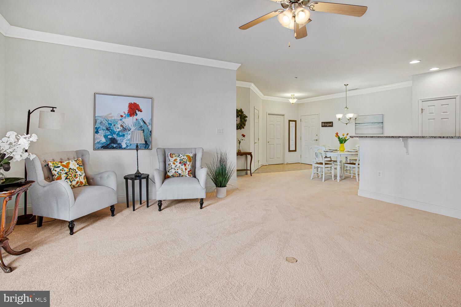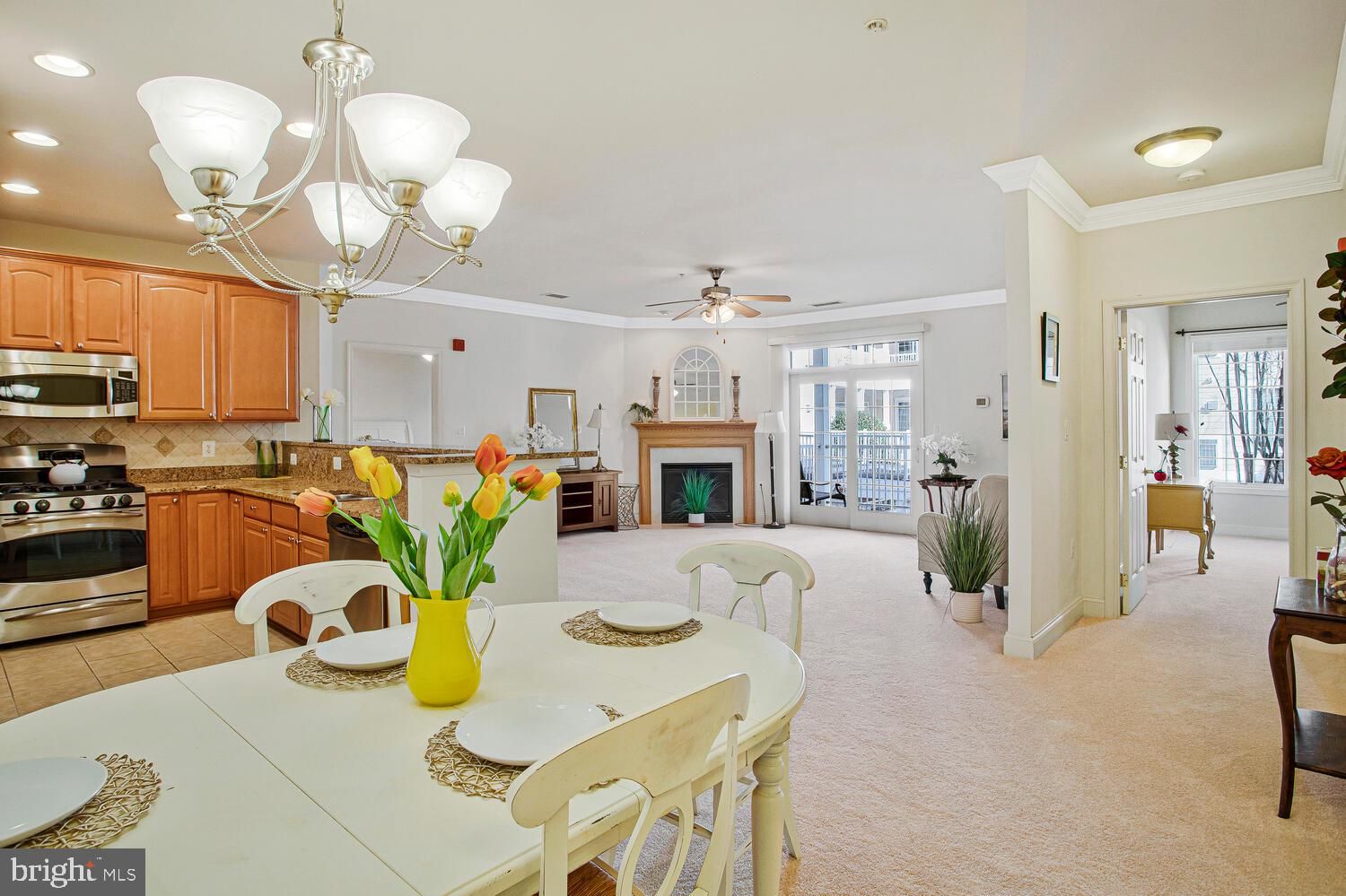 Rarely available 2 bed 2 bath condo with balcony in the garden rise Ovation building in the active adult community of Snowden Overlook. The large open living room features a cozy gas fireplace, 9’ ceilings with crown molding, and a walkout to a balcony. The kitchen has 42” cabinets, granite countertops, a pantry and stainless steel appliances. The primary bedroom comes complete with an en suite bath featuring a soaking tub, stall shower and double vanity. The large walk in closet has custom closet organization. You’ll also find a second bedroom, big enough to double as office space and guest room, and another full bath. There is also a separate laundry room with cabinets for extra storage. Updates include brand new carpet, new water heater (2025), and newer HVAC system (2017). Ovation has a covered parking garage with one designated space, and plenty on guest/ on street parking. Snowden Overlook is a very active 55+ community with a full time staffed clubhouse with plenty of clubs and activities, a heated swimming pool open May-Oct, fitness center, and guardhouse (manned form 8pm-5am daily) and security gate. The neighborhood is conveniently close to shopping, restaurants, medical facilities, BWI international airport, and all major commuter routes. Don’t miss out on this rare gem!