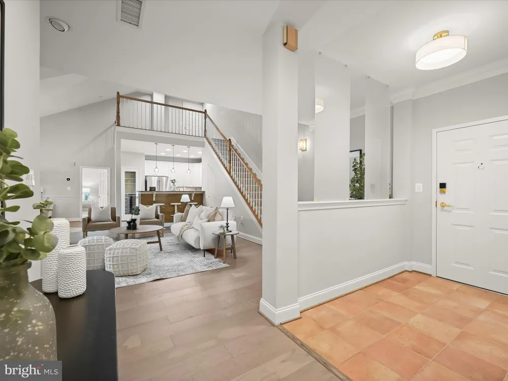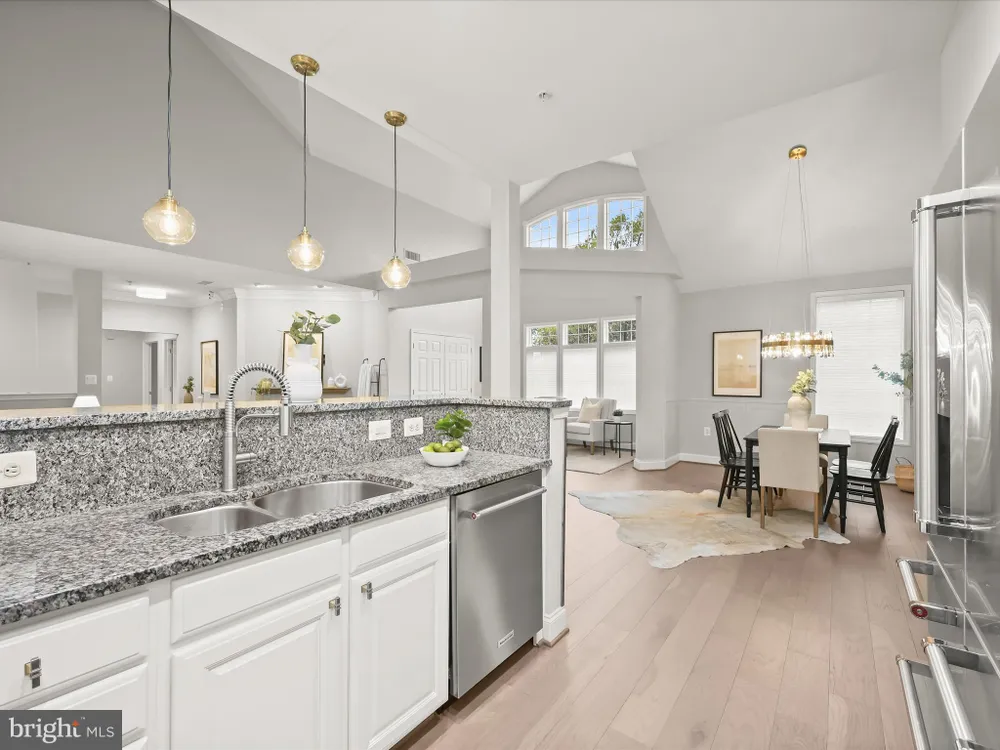 Luxury Living in Snowden Overlook, Impeccably Updated 3-Bedroom Condo. Welcome to this stunning 3-bedroom, 2-bath luxury condo nestled in the highly sought-after, 55+ gated community of Snowden Overlook in vibrant Columbia. Featuring a dramatic vaulted ceiling and a sun-filled open floor plan, this home offers sophisticated style, thoughtful updates, and low-maintenance living at its finest. The elegant main living space showcases luxury vinyl plank flooring, designer lighting, and a spacious living and dining area with a charming loft overlook. The chef’s kitchen is a true centerpiece, boasting refreshed cabinetry, granite countertops, stainless steel appliances, pendant lighting, a wine refrigerator, and a walk-in pantry with a custom door. The primary suite is a serene retreat featuring a walk-in closet with custom organization system and a spa-inspired en suite bath complete with a soaking tub, separate shower, and dual vanity with updated lighting and mirrors. Two additional bedrooms, an updated hall bath, and a well-appointed laundry room round out this beautifully designed home. Notable luxury upgrades include: LVP flooring on the main level, custom window treatments in the sunroom, wainscoting in the dining area, new washer/dryer and stainless appliances, ceiling fans, lighting, and door hardware, keyless entry, frosted privacy glass, and security camera system. Enjoy resort-style amenities including a clubhouse, fitness center, cinema room, and swimming pool, all in a vibrant, secure community. Ideally located close to premier shopping, dining, and entertainment, with easy access to major commuter routes. This is the one you’ve been waiting for style, comfort, and convenience in one of Columbia’s most desirable active adult communities.