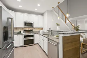 - Dishwasher, Disposal, Dryer, Exhaust Fan, Humidifier, Icemaker, Microwave, Refrigerator, Stove, Washer, Built-In Microwave, Oven - Self Cleaning, Oven/Range - Gas, Stainless Steel Appliances, Water Dispenser, Water Heater