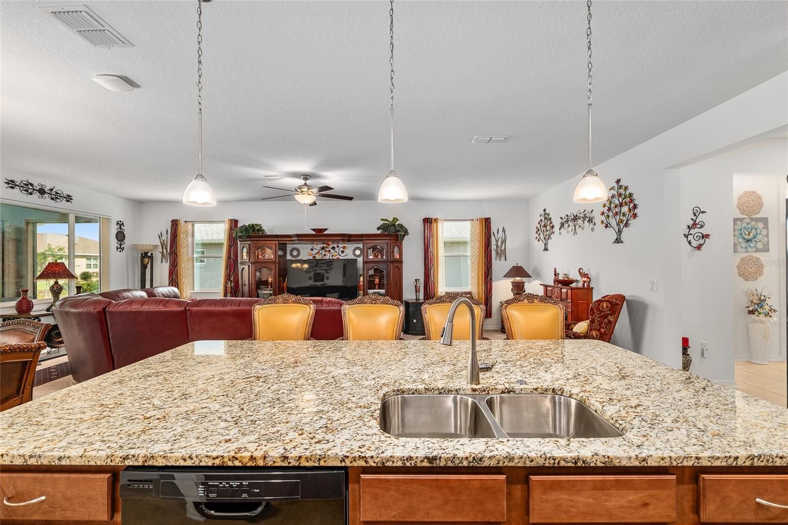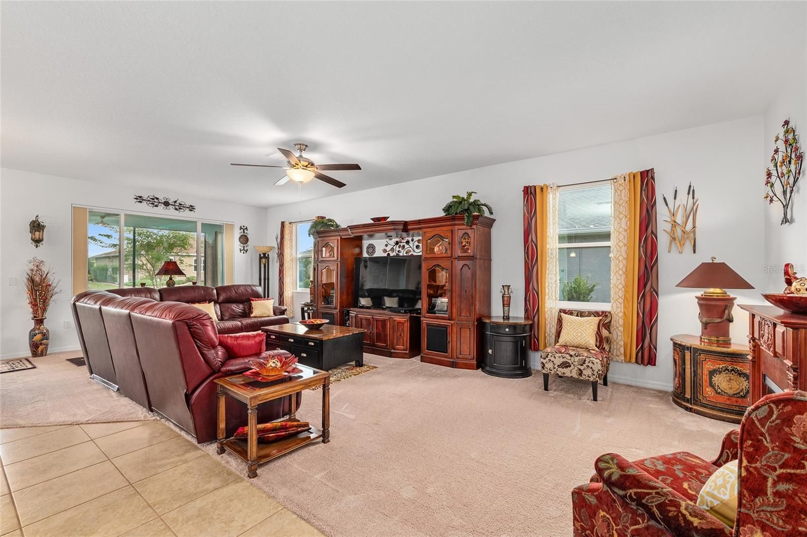 - Ceiling Fan(s), High Ceilings, Kitchen/Family Room Combo, Open Floorplan, Smart Home, Thermostat, Window Treatments