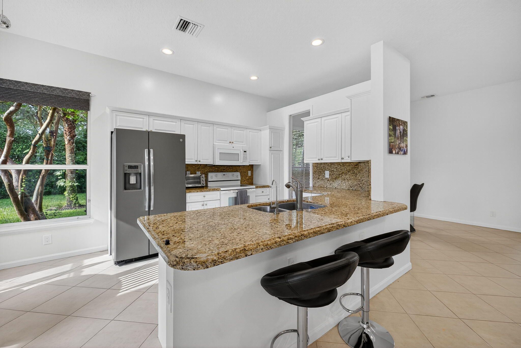 This 3BR/2BA home sits on a private corner lot at the end of a dead-end street/cul-de-sac and features high ceilings and abundant natural light and a brand-new roof and complete panel protection! Recently painted kitchen cabinets with granite countertops, and remodeled baths with modern vanities, vessel sinks, and updated lighting. Double-entry glass doors with electronic key, fresh interior paint, and walls in perfect condition. AC (2019), water heater (2018), full-size washer/dryer in AC'd laundry room, epoxy garage flooring, and new carpet in 2nd BR. Large backyard with gorgeous view, spacious patio, and hot tub. This community paints homes every 7 yrs, comes with alarm, cable & internet & lawn care.