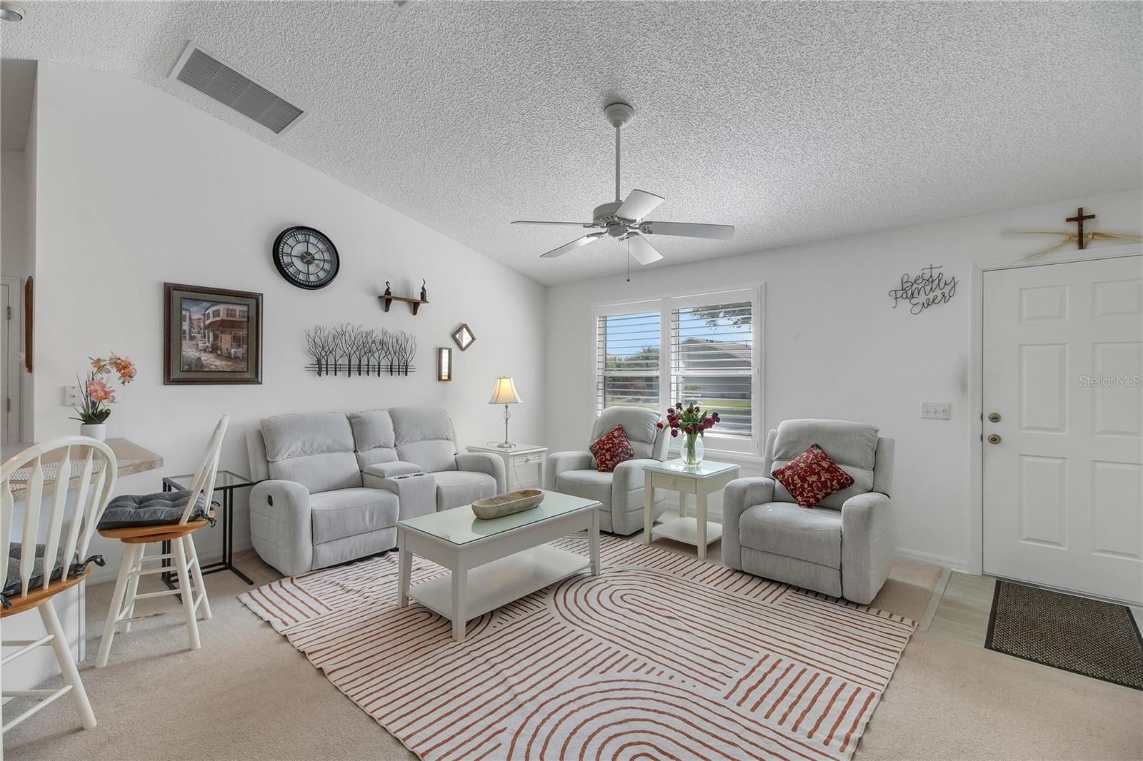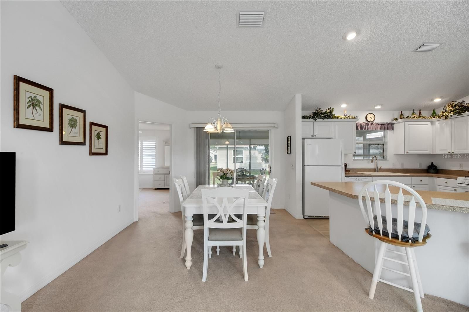 Welcome home to this beautifully maintained ( Over $38,000 in upgrades since owned in 2022) , BOND PAID 2-bedroom, 2-bathroom partially furnished property located in the desirable Village of Lynnhaven. Step inside to discover vaulted ceilings, a neutral color palette, plantation shutters, and tasteful furnishings that create a bright and inviting atmosphere. The open-concept kitchen features a spacious breakfast bar, crisp white cabinetry, and newer appliances (2024), with both electric and gas hookup options available. The primary suite offers generous space, a walk-in closet, and a private ensuite bathroom complete with a separate sink/vanity area. An oversized enclosed lanai—enhanced with new electric shades—provides the perfect spot to relax year-round, while the outdoor patio invites you to enjoy Florida’s beautiful weather. Additional updates include a new roof (Jan 2023) and refreshed landscaping, adding to the home’s curb appeal and peace of mind. Also the HVAC age is 2012. Ideally situated less than 10 minutes from Lake Sumter Landing, this home combines comfort, style, and convenience. Call for your private showing!