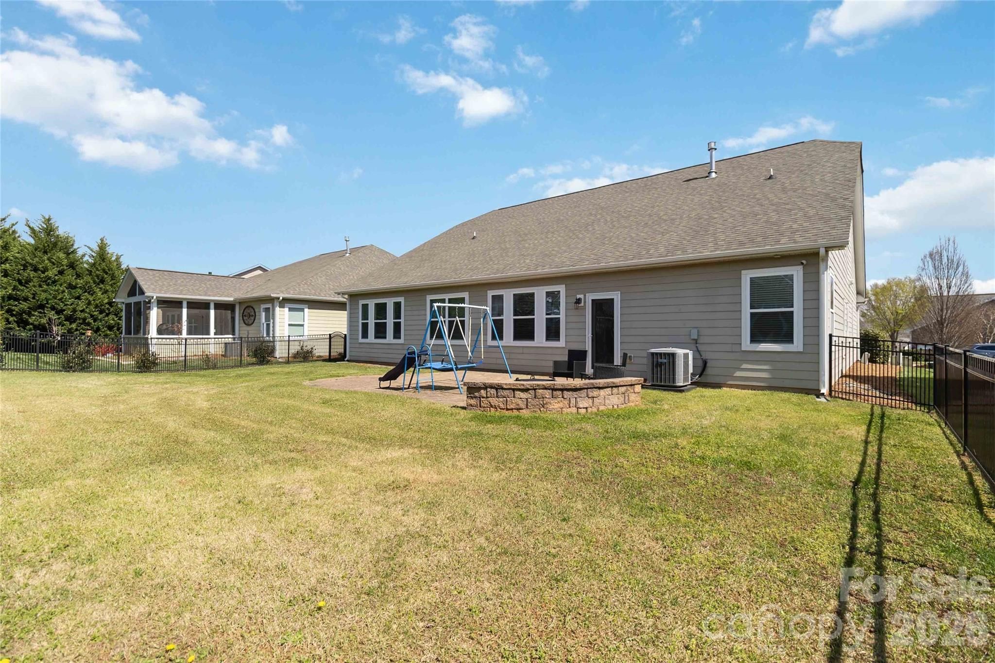 Welcome to effortless living in The Vineyards on Lake Wylie! This beautifully maintained ranch offers 3 bedrooms and 2 full baths, all within a thoughtfully designed open-concept layout. The kitchen is equipped with granite countertops and stainless steel appliances, seamlessly connecting to a bright and inviting living space—perfect for both entertaining and everyday living. The spacious primary suite features a walk-in closet and a private en-suite bath with dual vanities and a relaxing soaking tub. Step outside to a flat, fenced backyard complete with a firepit and playset—ideal for gatherings or quiet evenings at home. The open-air patio provides the perfect spot to grill or unwind while enjoying the neighborhood’s welcoming atmosphere. Additional highlights include a brand new HVAC system. Residents enjoy resort-style amenities including lake access, scenic walking trails, two pools, a playground, clubhouse, fitness center, tennis courts, and more. Conveniently located near shopping, dining, and with easy access to Uptown and the airport, this home perfectly blends comfort, convenience, and lifestyle in one of Charlotte’s most sought-after communities.