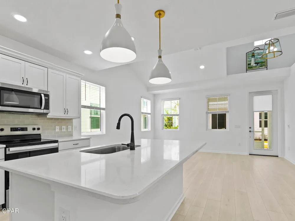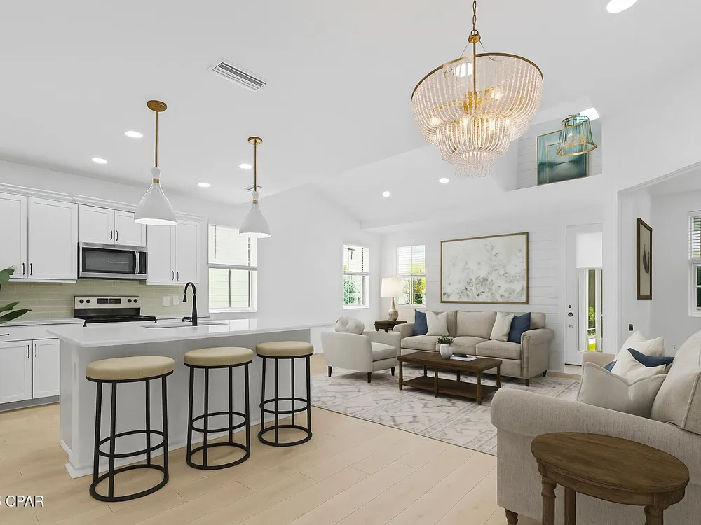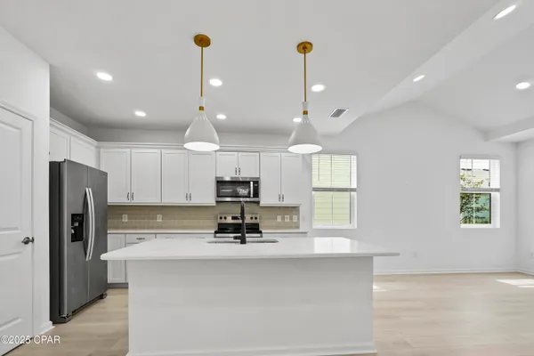 Relaxed Living in Latitude Margaritaville Watersound... Active Level 55+ Lifestyle Welcome to your personal slice of paradise in the highly sought-after 55+ community in coveted phase 6bc with beloved Flip Flop Square for phase parties and fellowship! This beautifully designed Bamboo model perfectly blends coastal charm with modern sophisticated upgrades, offering a breezy and blissful lifestyle just minutes from the sugar-white sands and Emerald waters of the Gulf. Step inside to discover an open, airy layout drenched in natural light, thoughtfully accented with designer lighting selections complimenting the home's elegant style with a beautiful backsplash that adds a warm and welcoming glow throughout the living space. From the moment you enter with upgraded front door allowing more light to flood in, you'll be captivated by the home's serene palette and fresh, coastal-inspired design, creating a space that feels both elegant and effortlessly comfortable. The heart of the home features a spacious living area ideal for entertaining, flowing seamlessly into the dining space and beautiful open kitchen with upgraded laminate flooring. You'll love the clean lines, quartz countertops, and premium cabinetry including pullouts, plus a gas line for a gas stove — all framed by large windows that invite the Florida sunshine indoors. Retreat to the owner's suite where relaxation awaits. Enjoy an elegant en suite bath complete with a fully tiled walk-in shower that looks like beach waves, dual vanities, and refined finishes that echo the natural coastal tones of the area ready to add your favorite splash of color. A split bedroom layout ensures privacy and ample space for guests. Outdoors, your private screened lanai is the perfect place to sip your morning coffee or unwind under the stars — coastal breezes included. Living here means more than just a beautiful home. Latitude Margaritaville Watersound offers a vibrant, active adult lifestyle with world-class amenities including resort-style pools, restaurants, fitness centers, and live entertainment multiple times weekly— all designed for those who want to enjoy life to the fullest. ✨ Why you'll love it: -Airy open-concept floor plan -Elegant tile showers & high-end finishes -Beautiful lighting upgrades throughout -Fresh coastal color palette and décor -Access to an unmatched 55+ community lifestyle Let the rhythm of the waves and the joy of island-inspired living welcome you home. Schedule your private tour today — paradise is waiting!