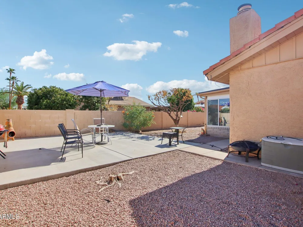 Excellent single-level home on a prime corner lot in the desirable 55+ community of Sun Lakes. The spacious layout includes a large great room, family room with wet bar, and an Arizona room, offering endless space for both relaxing and entertaining. The kitchen features a cozy eat-in area, generous pantry, and ample cabinetry. The primary suite offers dual closets and a private en-suite bath with linen storage. Additional highlights include a newer water heater, laundry room, and a 2-car garage with built-in workbench. Enjoy Arizona living outdoors with a 25x25 ft patio, mature orange tree, and two side yards with plenty of extra space. As a resident of Sun Lakes, you'll also enjoy world-class amenities including tennis and pickleball courts, billiards, multiple pools, golf, workout facilities, a clubhouse with recreation rooms, shuffleboard, and so much more.