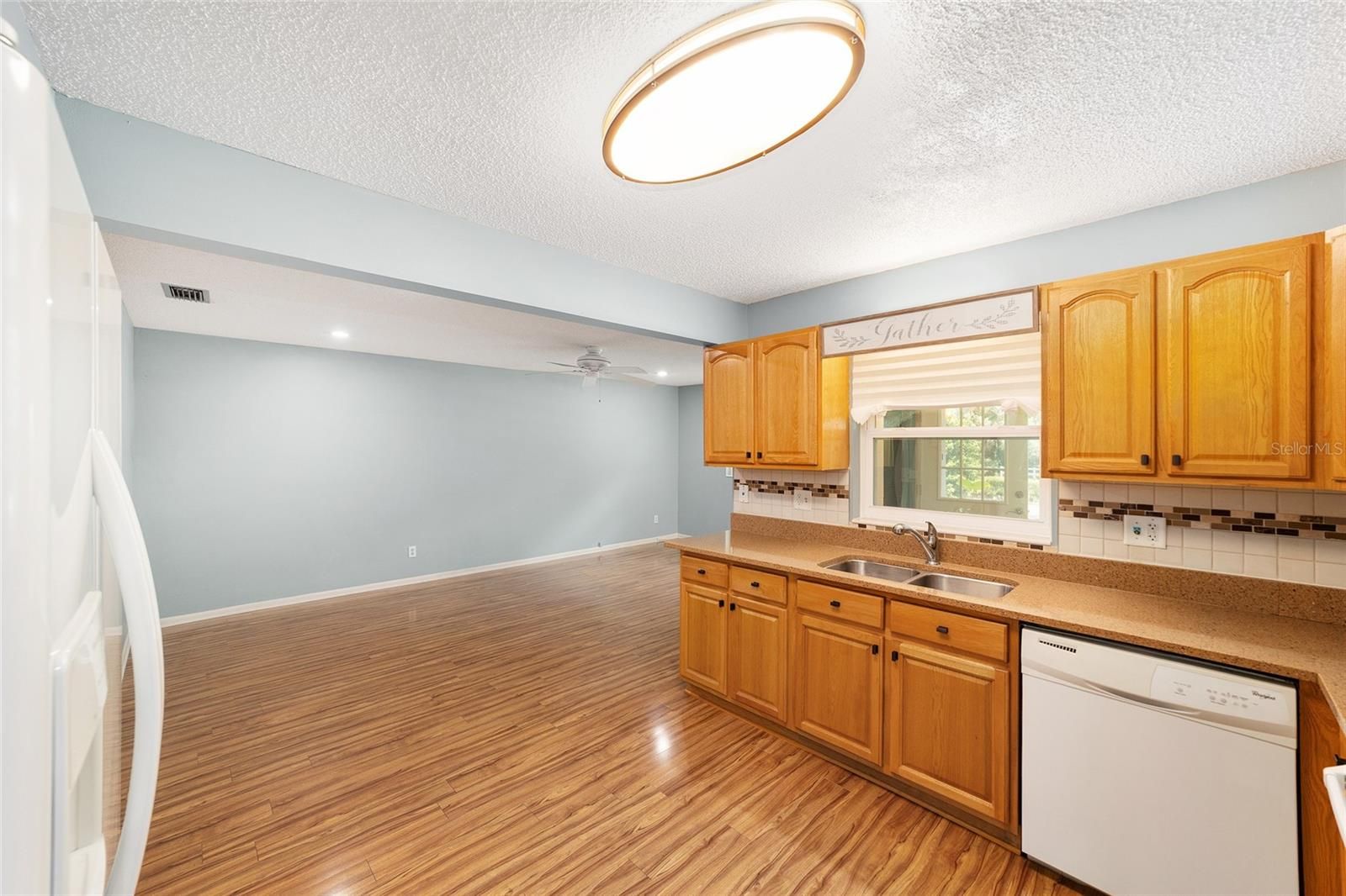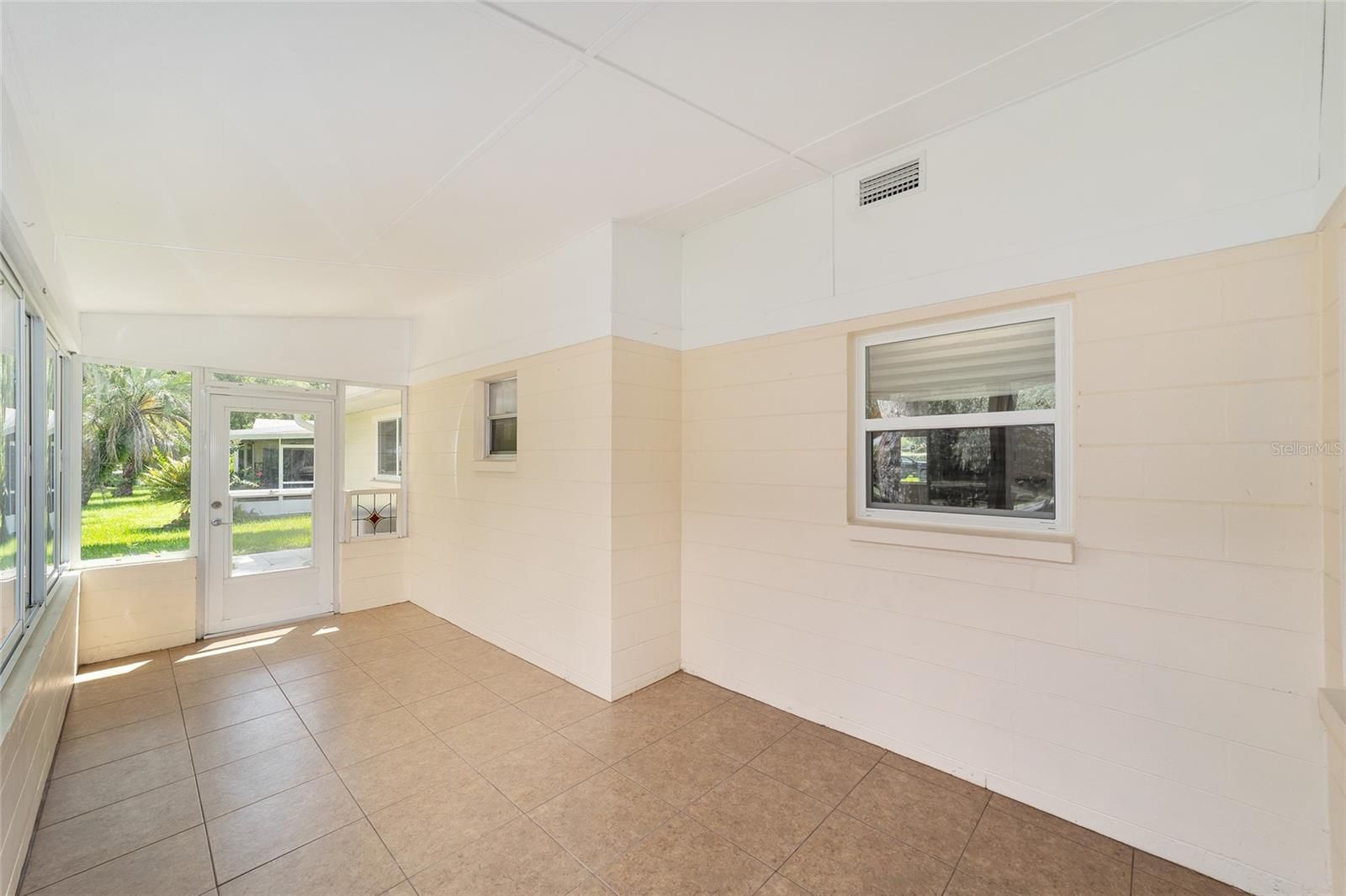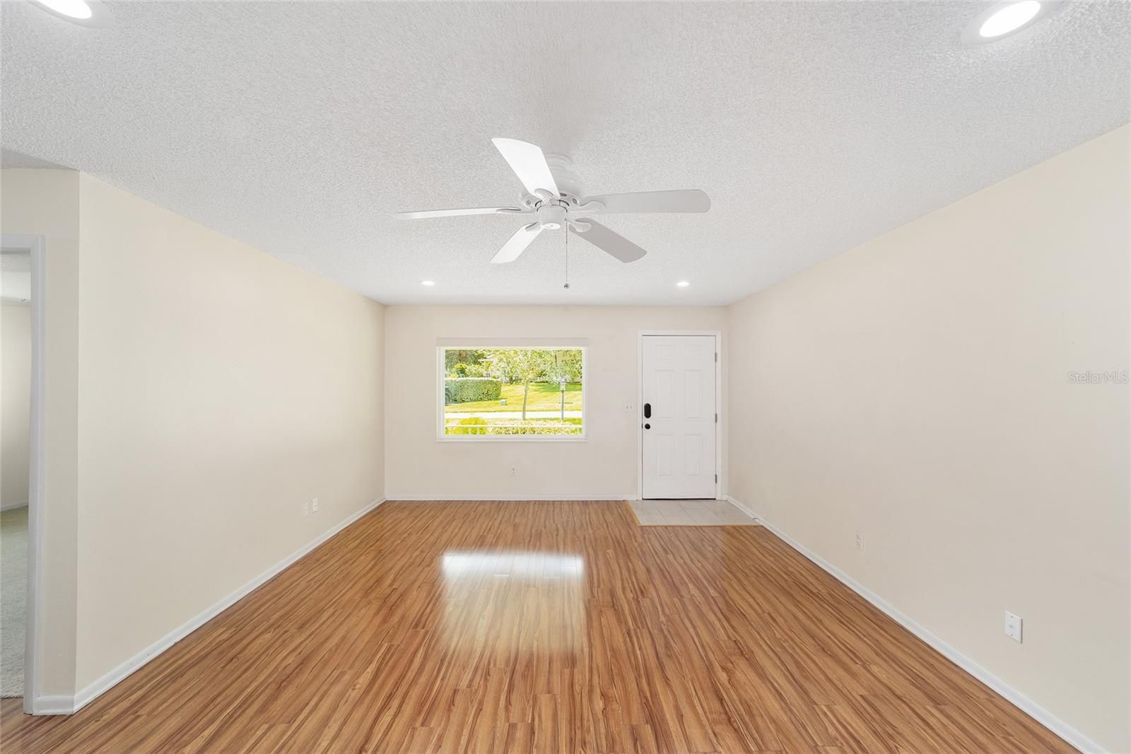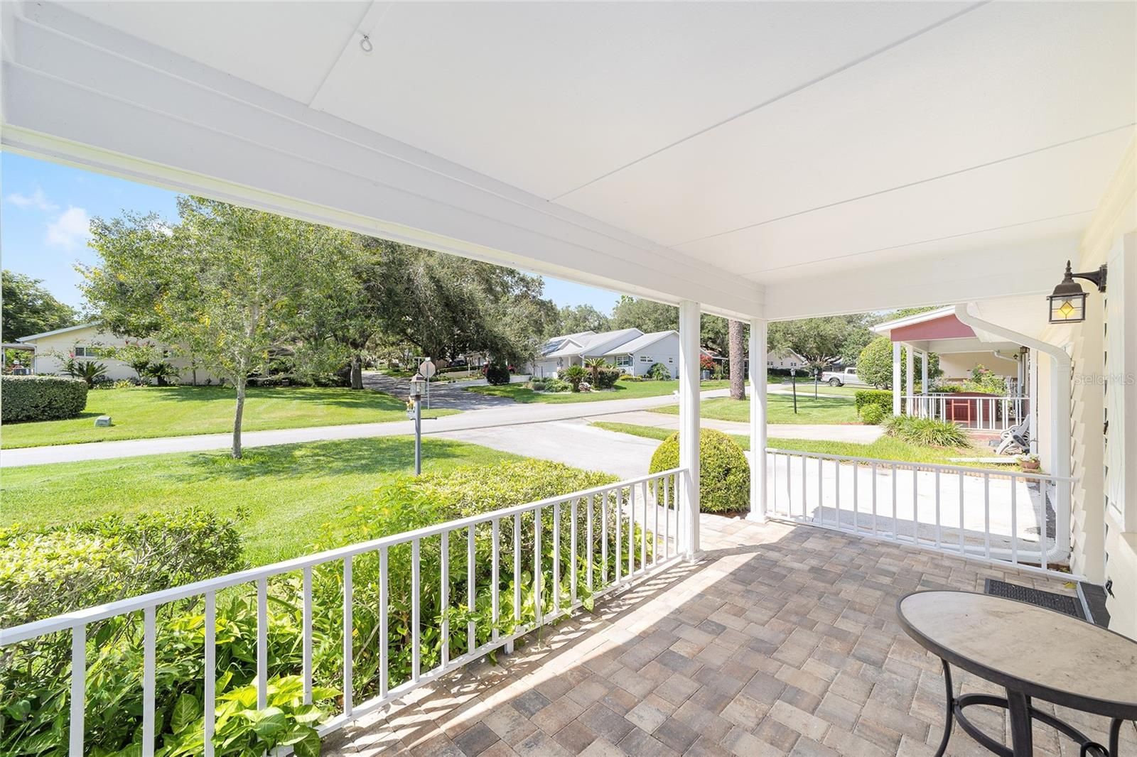 One or more photo(s) has been virtually staged. PRIVACY END UNIT: Welcome to this beautifully updated Expanded Montgomery Villa, featuring 2 spacious bedrooms, 2 bathrooms, and a coveted 2-car garage. The home has seen several upgrades, including new windows and a new water heater in 2017, as well as an upgraded HVAC system in 2018. The updated kitchen boasts oak cabinets and sleek quartz countertops, ideal for cooking and entertaining. Throughout, you'll find recessed lighting and laminate floors, providing a contemporary feel to the open, airy space. The villa’s curb appeal is striking with a new front door with glass insert for added light, a brick paver porch and walkway, and a lush, well-maintained lawn. In addition to being an END UNIT, this villa enjoys added privacy with no rear neighbors. The main bedroom is generously sized with a large walk-in closet and an elegantly updated shower. This home has the added benefit of an enclosed 4-seasons lanai, offering versatility as an office, craft room, or cozy Florida room—all under heat and air for year-round comfort. On Top of the World is Ocala's premier 55+ active adult community with an abundance of activities and golf cart access to restaurants, shopping, entertainment, health and beauty.
