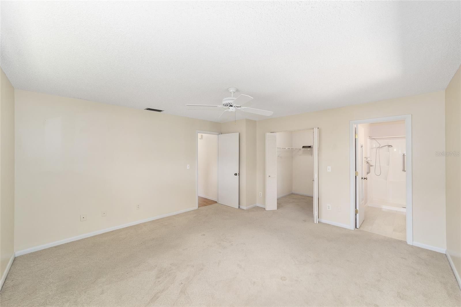 - Ceiling Fan(s), Main Level Primary, Solid-Wood Cabinets, Stone Counters, Thermostat, Walk-In Closet(s)