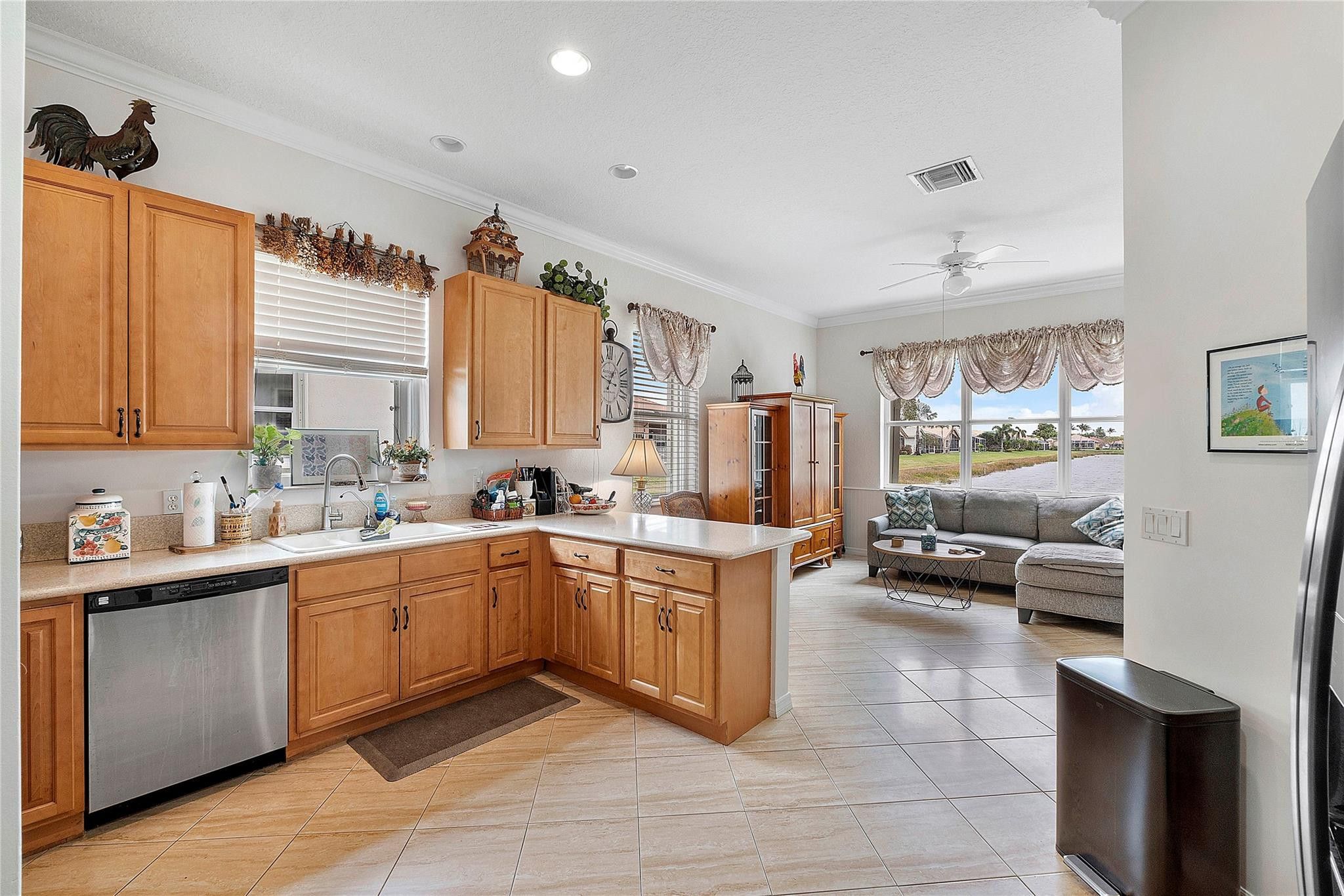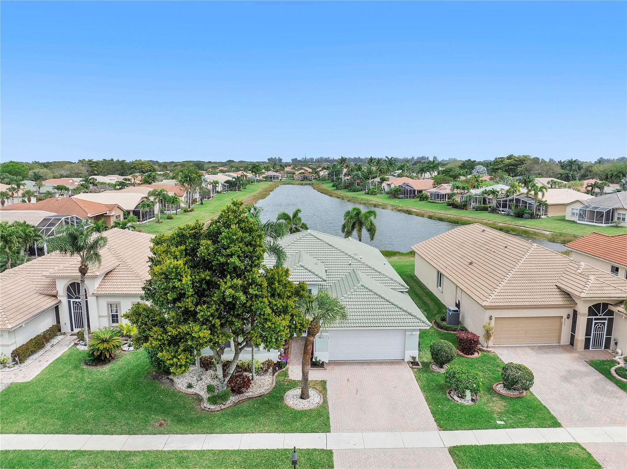 BACK ON MARKET! STUNNING WATER VIEWS IN THIS VENETIAN ISLES BEAUTY!! Enter This 4/3 home w double door entry, and feel the warmth as you gaze across the vast open floor plan which extends to a peaceful long lake view. This home features an ample kitchen 42" cabinets & tons of space also overlooking the lake. Beautiful custom tile laid on the diagonal is continuous in all living areas. Other features include accordion shutters, large screened patio to enjoy the most incredible nature & water views. Venetian Isles is truly state of the art among Boynton's Active Lifestyle communities W/ clubhouse, resort style pools, pickleball, tennis, fitness center & snack bar. Come home to this beautifully landscaped haven with all the amenities you could want. Come visit and see for yourself.
