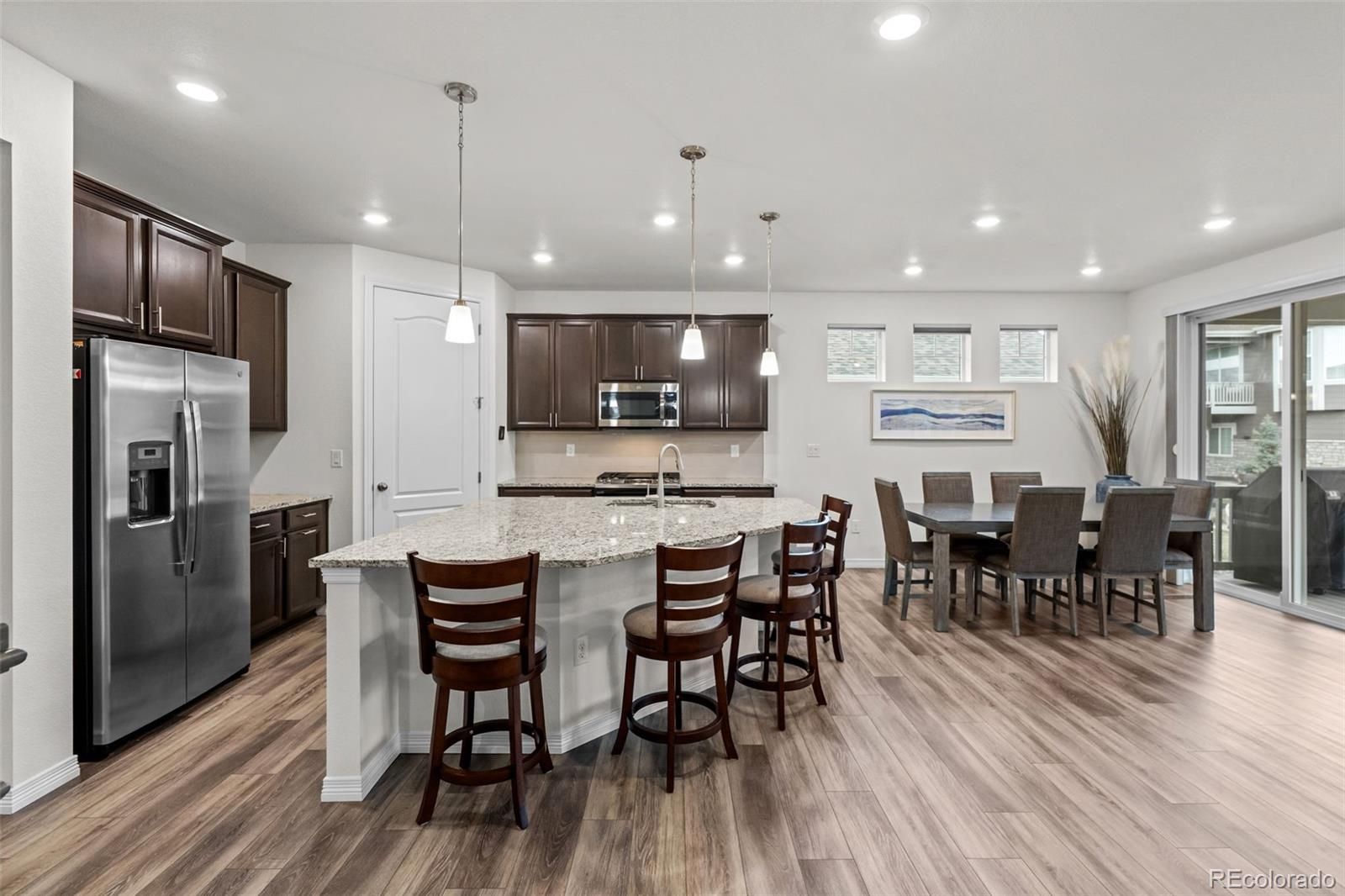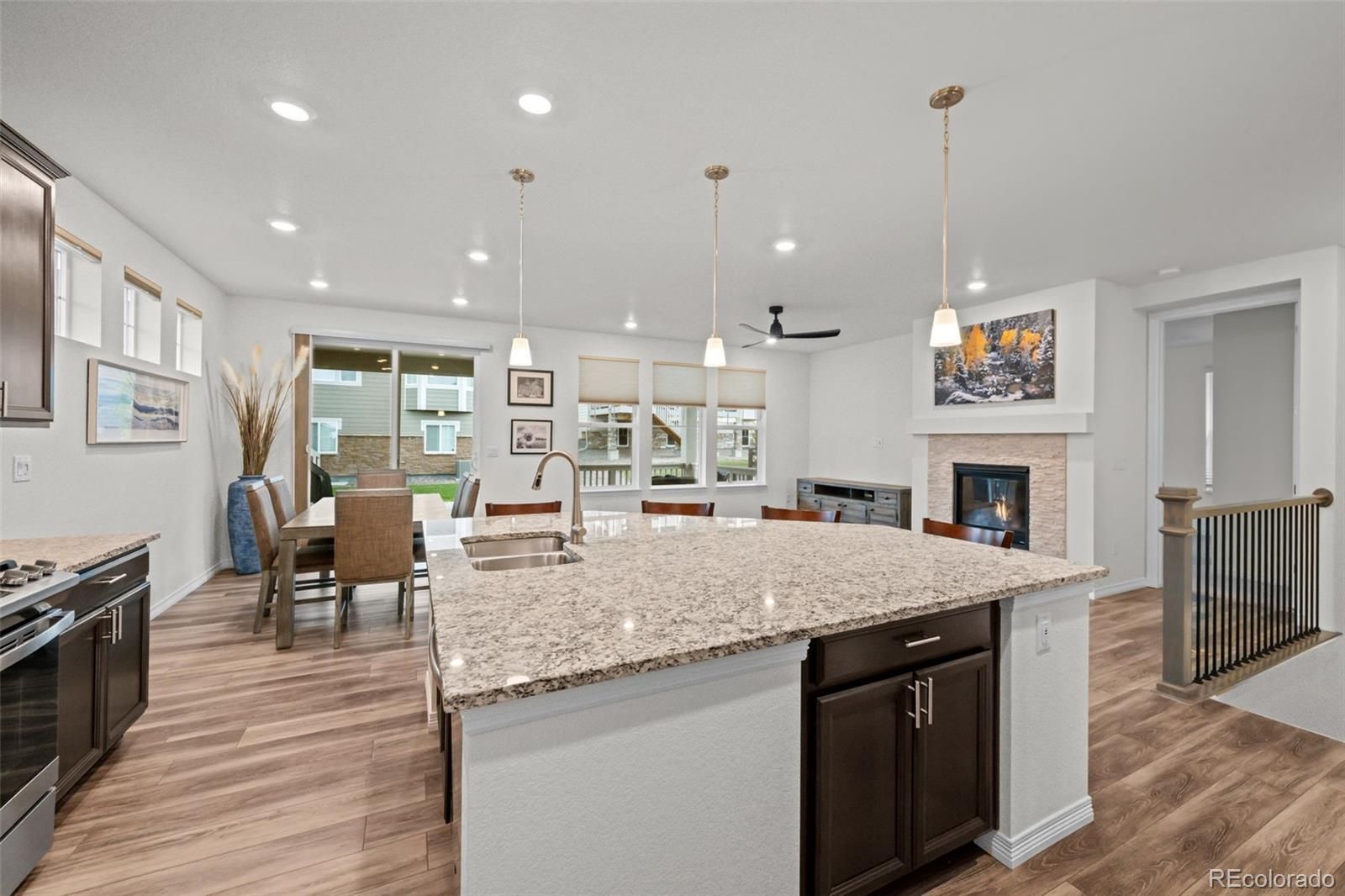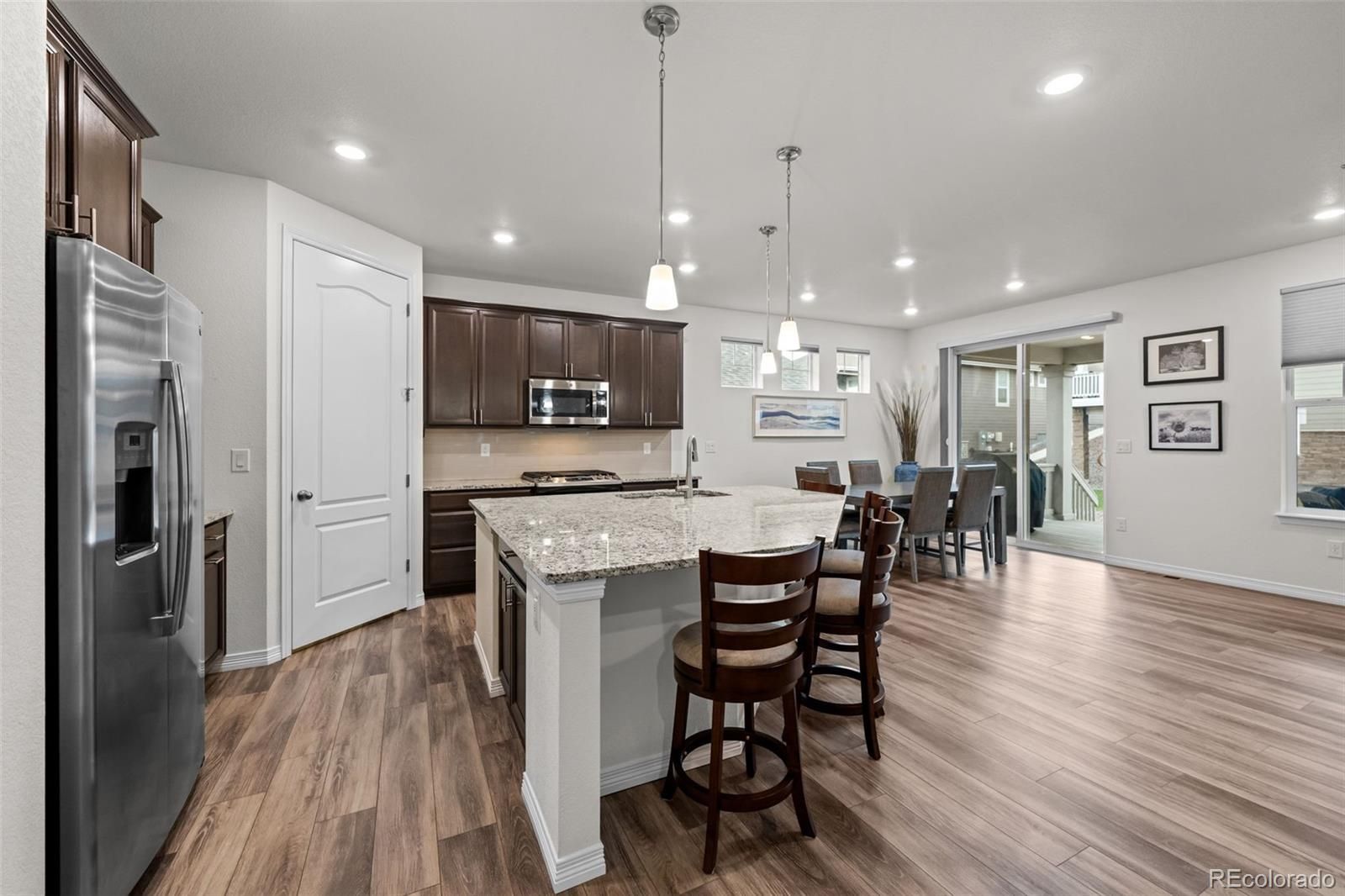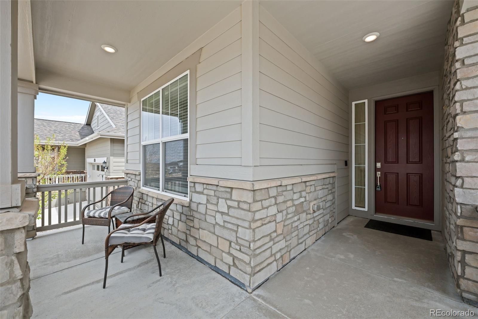 Welcome to your new home in Hilltop at Inspiration, a highly sought-after 55+ community offering exceptional resort-style amenities and an active lifestyle. This beautifully designed 2-bedroom, 2-bath home with a private study features an open-concept layout ideal for both everyday living and entertaining. The spacious great room flows seamlessly into the dining area and kitchen, complete with stainless steel appliances and modern finishes. The primary suite is light filled and spacious offering a walk-in closet, double sinks, and convenient walk-through connection to the laundry room. A secondary bedroom and full bathroom provide comfortable space for guests. Durable vinyl plank flooring runs from the entry through the main living areas, adding both style and functionality. Enjoy Colorado outdoor living with a large covered patio and welcoming covered front porch, perfect for relaxing or socializing with neighbors. Residents have exclusive access to the Hilltop Clubhouse, featuring a fitness center, resort-style pool and hot tub, tennis, pickleball, bocce courts, and a full social calendar. Located just minutes from Southlands Mall, Downtown Parker, golf courses, restaurants, and shopping, with easy access to E-470 and Denver International Airport, this home offers both convenience and lifestyle.