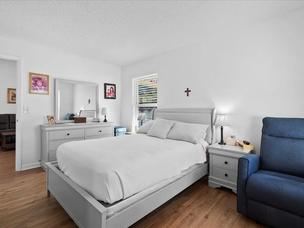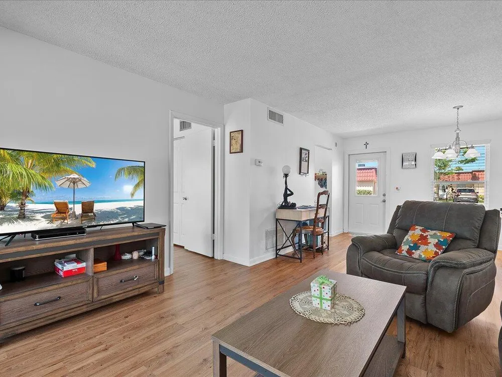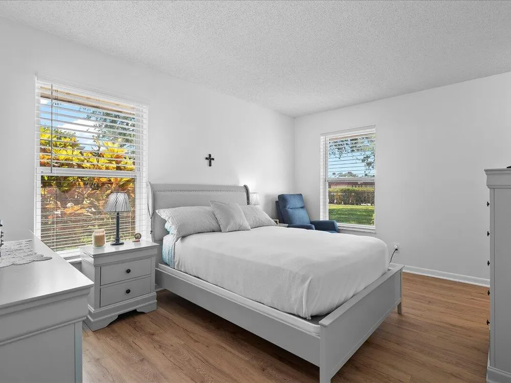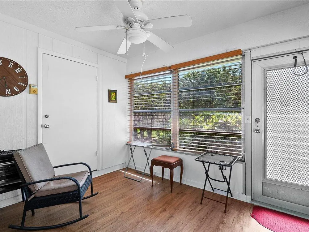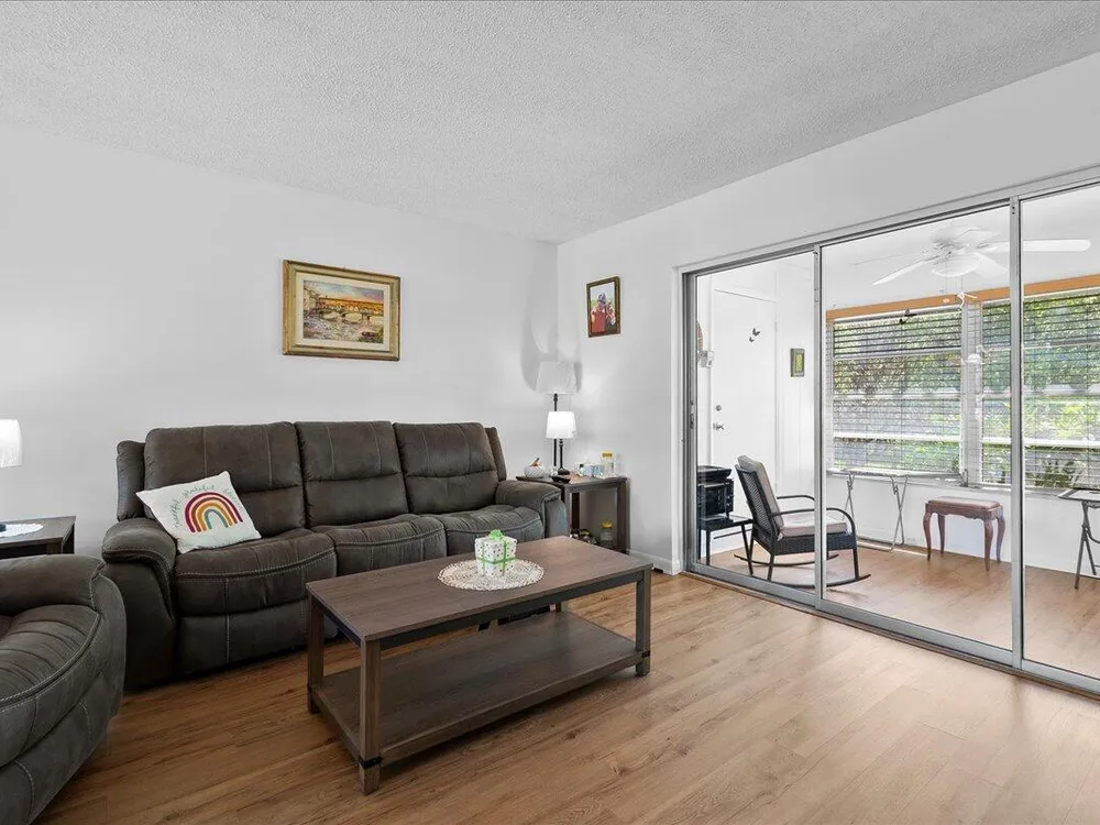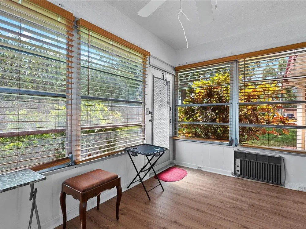 Move-In Ready! Spacious 1-Bedroom in Vibrant 55+ Community - Lake Worth, FL Don't miss this beautifully maintained and incredibly spacious 1-bedroom, 1-bath fully furnished, turn-key pet friendly villa located in the highly sought-after Covered Bridge community. This light-filled home features newer vinyl flooring throughout, a large open-concept living and dining area, and a glass-enclosed Florida room with a dedicated A/C--perfect for year-round enjoyment or seasonal living. Enjoy the ease of in-unit washer and dryer, a new roof, and assigned parking right in front of your unit for maximum convenience. This home is move-in ready and ideal for those seeking comfort, community, and convenience. Community Highlights:Resort-style clubhouse with 2 heated pools, Tennis, bocce, pickleball,