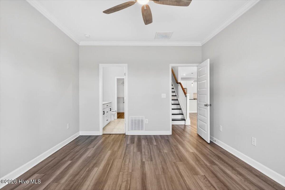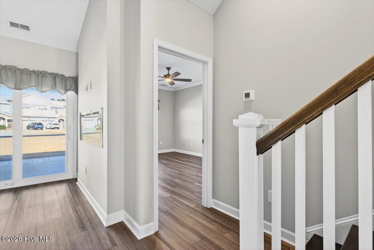 - Master Downstairs, Walk-In Closet(s), Vaulted Ceiling(s), High Ceilings, Ceiling Fan(s), Walk-In Shower, Blinds