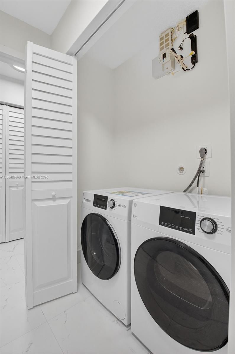 - Dryer, Dishwasher, Electric Range, Disposal, Microwave, Refrigerator, Washer