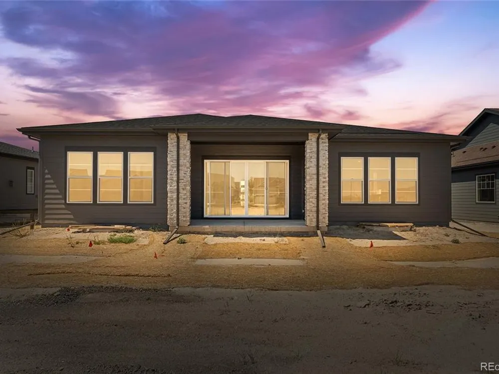 We are proud to present this lovely Pulte Homes ranch style in this stunning 55+ Active Adult Community. The Ferrara floorplan is what dreams are made of! 3 bedrooms, 2.5 baths with a practical main floor layout! The spacious kitchen flows perfectly into the café and gathering area with kitchen island - great entertaining space! This NEW BUILD home offers an open floor plan with exceptional finishes throughout. The Gathering room is pouring with natural light, high ceilings. The Chef’s kitchen features beautiful cabinets with granite counters, Stainless Steel appliances, large pantry, gas cooktop with hood. Main floor laundry offers added convenience! Eye catching front entrance, frame/stone exterior. Front landscaping is included. Enjoy a private yard ready for personalization post close! Everything is NEW, enjoy our Complete builder home warranty that brings your tremendous peace of mind. The unfinished partial basement offers a large open space for future finish if desired! Live close to shopping, dining, trails & easy access to Denver/DIA. This 55+ active adult community offers a resort-style pool, clubhouse with over 100 clubs to join, and trails throughout this thriving part of town. At Hilltop at Inspiration, you can immerse yourself in a vibrant world of 55+ Active Adult Amenities designed to support the well-being of you and your loved ones. Golfers just walk right next door to Heritage Eagle bend or you're a short drive to both Aurora Reservoir and to Cherry Creek Reservoir & State Park both offering camping, fishing, and boating and amazing recreational opportunities! Don't miss this amazing home in an amazing community!