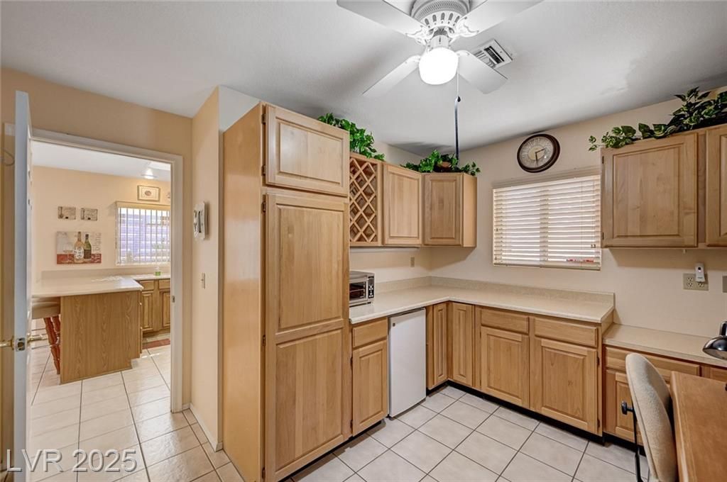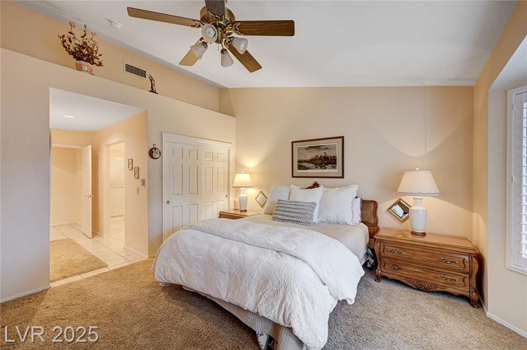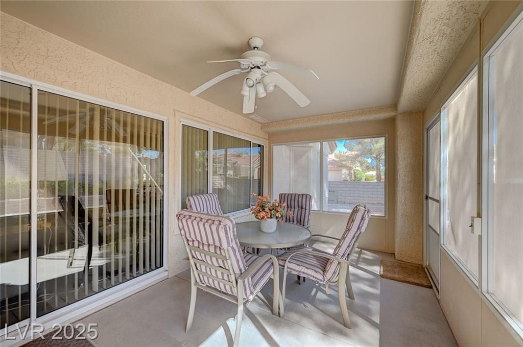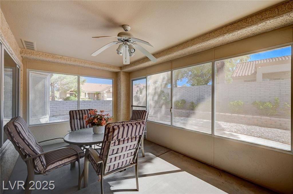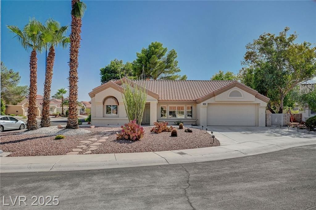 Welcome home to this SFR home with natural color choices that create a warm and inviting welcome as you enter the home. Located on a corner desirable lot located in 55+ community of Sun City Summerlin, this property features 2 bedrooms, 2 bath and a 2 car garage. The backyard is private and also has a screened in patio to enjoy and entertain guests. The primary features a walk in closet with a bath with 2 sinks and a walk in shower. Sun City Summerlin has 3 golf courses, 4 pools, gyms, activities, sport courts, theatre room, racquetball courts and so much more.
