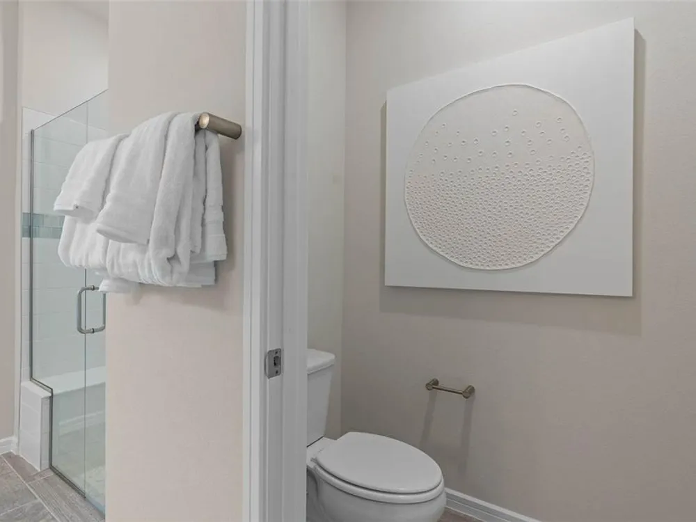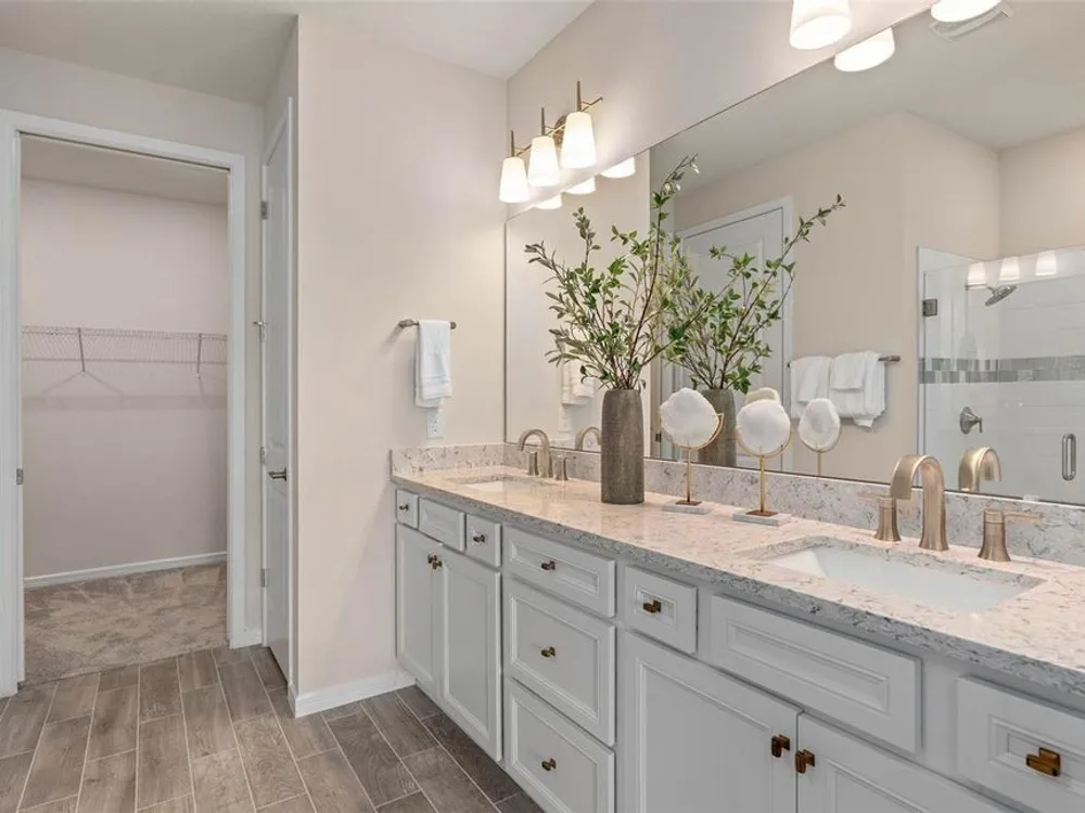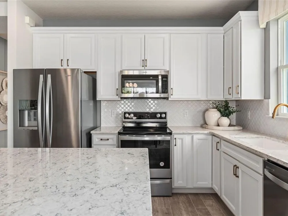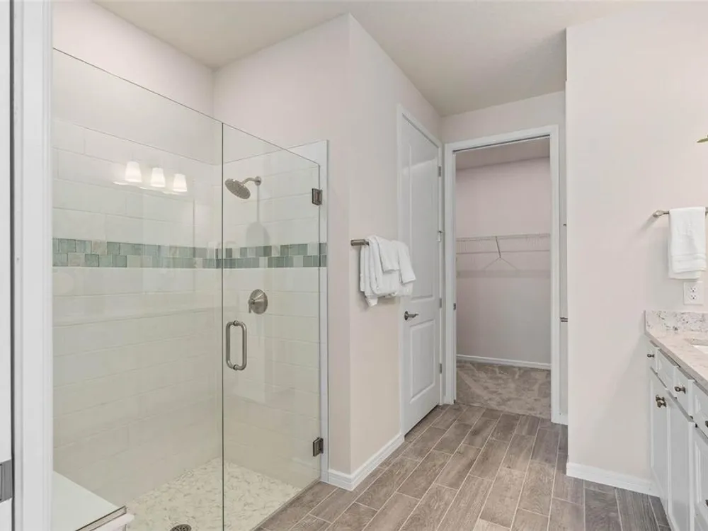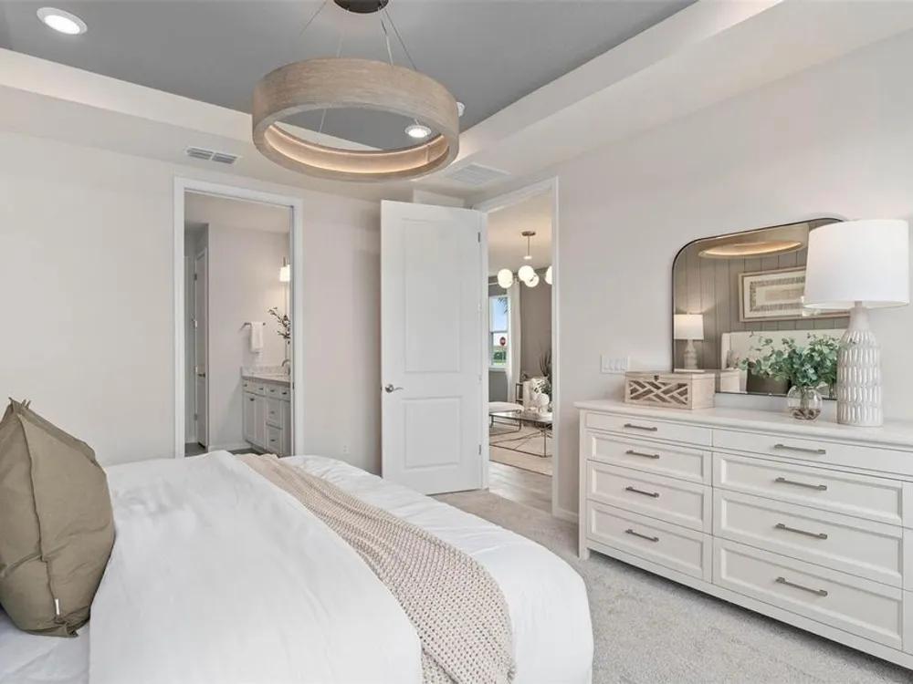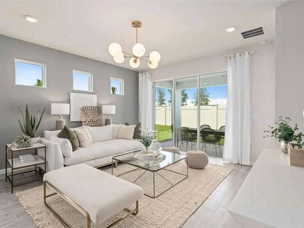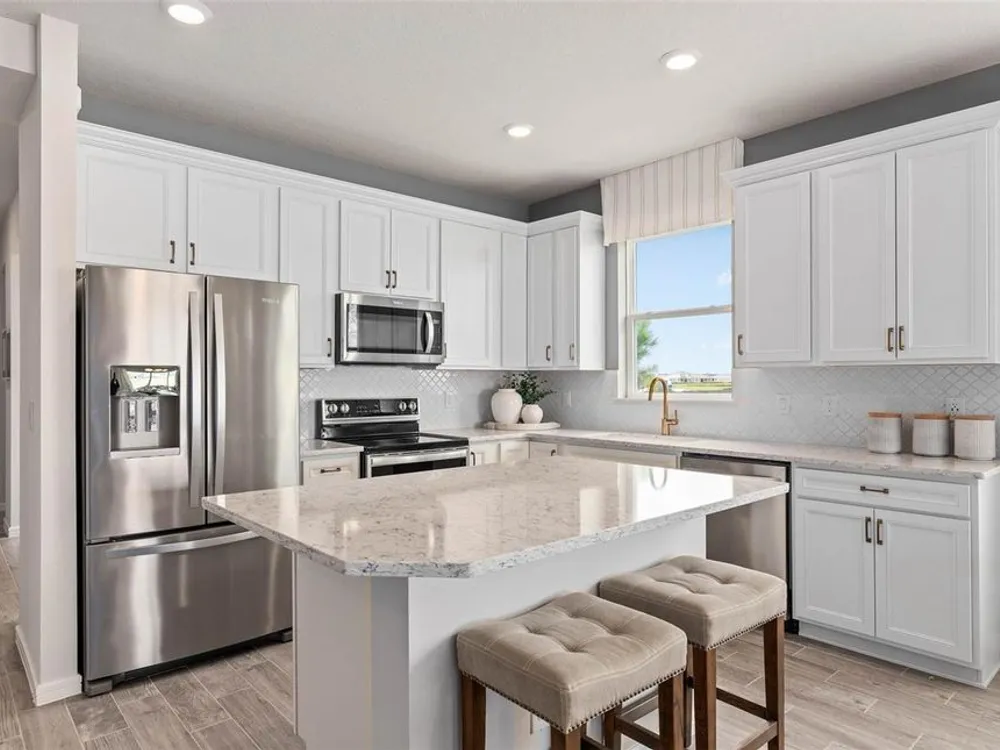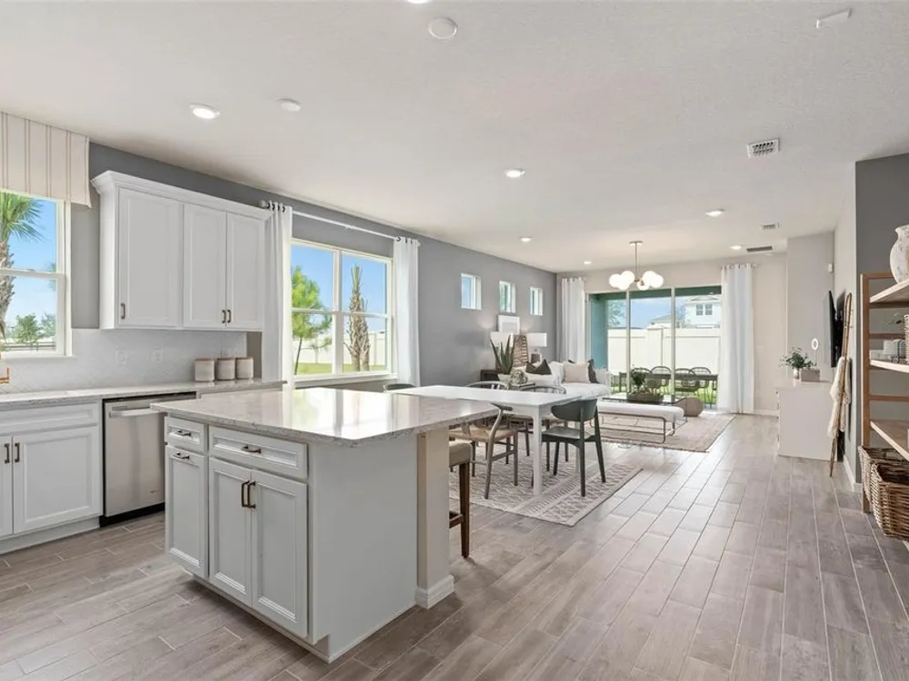 Del Webb at Viera is a luxurious guard-gated 55+ active adult community offering new construction single-family homes on a network of sparkling ponds featuring water view homesites throughout, an unrivaled location on the Space Coast, a planned breathtaking ten-acre waterfront amenity center and an established Town Center. Del Webb at Viera will offer an abundance of resort-style amenities with social events and activities centered in the stunning 30,000-square foot clubhouse, planned by a full-time Lifestyle Director. With a zero-entry pool with sun shelf, lap lanes and a heated spa you'll be relaxing like a pro. Staying fit and grounded will be easy with sports courts, croquet lawn, fitness center, movement studio, community garden and walking/biking trails. Make new friends at one of the dog parks, join a resident club, take a painting class at one of the many art studios, attend a concert or show at the event lawn, grab a bite at the on-site tavern & grille, or chat at the fire pits or Hammock Grove. Del Webb at Viera is also a golf-cart friendly community. Association membership includes all-inclusive landscaping, bulk cable/internet and Gold golf membership with Duran Golf Club. Located just 2 miles from I-95 and close to golfing, boating, beaches and outdoor recreation, this location in a Top 15 Master Planned community can't be beaten! Visit today to learn more and see for yourself why Del Webb at Viera is the absolute best place to call home! The stunning Ellenwood Villa by Del Webb blends luxury and convenience, featuring 2 bedrooms, an enclosed flex room, and 2 bathrooms in a thoughtfully designed layout that maximizes both comfort and style. The open-concept kitchen, café, and gathering room are filled with natural light, creating an inviting and spacious atmosphere. Tall ceilings, a glass insert at the front door, abundant windows, and a sliding glass door that opens to the covered lanai seamlessly extend the living space, making it perfect for effortless indoor-outdoor living. The kitchen features stainless steel Whirlpool appliances (including the refrigerator), 42” soft-close cabinetry, Quartz countertops, a decorative tile backsplash, an upgraded faucet, and a stainless-steel single-bowl sink. Whether you're preparing a gourmet meal or entertaining guests, this kitchen has everything you need. Tucked at the rear of the home for maximum privacy, the owner’s suite offers a luxurious retreat. The spa-like en suite bathroom features a frameless glass-enclosed shower with built-in bench, an enclosed toilet, a quartz-topped dual vanity, and a linen closet—creating the perfect environment for relaxation. The secluded secondary bedroom and bathroom provide an additional layer of privacy, offering a tranquil space when you need it most. The front of the home features an enclosed flex room, offering endless possibilities as a home office, hobby room, or any other space that suits your needs. Designer-curated finishes elevate every corner of this home, including pendant pre-wire, brushed nickel hardware and plumbing fixtures, Whirlpool washer and dryer, 2” faux wood blinds, plush, stain-resistant Shaw carpet in the bedrooms, and tile throughout the main living areas. For those who appreciate modern technology, this home comes equipped with a smart thermostat, smart doorbell, additional LED downlights, digital IP camera pre-wire, and extra data ports, ensuring your home is as connected as it is beautiful.