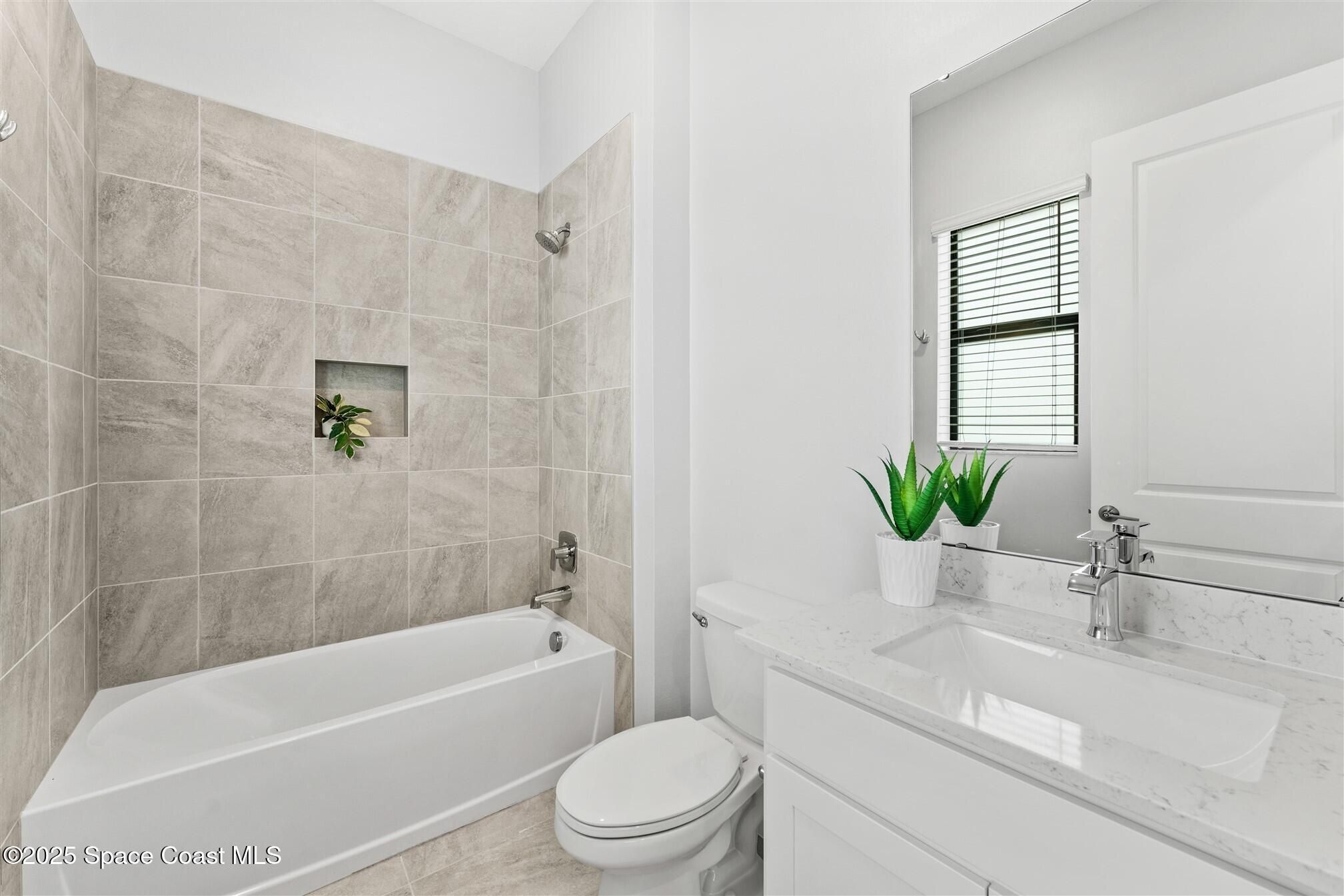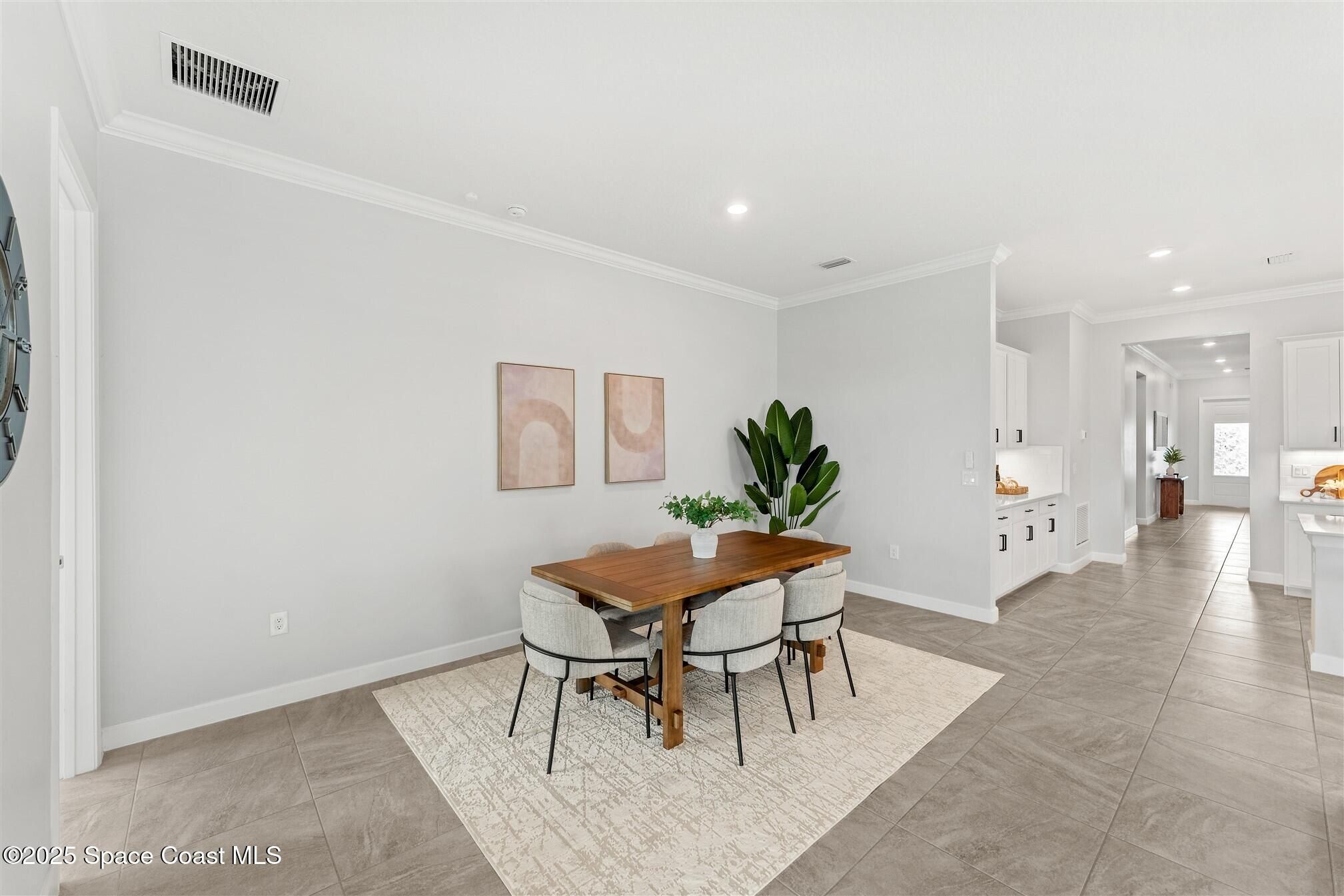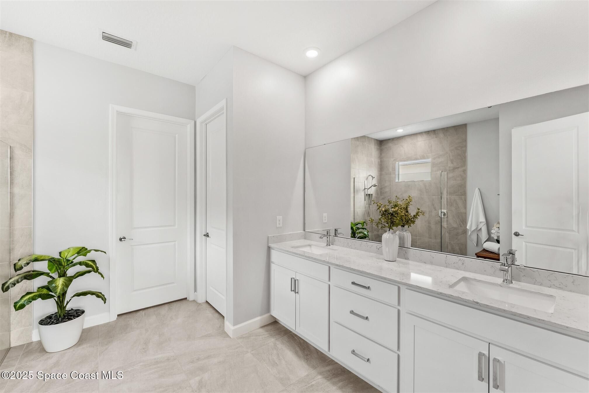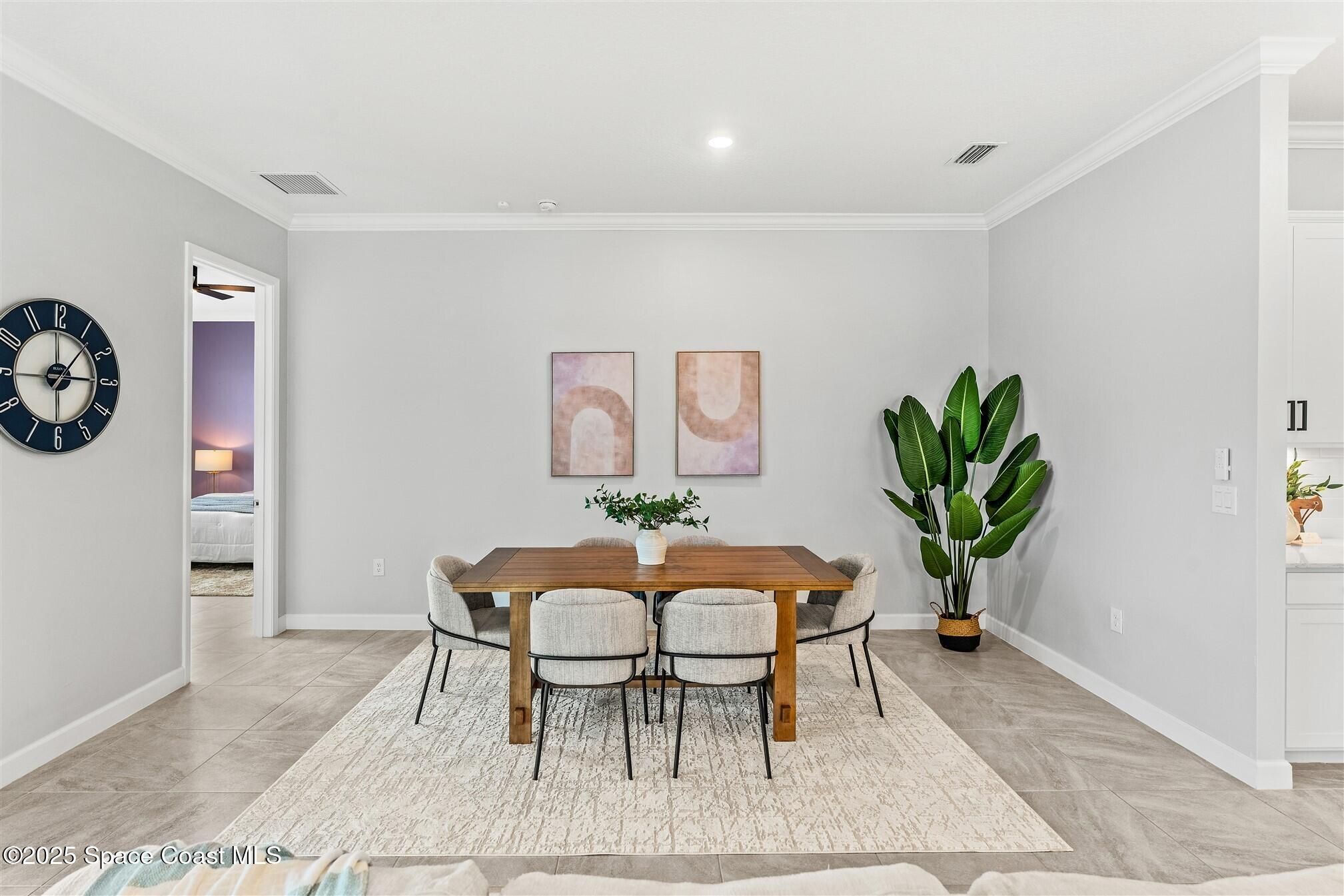 Stunning 4 bedroom, 3 1/2 bath, waterfront home in Bridgewater, Viera's popular gated 55+ resort style community. 3 bedrooms are en-suites, (4th is used as study) making this home perfect for out-of-town guests! This 2-year-old meticulous home is loaded with extras including IMPACT WINDOWS and SLIDERS, crown molding throughout, tile floors (no carpet!), screened lanai, luxury bath package, ceiling fans, pendent lights and 8' doors. White kitchen cabinets with tile backsplash, upgraded sink, faucet, and disposal! Top of the line appliances and undercabinet lighting! Dream laundry room with cabinets and a sink! Oversized primary bedroom and primary bath with a huge walk-in closet with custom built-ins! 20'X21' garage with epoxy floors! Truly turnkey and ready for new owners to move in! Assumable, low interest, VA mortgage! Unbelievable clubhouse w/ heated pool and spa, movie theater, fitness center, coffee lounge, tennis, pickleball! Close to shopping, restaurants, ocean beaches!
