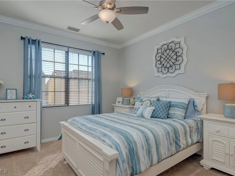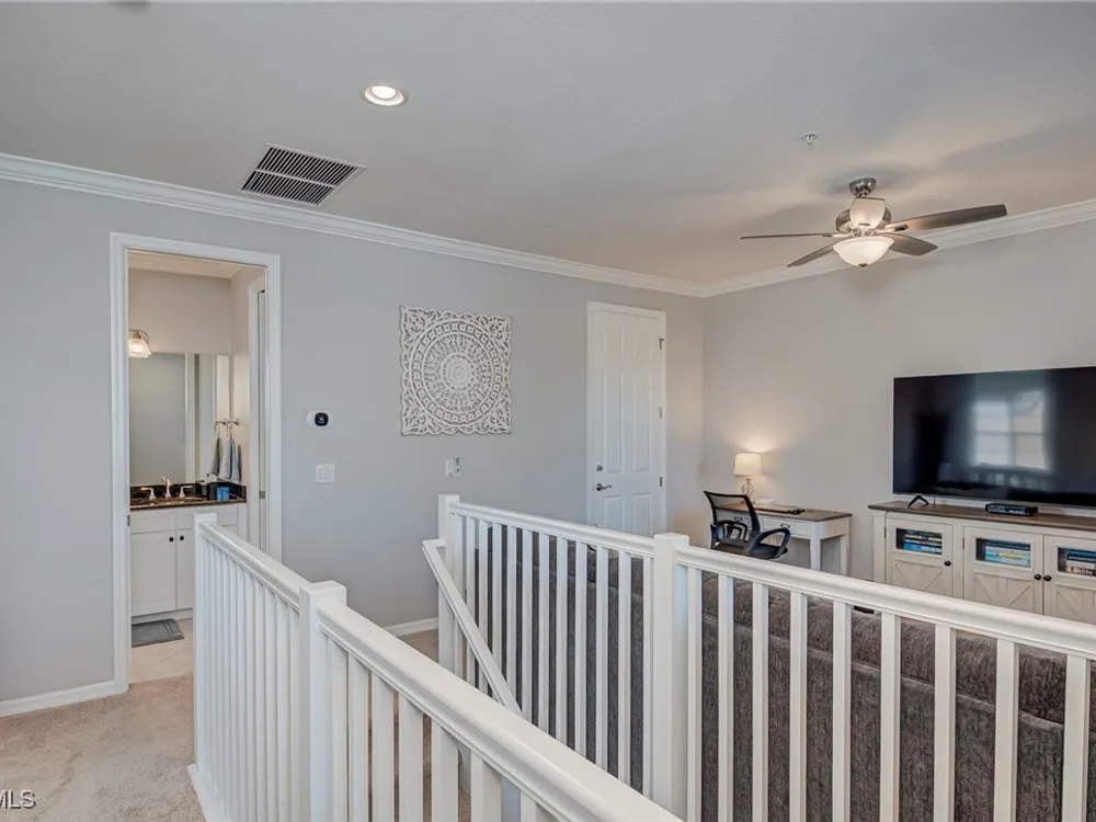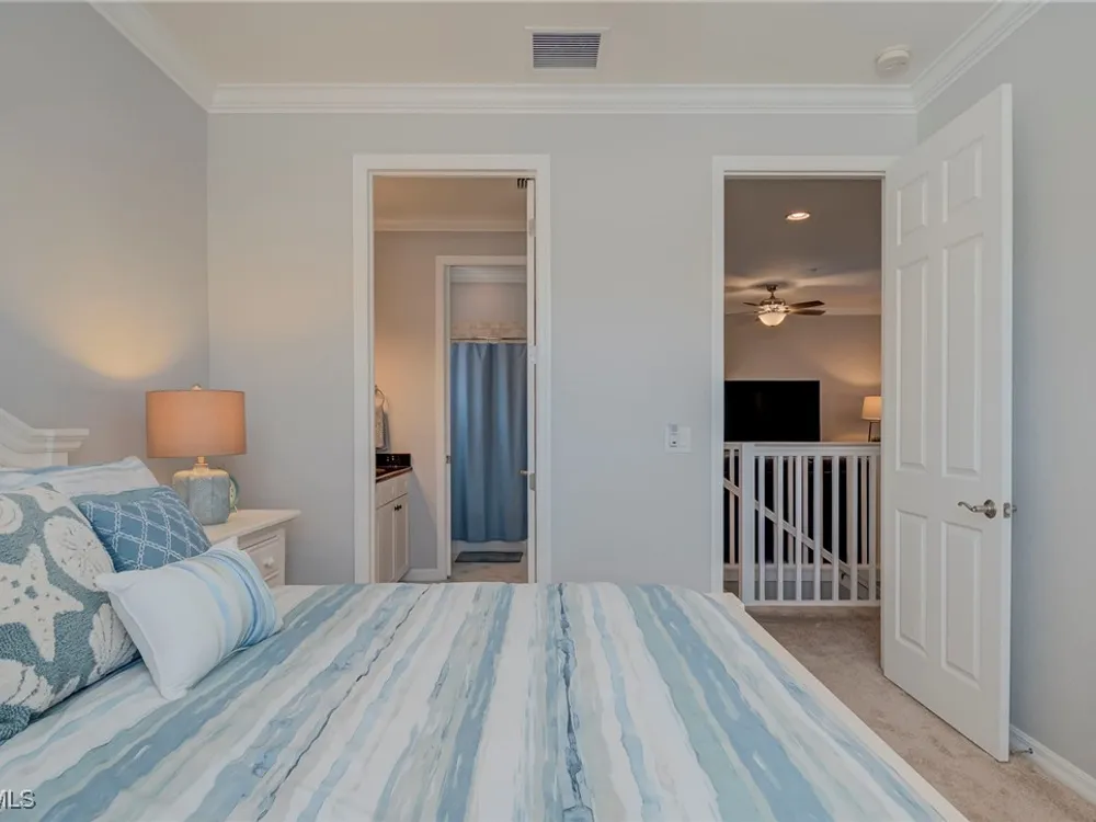 Beautiful and impeccably maintained, TURNKEY FURNISHED Castella Casita! This home is sure to impress, from the tasteful Florida Decor, coveted white cabinetry, crown molding, granite countertops, to the top of the line fixtures and lighting. The Castella features the third bedroom as an open loft area with a walk in closet. Great for guests! Screened lanai for enjoying the warm Florida breezes. Wonderful park views. This home is equipped with hurricane impact glass and doors as well as fire sprinkler systems, for added peace of mind. All this in the award winning Community of Paseo! Relax by the RESORT STYLE POOL or enjoy a beverage at the TIKI BAR. Watch a game at the PUB or enjoy brunch at the BISTRO. Grab a friend and watch a movie in the cinema or work out in the FULLY EQUIPPED GYM. New lighted bike path will connect you to Lee County bike trail system. Enjoy a game of doubles on the 6 har-tru TENNIS COURTS or join in the fun at the PICKLE BALL COURTS!! Come enjoy the PASEO LIFESTYLE