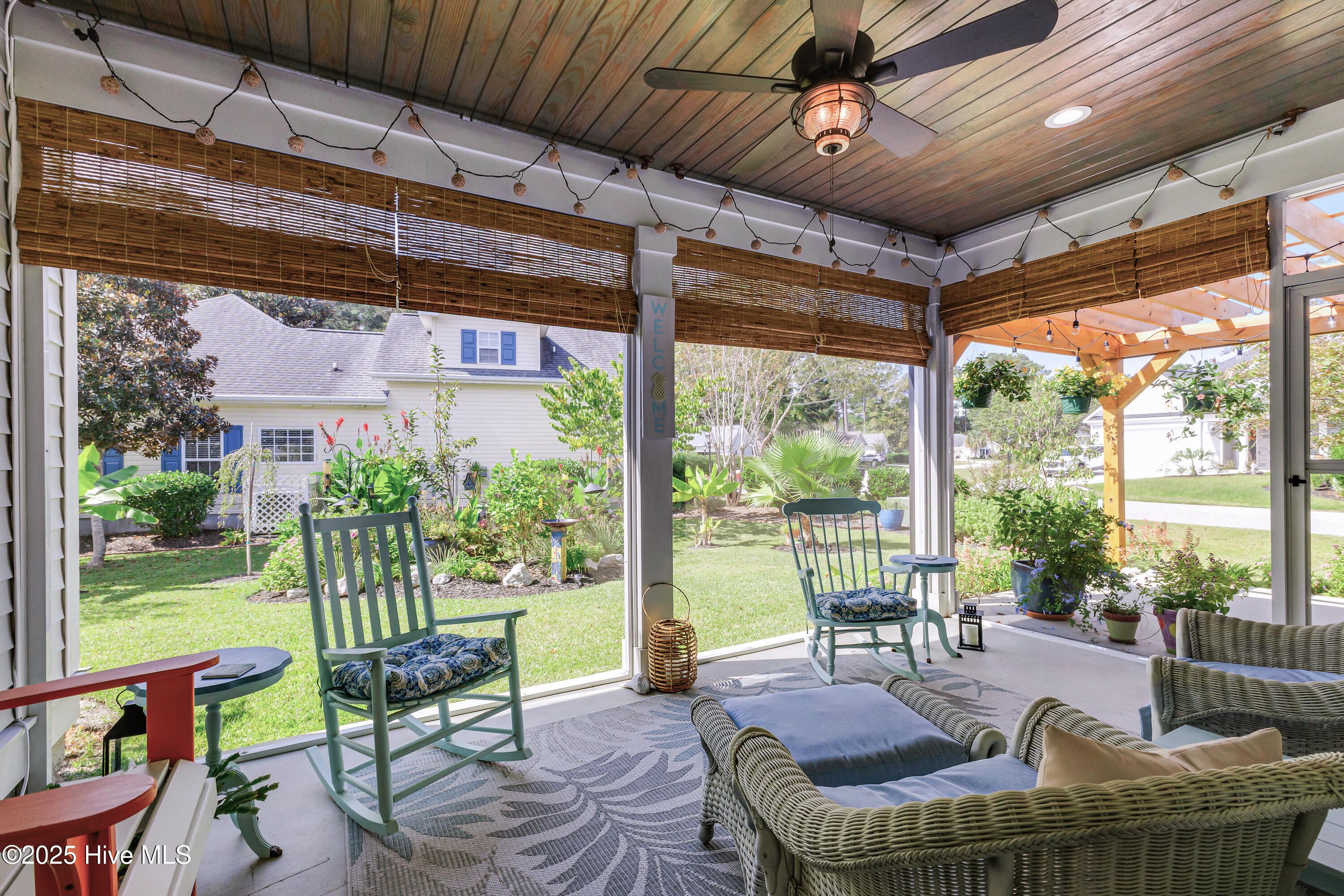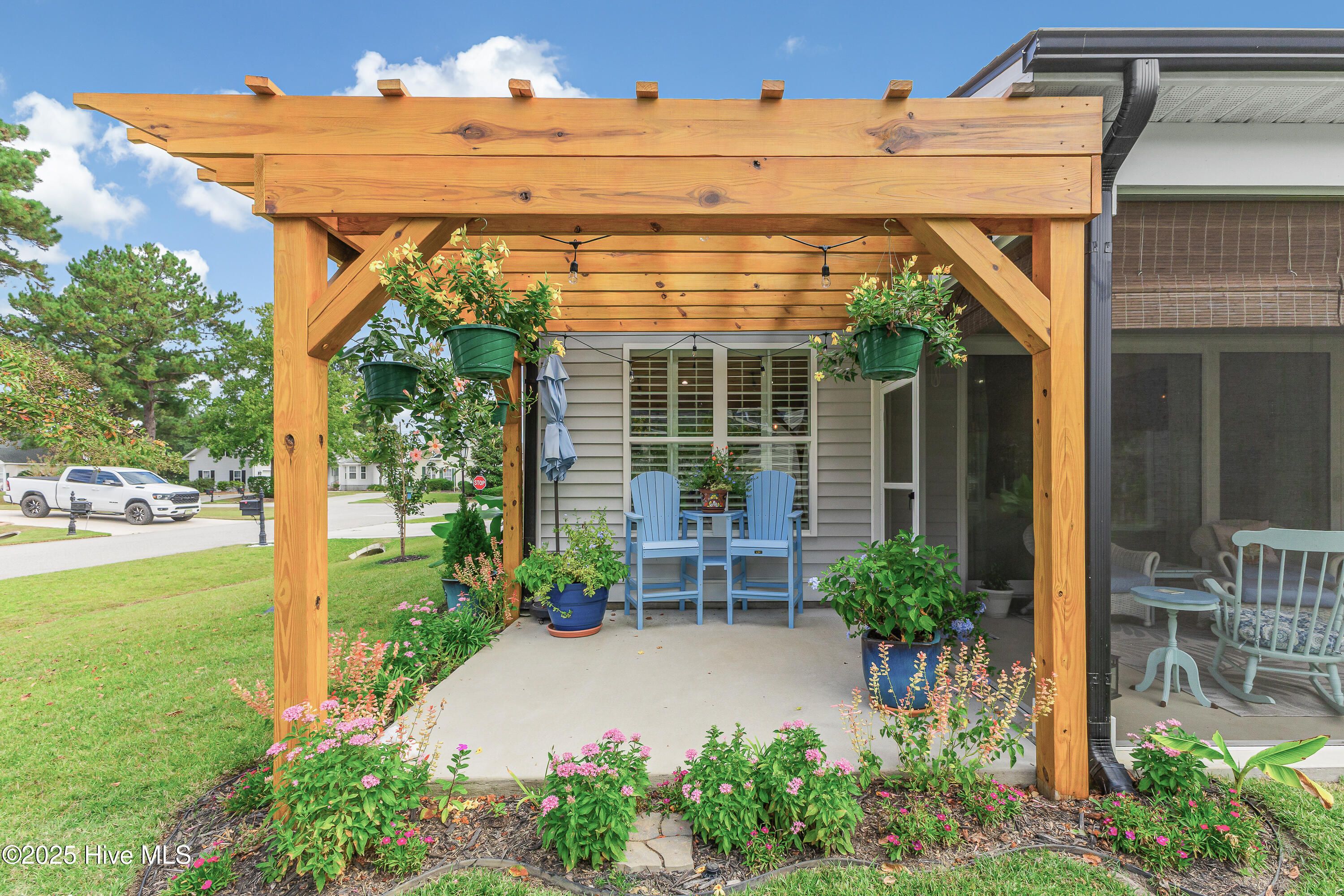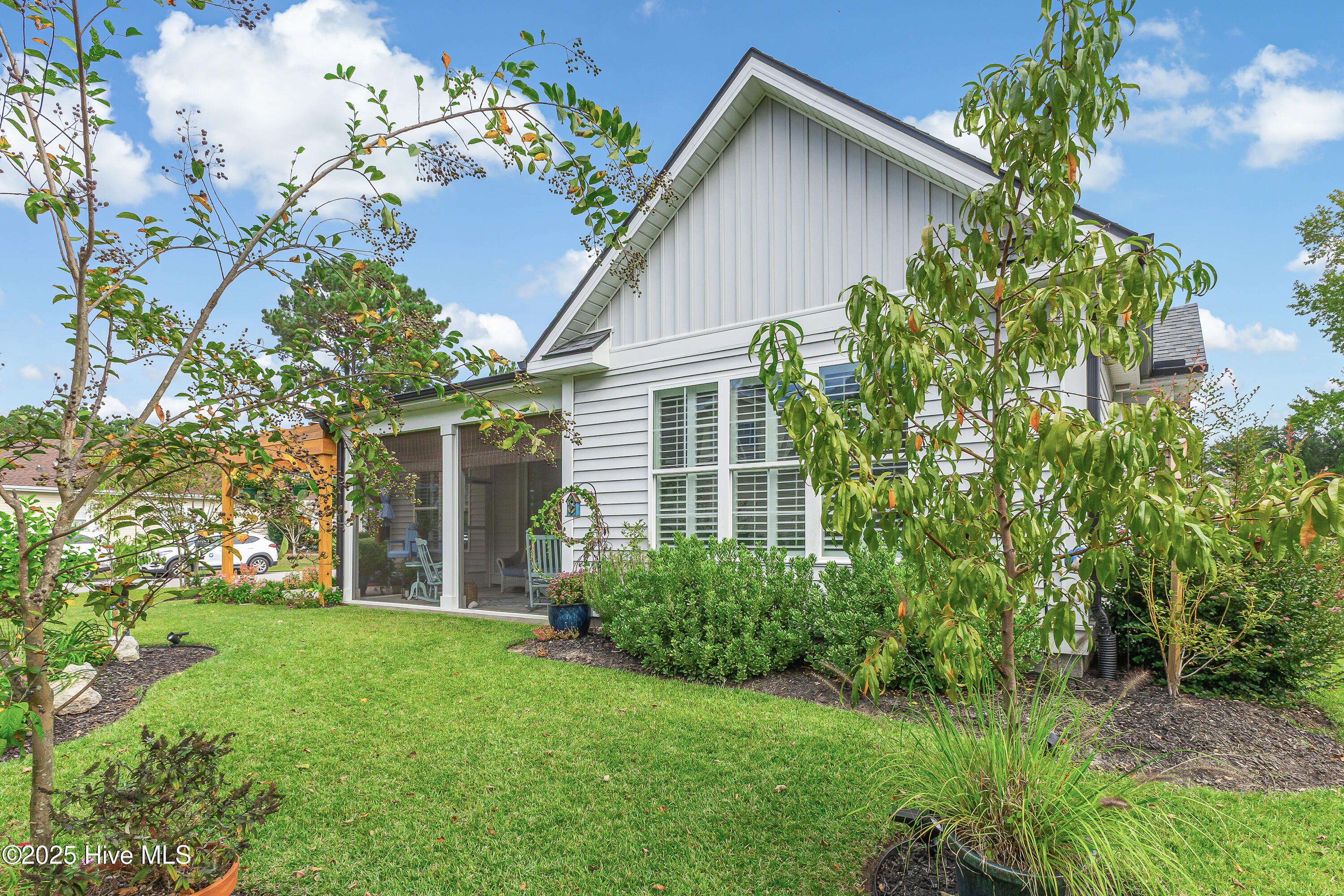 Welcome to 8861 Nottoway Drive in Calabash--a beautiful custom built home located in a prestigious gated community with 24/7 manned security. The curb appeal is highlighted by the stacked stone exterior and interior fireplace. The 8' front door sets the tone for the spacious & inviting entry foyer. Crown molding, wainscoting, large scale trim & bullnose drywall corners throughout the home. This thoughtfully designed residence offers 3 bedrooms, each with custom shelving and 3 bathrooms. A spacious open-concept living and kitchen area highlighted by a soaring beamed cathedral ceiling. Quartz counters in the kitchen, a veggie sink and walk-in pantry with custom shelving, reverse osmosis & whole house water filtration system; and gas tankless water heater. 8' stacking sliding glass doors open to the screen porch w/bamboo shades that opens to a charming pergola-covered patio w/solar cafe lights & gas hook-up for grilling, perfect for relaxing and entertaining. The owner's suite features double trey ceiling a luxurious bath with slate tiled walk-in shower w/rain shower head & wall shower head, water closet as well as a double bowl elevated vanity. A custom built barn door to mud room with built-in drop zone. Separate laundry with custom cabinets, granite counters. Washer & dryer convey with the sale. 3 bedrooms each w/custom built closet organizers and LED lighting. Multi-purpose/flex room over the garage has a half bath for convenience.This active lifestyle community is packed with amenities, including a 27-hole golf course with optional memberships, POA includes indoor and outdoor swimming pools, tennis courts, pickleball, and inviting owners clubhouse. You'll also enjoy the convenience of a restaurant and bar within the community.Ideally located near Sunset Beach Island and just minutes from the South Carolina state line, this home provides easy access to Cherry Grove Beach, Little River, and the shopping, dining, and entertainment of North Myrtle Beach.