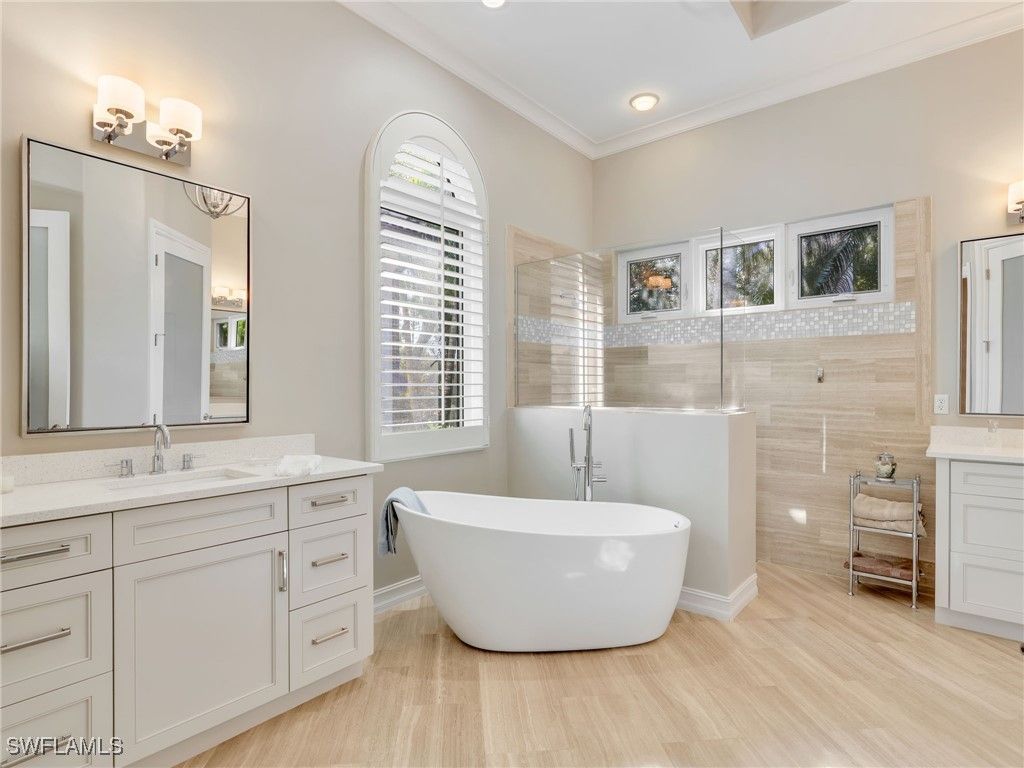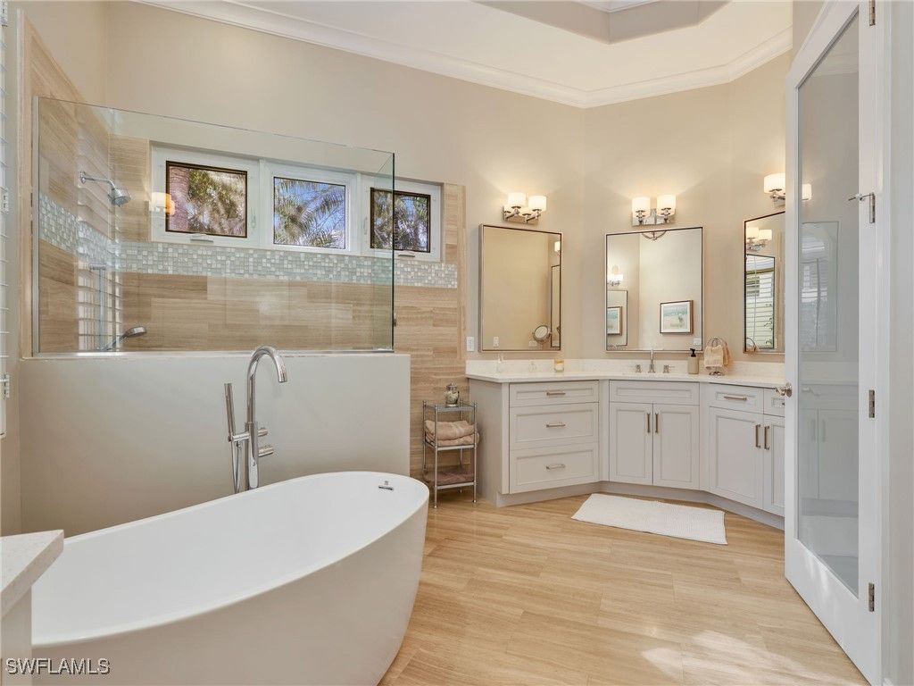 This incredible home is being offered fully furnished. Tucked away in the coveted Majors community at Lely Resort, this beautifully fully remodeled residence offers nearly 3,000 square feet of thoughtfully designed living space where privacy meets luxury at every turn. This stunning four-bedroom plus den home features three and a half bathrooms and a spacious three-car garage, providing ample room for any desired use. A private cabana awaits, complete with its own full bathroom and kitchen. Whether you envision a guest retreat, home office, or creative studio, this versatile space delivers endless possibilities. Step outside and discover two private areas for entertaining. As you enter the home the courtyard brings complete privacy while in your pool or spa and includes an outdoor kitchen, a private cabana, and plenty of space for entertaining or relaxing under the Florida sun. The back private lanai offers a peaceful sanctuary for relaxation or quiet reflection. This home has been meticulously updated with impact-resistant windows around most of the house, electric storm shutters and screens, premium Wolf appliances, and a gas cooktop for the culinary enthusiast. Recent improvements include a newer roof, updated air conditioning systems, fresh interior and exterior paint, a full house generator, and gleaming epoxy garage floors. Also this home sits in the X500 Flood zone which is the best rating a home can get. The location simply cannot be beat. Donna Fiala Eagle Lakes Community Park is just a short walk. Shopping, dining, and everyday conveniences surround you. The infamous sugar-white beaches of Marco Island and Naples are just fifteen minutes away. Downtown Fifth Avenue is also just a short drive. Immediate membership to the world-renowned Players Club and Spa awaits.