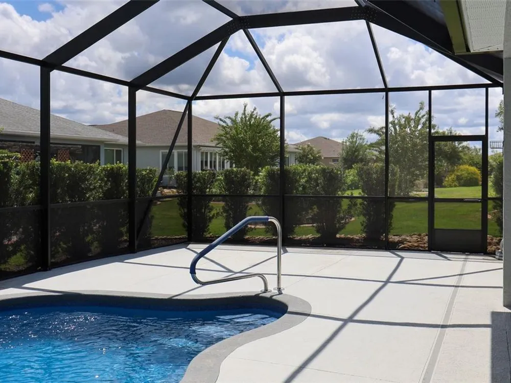 Welcome Home to this exceptional one of a kind luxury home in On Top of the World Candler Hills’ Stirling Meadow neighborhood where you own your own land in a spacious corner lot. Get ready to enjoy your private backyard oasis by the solar heated salt water pool surrounded by natural rock landscaping under the extended lanai. Within a 60 day closing date, the motivated sellers will include a one year “peace of mind” home maintenance package including pool maintenance, landscaping, pest control and AC service so you can sit back and relax. As you enter the gourmet kitchen with the extended pantry from the pool you are enveloped into this very spacious 2,895 sq. ft Aberdeen home which features two master bedroom ensuites with walk-in closets, an additional third bedroom with full bathroom and a flex/media room to sit back and enjoy your favorite movie. There are many upgrades including a two car garage with mini split air conditioning and plentiful storage space throughout this beautiful home which will allow future home owners to relax inside and outside with all of the details done. A rare and wonderful opportunity in Candler Hills with $336 HOA including curbside mail delivery and trash collection. Come and relax in your new beautiful dream home.