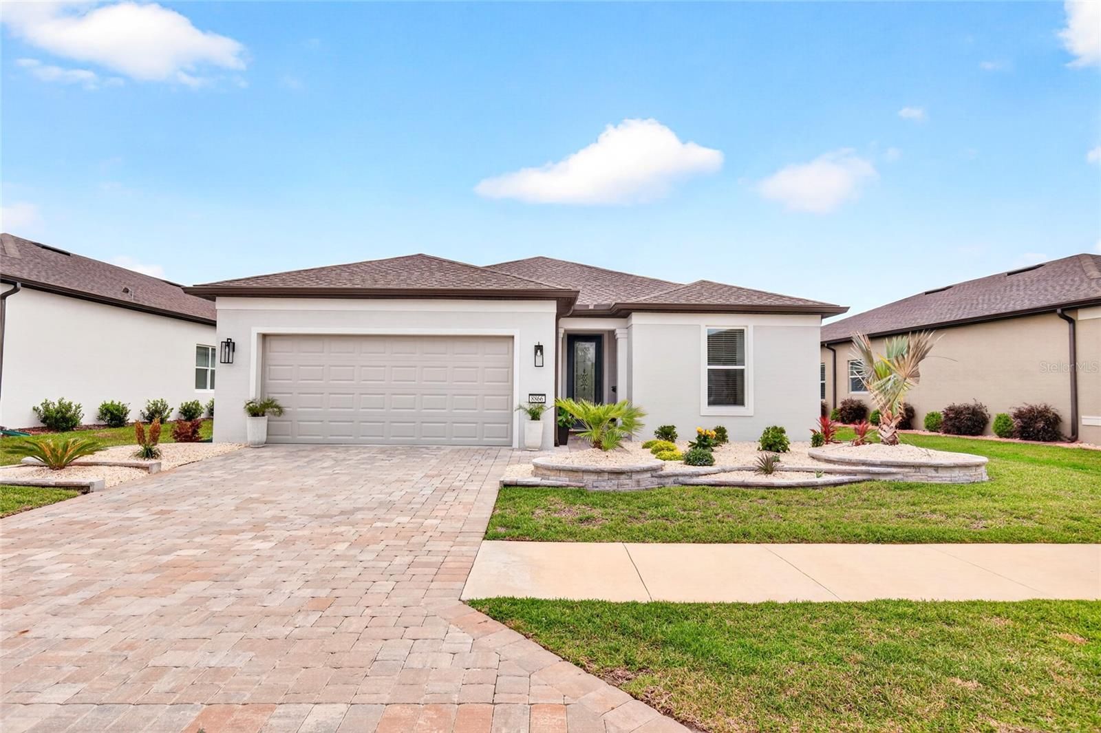 2023 Mystique model located in the coveted Stone Creek community offers the perfect blend of modern design and resort-style amenities------2025 UPGRADES: **914 sq ft pavered area with screened enclosure **12x26 in-ground gunite chlorine pool with waterfall **624 sq ft paver driveway * Updated fans, light fixtures & mirrors in bathroon *Exterior Paint * Glass insert in front door --------INTERIOR FEATURES: 2 bedrooms, 2 bathrooms, plus Flex Room. Modern finishes including quartz countertops in kitchen & bathroom, counter top cook top & built in oven & microwave, 42-inch kitchen cabinets, a large island & soft close drawers. All complemented by tile flooring and abundant natural light throughout the home. The owner’s suite provides a private retreat with a walk-in closet, dual vanities, and a walk-in shower. 2023 Air Conditioner---------EXTERIOR FEATURES: Concrete block construction 2023 Roof, Low maintenace curb appeal, 2 Car Garage , paver driveway, attractive landscaping, and a 2-car garage. Huge covered back patio with ceiling fan--------COMMUNITY FEATURES: Del Webb Stone Creek is true resort lifestyle with 60,000 sq ft clubhouse complex, reunion center, Catering/demo kitchen, Library / reading room, Card room, billiards room, game room, Arts & crafts studio, Movie theater / activity rooms, On-site retail + café/restaurant, State-of-the-art fitness center, Aerobics & dance studio, Indoor lap pool, Outdoor resort-style pool , Indoor & outdoor spa / hot tubs, Steam room / sauna, Massage & wellness services, Locker rooms , 18-hole golf course + practice facilities, Tennis courts, Pickleball courts, Bocce ball courts, Horseshoe pits, Softball/baseball Walking & biking trails, Scenic lakes & ponds, Fishing lakes / pier (catch & release) ,Parks & natural green space, Picnic areas, Dog park, RV Storage and NUCH MORE !!----- CALL TODAY WITH QUESTIONS OR TO SCHEDULE A SHOWING.