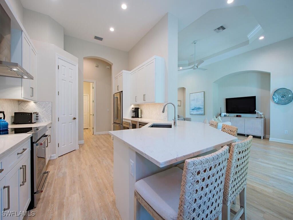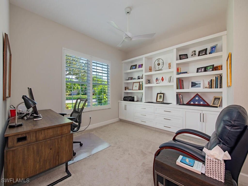 Exquisite Max Tibury Model Pool Home | Completely Transformed This exceptional Max Tibury model pool home has been completely reimagined, offering over 2,400 square feet of sophisticated living with three bedrooms plus a den, 3 full baths, and 1 half bath. From the moment you enter, it’s clear this is a residence where no detail was overlooked. Between 2021 and 2022, the home underwent a total transformation. Every inch was refreshed, including all flooring, stunning redesigned kitchen and baths, custom office built-ins, fresh interior paint, updated ceiling fans, and elegant plantation shutters throughout. A full suite of new appliances completes the interior, featuring a wine cooler and a washer and dryer. The upgrades extend well beyond aesthetics. A new roof (2022), new gutters and downspouts, new lanai cage with panoramic screening (2022), hurricane-impact windows, doors, and sliders, and newly painted exterior provide lasting value and peace of mind. Storm Smart electric roll.down hurricane fabric shutters, AC system (2020) , security system, and a new pool heater (2021), Generac generator (2024), 500-gal Propane tank for generator and gas grill, complete this impressive list of improvements. Offered partially furnished, this remarkable pool home blends luxury, comfort, and thoughtful craftsmanship—an extraordinary opportunity to enjoy Florida living at its finest.