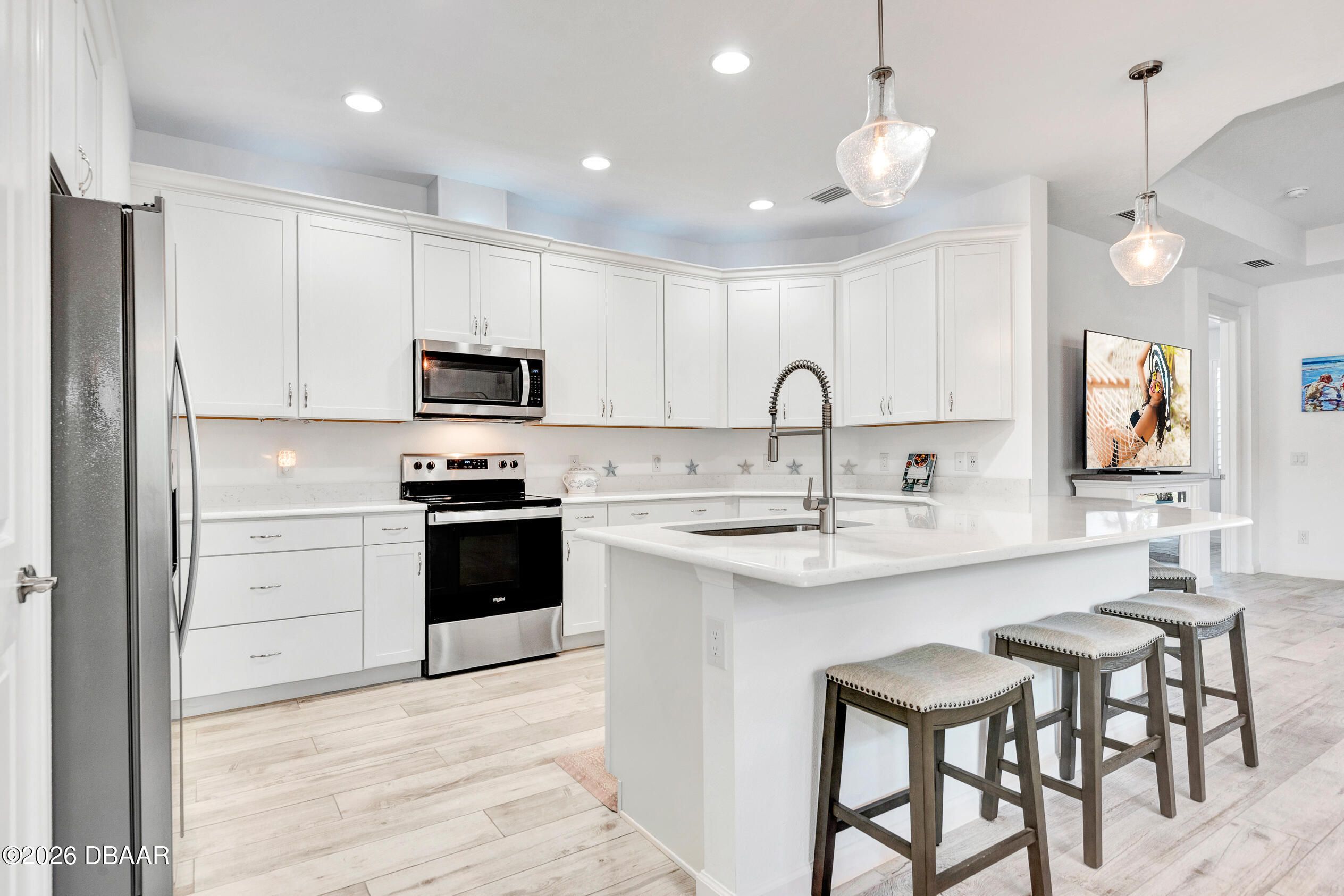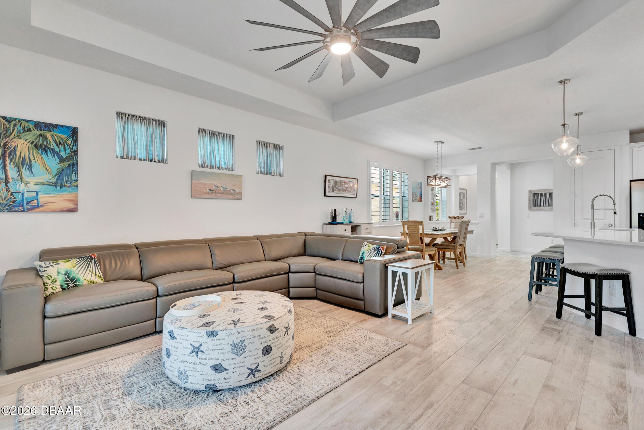 IRREPLACEABLE AND AWE- INSPIRING. AN EXTRAORDINARY BARBUDA BAY UNLIKE ANY OTHER IN MARGARITAVILLE OFFERING A COMPLETELY CUSTOM LIVING EXPERIENCE IN WHICH EACH POLISHED DETAIL HAS BEEN CAREFULLY CURATED TO ACHIEVE A RESORT-LIKE LIFESTYLE BURSTING WITH AMENITIES. EXTENSIVELY UPGRADED AND SITED ON A WATERFRONT LOT FEATURING MAGNIFICENT PRIVACY & SERENE VIEWS. THE ENTRY IS GRAND AND DRAMATIC AND MAKES AN IMMEDIATE IMPRESSION. WINDOWS SOAR & CUSTOM LIGHTING INVITES YOU INTO AN ENCHANTING WORLD OF STYLE AND LUXURY. INSIDE, A CLEAN WHITE AESTHETIC PRESIDES. GREY OAK TILE FLOORS AND 8' DOORS MASTERFULLY BALANCE THE EXPANSIVE GREAT ROOM. STRIKING FINISHES ELEVATE EACH DETAIL. EXPANDED QUARTZ COUNTERS BEAUTIFUL WHITE CABINETRY AND BRUSHED NICKEL HARDWARE COMBINE TO CREATE LIVABLE ART. THE UPGRADED FAUCET, POT & PAN DRAWERS ACCENT THE CHEF INSPIRED KITCHEN WITH BUILT-IN APPLIANCES THE QUARTZ COUNTER TOPS FLAUNT A LUXURIOUS SENSE VISIBLE FROM THE LIVING AND DINING AREAS. INDOOR SPACES FLOW SEAMLESSLY TO THE OUTDOOR PARADISE, CREATING A LIFESTYLE OF EASE AND LEISURE. OUTSIDE THE VAST SCALE OF THE EXTENDED COVERED LOGGIA AND SCREEN ENCLOSED LANAI ARE READY FOR LUXURIATING IN FLORIDA STYLE. THE PRIMARY SUITE IS AN EXQUISITE, PRIVATE RETREAT OFFERING IMMACULATE SPACE WITH AND A SPA STYLE BATH. THE DEN CAN BE A HOME OFFICE SINCE FRENCH DOORS WERE ADDED FOR PRIVACY, THE GUEST BEDROOM PROVIDES ITS OWN ENSUITE BATHROOM AND GENEROUS LIVING SPACE. EXQUISITE AMENITIES IN THE COMMUNITY INCLUDE 10 PICKLEBALL COURTS, 5 TENNIS COURTS, 5 BOCCE BALL COURTS, LATITUDE BAR AND CHILL RESTAURANT, FITNESS CENTER, A MOVIE THEATRE, A WOOD WORKING AND POTTERY CENTER. 3 SWIMMING POOLS AND A PRIVATE BEACH CLUB ON THE ATLANTIC OCEAN WITH SHUTTLED TRANSPORTATION. THIS IS FOR EVERYONE LOOKING TO LIVE AN EXTRAORDINARY LIFE AMIDST PERFECTION AND THE EPITOME OF HIGH DESIGN. Square footage received from tax rolls. All information intended to be accurate but cannot be guaranteed.