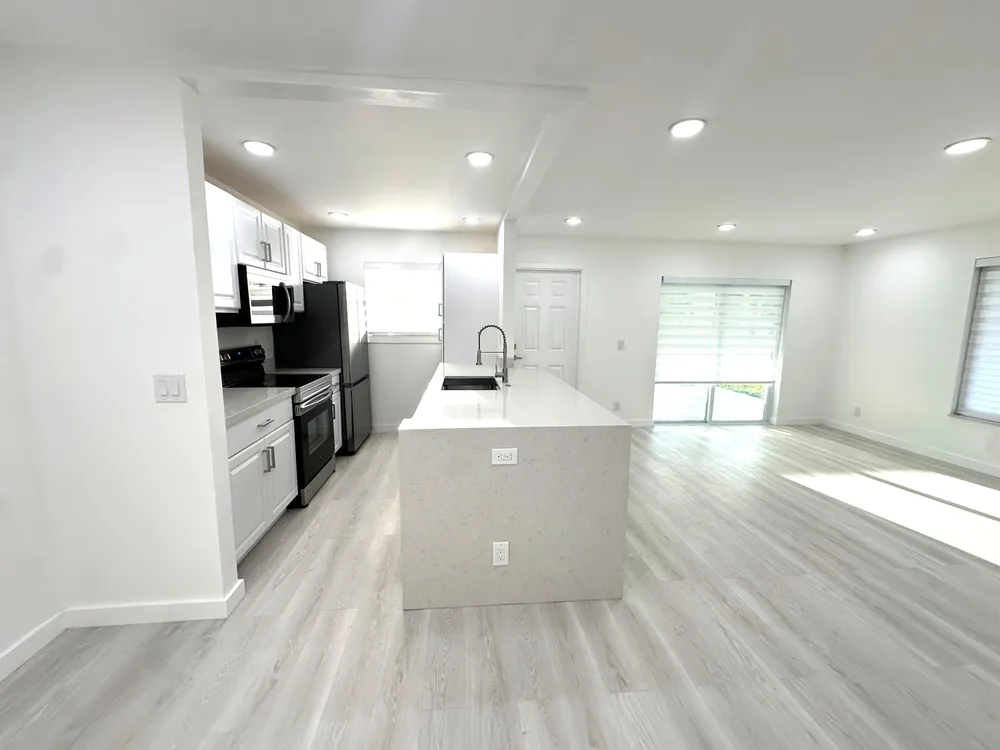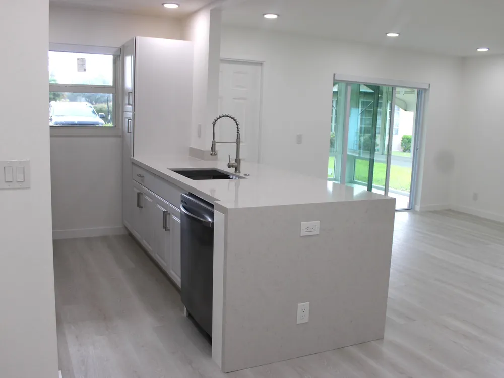 Open and bright, this fully updated 2-bedroom, 2-bath villa/condo offers modern living at its finest. Featuring full impact glass, new flooring throughout, and custom window treatments, every detail has been carefully designed. The state-of-the-art kitchen boasts a stunning waterfall island, premium appliances including a washer/dryer combo, and sleek finishes. Both bathrooms have been beautifully renovated, complementing the home's contemporary style. Additional upgrades include an updated electrical panel, acoustic wood wall paneling designed for a flat-screen TV, and color-changing recessed lighting throughout to set the perfect mood. Ideally located just minutes from vibrant downtown Delray Beach and Atlantic Avenue.
