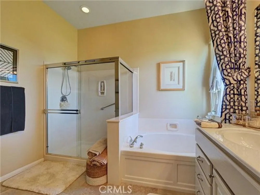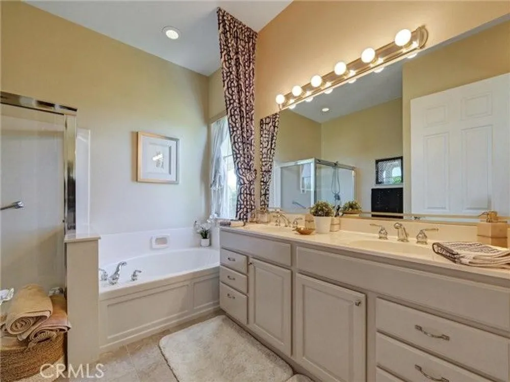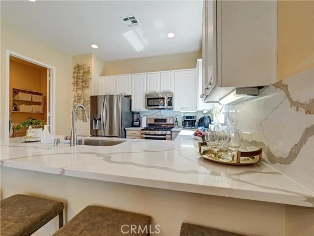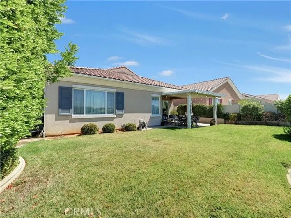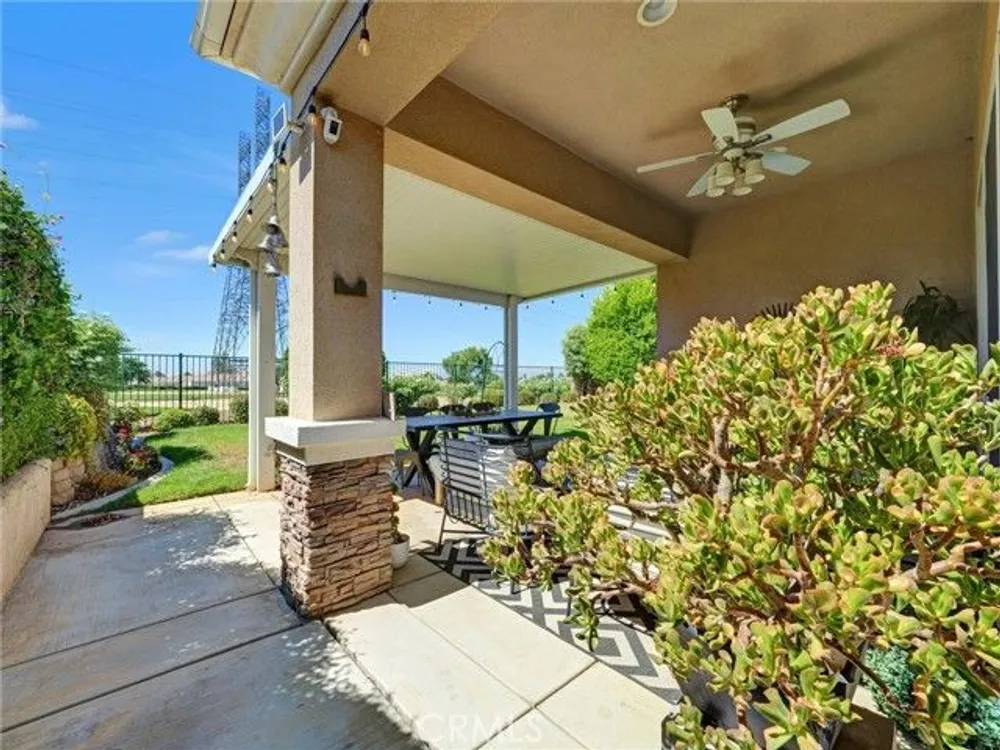 Welcome to 887 Westchester Rd. !!!!!!, This stunning home offers 1,687 square feet of luxurious living space in the highly desirable 55+ guard-gated community of Solera at Oak Valley Greens. This spacious single-story home features 2 bedrooms, 2 bathrooms, plus a dedicated TV room, offering both comfort and versatility. Step inside to a bright and open living space where comfort meets style. The spacious living room is anchored by a cozy fireplace and filled with natural light from expansive windows, creating the perfect setting for both relaxation and entertaining. The dining area seamlessly connects the living and kitchen spaces, highlighted by a modern chandelier and plenty of room for gatherings with family and friends. The kitchen is a true centerpiece, featuring sleek white cabinetry, stainless steel appliances, and a large peninsula with bar seating—ideal for casual meals or hosting. Its open layout flows effortlessly into the dining and living room, making it the heart of the home. The primary suite includes a large walk-in closet, dual sinks, a soaking tub, and separate shower. A spacious guest bedroom and full bath ensure comfort for visitors. The TV room offers flexibility for media, hobbies, or a cozy retreat. Step outside to your own private retreat! This beautifully landscaped backyard features a covered patio with ceiling fan and string lighting, perfect for relaxing or entertaining guests year-round. The expansive lawn is surrounded by lush greenery, mature trees, and carefully manicured shrubs, creating a peaceful setting with both shade and open space. Decorative stonework and raised planters add charm and character, while the wrought-iron fencing provides an open view of the surrounding area. Whether you’re enjoying a quiet morning coffee, hosting a barbecue, or simply soaking in the tranquil atmosphere, this backyard is designed for both comfort and style.