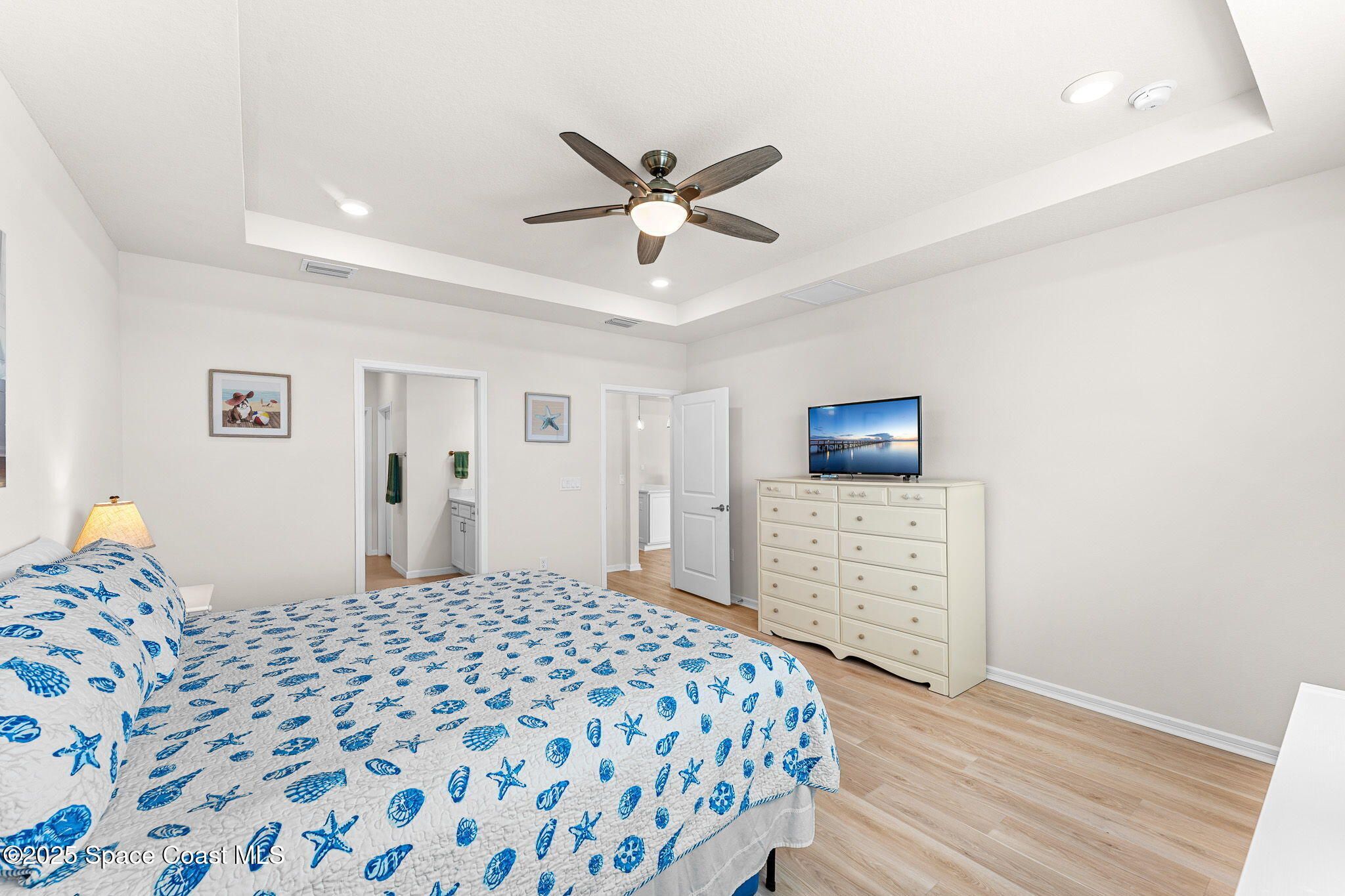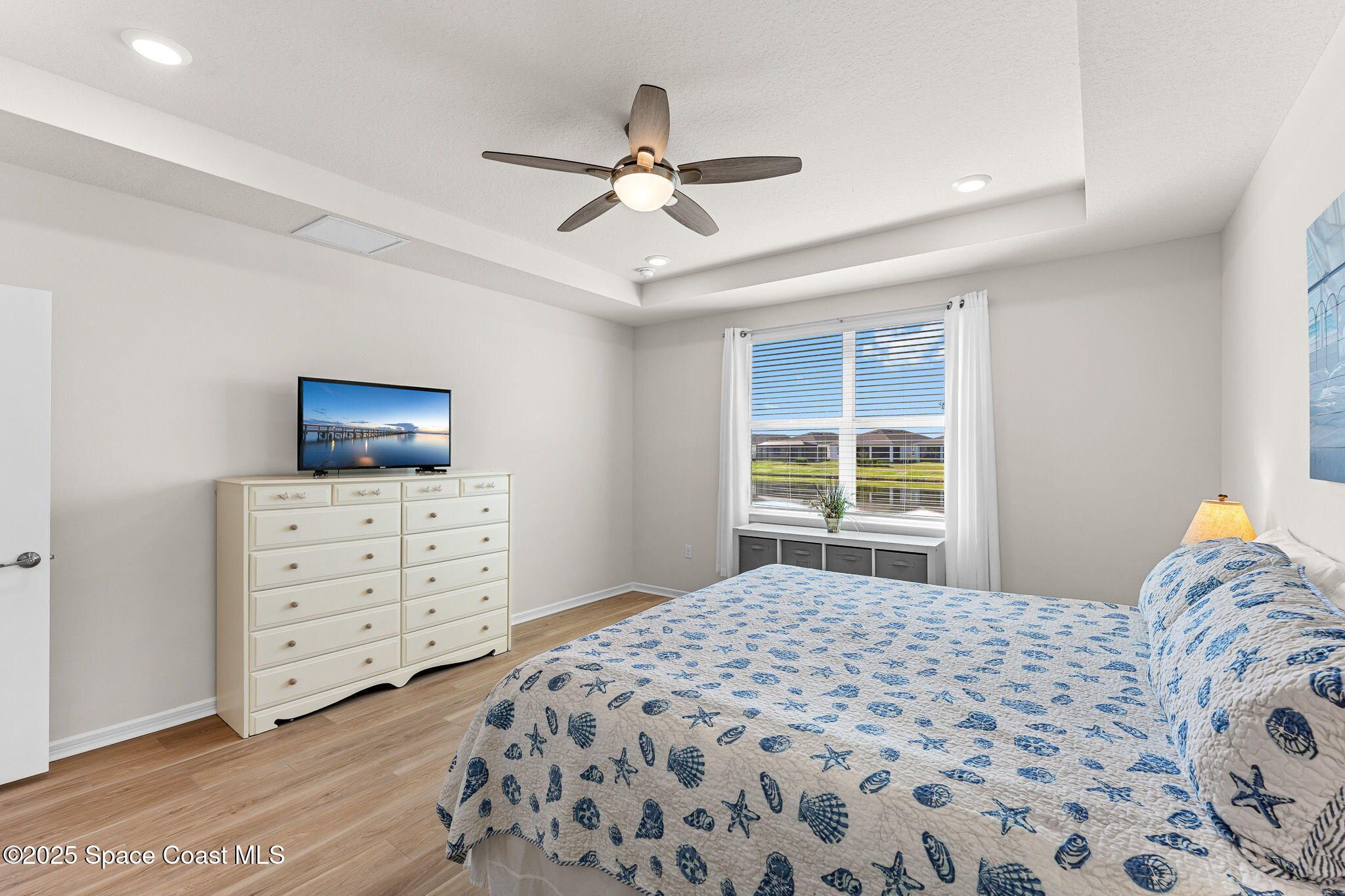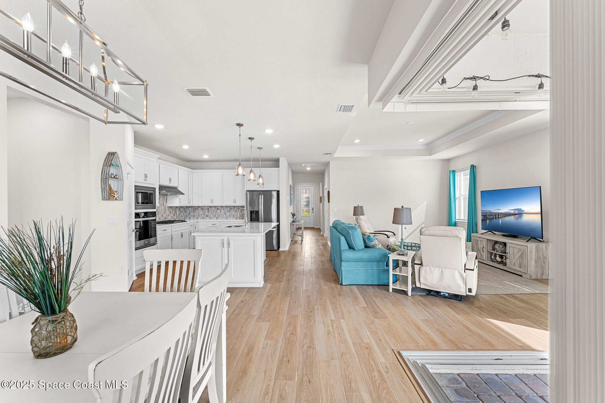 Welcome to lakefront living at its best in Del Webb Viera, one of Florida's premier 55+ active communities. This beautifully extended Mystique floor plan offers remarkable value—delivering three true bedrooms, three full baths, and a versatile flex room without having to move up to a more costly model to gain the extra space. It's the ideal blend of smart design and everyday luxury. Step inside to an open, airy layout where the family room, dining area, and kitchen flow seamlessly together. Expansive disappearing sliders extend the entire living experience outdoors, opening to an oversized screened lanai with a relaxing hot tub and sweeping lake views. Inside, you'll find updated flooring, gorgeous upgraded white cabinetry, and a crisp coastal aesthetic that feels both elevated and inviting. It's a perfect home for an active couple—with plenty of comfortable space for visiting family and friends. Living in Del Webb Viera means embracing a lifestyle rich with amenities and connection. Enjoy the onsite tavern, heated resort-style pool, pickleball and tennis courts, dog park, and a full calendar of clubs and activities that make every day feel like a getaway. Situated in Viera-one of the fastest-growing, thoughtfully planned towns on the Space Coast, you'll have quick access to shopping, dining, medical facilities, golf, parks, and entertainment. Everything you need is nearby, yet the tranquility of lakefront living is right outside your door. A rare opportunity to enjoy space, style, and community in one of Viera's most sought-after neighborhoods. Welcome home.