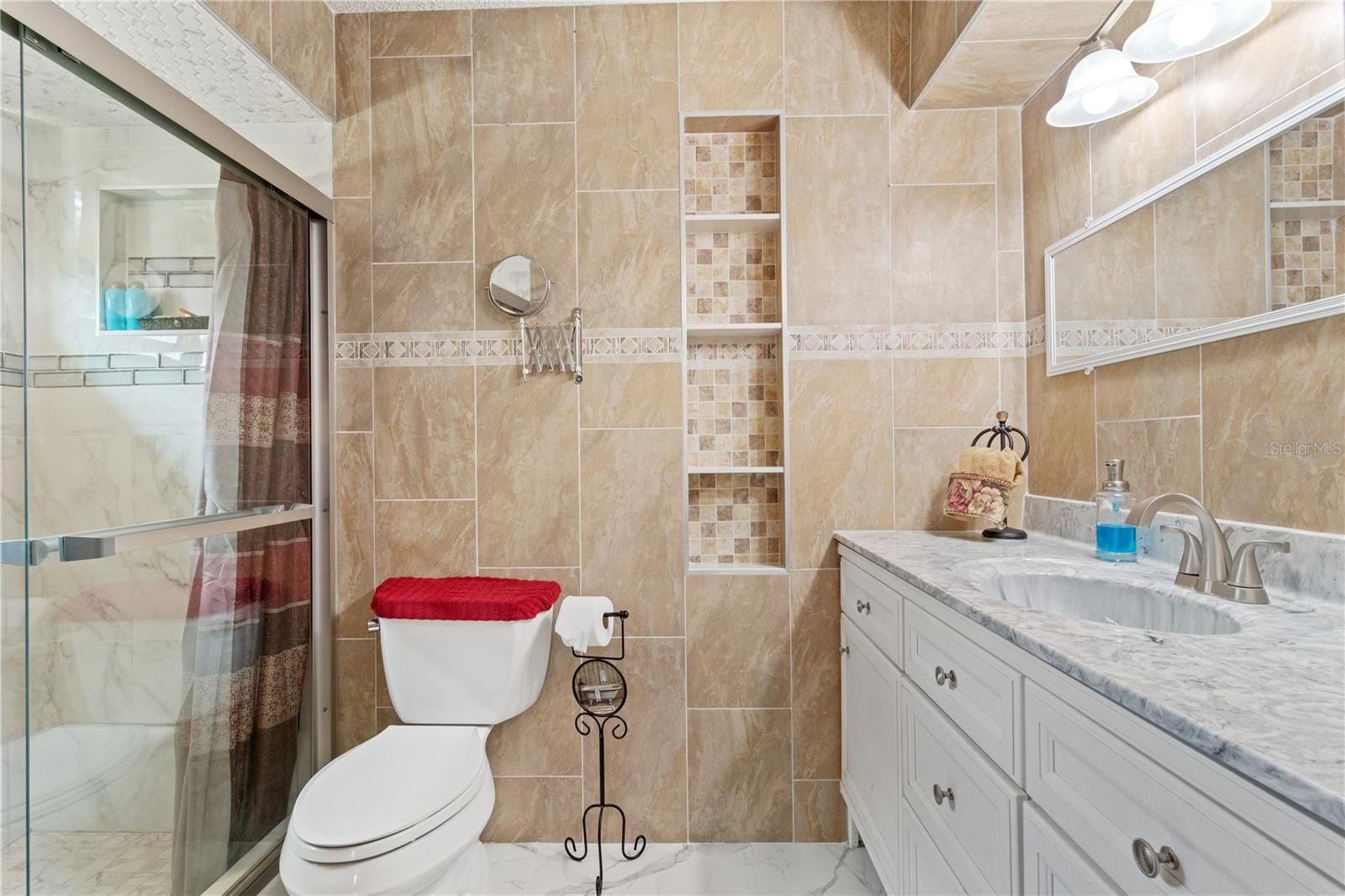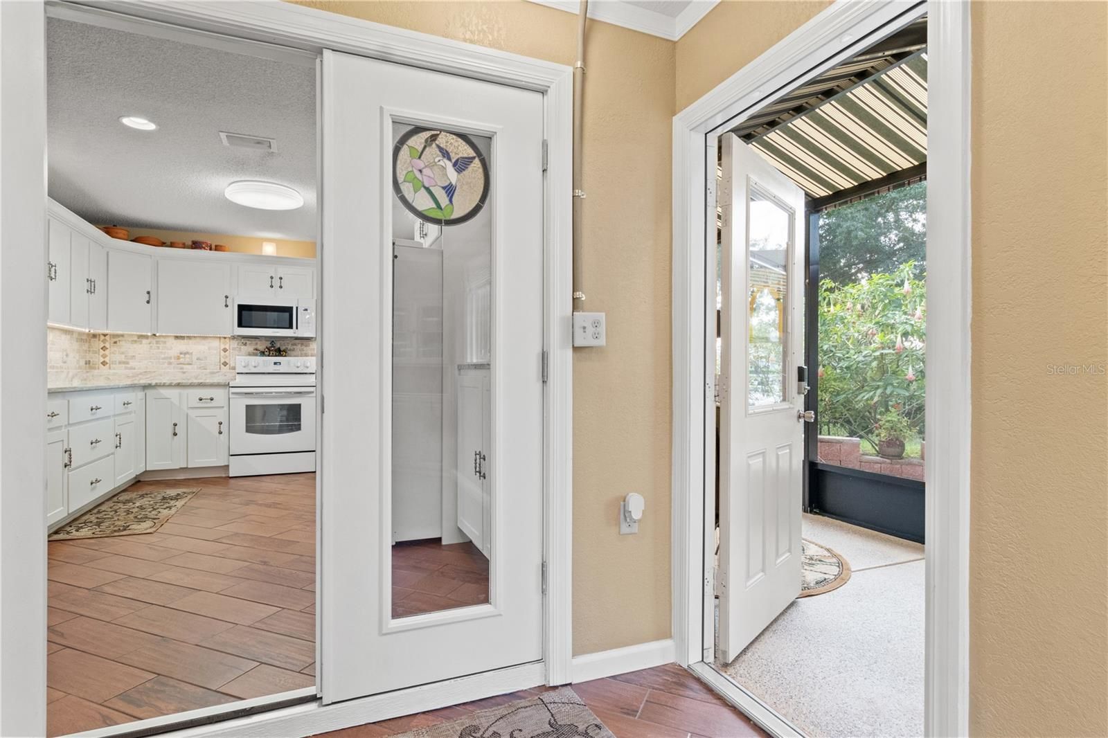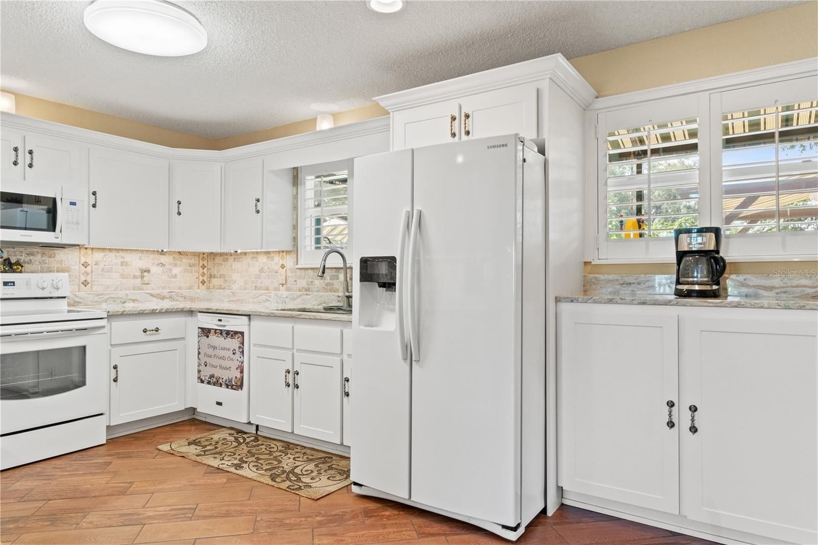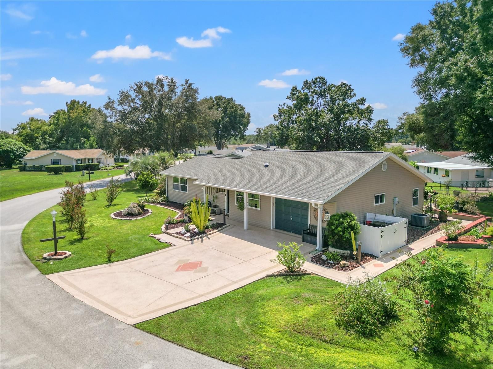 COMPLETELY MOVE-IN READY & BEAUTIFUL! YOU MUST SEE THIS 2 bedroom/ 2 bath, 1,480 square foot Jamestown model which offers easy Florida living just for you! Meticulously kept-enjoy NEW BIG TICKET ITEMS including complete bathroom and kitchen remodels, ROOF (2022), 200 AMP Electrical Panel (2022), HVAC (2018), full-home windows (2024), and custom blinds! The entry glass door offers lovely natural light which spills onto the full home wood-like tile flooring which was, recently resurfaced- no carpet in this home to fuss over. The 22x16 foot living room provides for plenty of space for entertaining, and the high ceilings create an airy atmosphere. The updated kitchen offers a beautiful selection of granite for countertops, a tile backsplash, garden sink, white Samsung appliances and plantation shutters overlooking the peaceful backyard. The coffee bar to the right of the refrigerator is functional and creates additional storage. French doors lead to a bonus room/ office/ Florida room just off of the kitchen, and offers backyard access. STORAGE FOUND HERE- Two closets sit on either side of the hallway, plus more storage in the bedrooms. The two bedrooms are actually 2 primary bedroom suites- both spaces have walk-in closets, the bedroom to your left offering multiple closets. The first primary suite connects to an en suite bathroom with granite vanity and NEW low-profile, walk-in shower and toilet. The second bedroom has backyard access- walk through the en suite to a large closet on your left as well as full bathroom with modern white vanity and step-in shower. Enjoy indoor laundry with even more built-in storage. Energy efficient SOLAR operating lights with battery backup illuminate your space in the evening hours. Head outside to a magical backyard- this space offers a screened enclosed porch with new waterproof awning which matches the retractable awning and outdoor umbrella. The fully fenced backyard is a great space for entertaining and for your pets to enjoy- Oak Run is a pet friendly community! The custom wood pergola and swing are truly charming, the best spot to enjoy a peaceful morning or happy hour! This property sits on a concrete slab and was upgraded with 3/4 inch plywood around its exterior. Thoughtfully designed flower beds and gutters show a keen eye to care. The 17x14 ft. 1.5 car garage can fit a vehicle plus golf cart and is built out with shelving for tools and more. The white screened enclosure over the garage door is a great feature- enjoy the Florida breeze as you tinker in your garage! Oak Run is a 55+ community located just off of W. Hwy 200, outside city limits which boasts a natural wildlife preserve. The LOW monthly amenities fee covers weekly trash and yard waste pick-up, 24-hour security, basic cable TV, community Channel-12 TV, use of all facilities, and the maintenance of all recreational and common areas including the dog park. Amenities include access to 6 pools, 5 hot tubs, golf course, restaurant, two fitness centers, library, billiards, card and craft room, tennis and pickleball, horseshoes, volleyball, and more. This is the Florida lifestyle that you've been dreaming about- there is a club for any interest that you may have- gardening, motorcycle, cards, social clubs, dances, and more! So close to hospitals, great dining, activities, and business opportunities. You can be here before the Holidays!