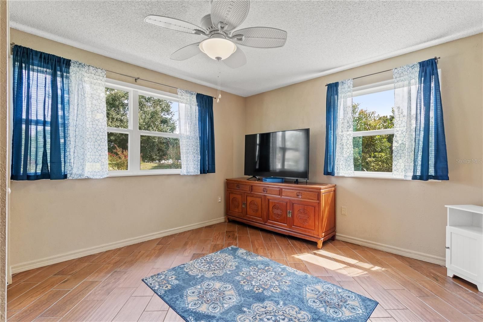 - Ceiling Fan(s), High Ceilings, Main Level Primary, Solid Surface Counters, Stone Counters, Thermostat, Window Treatments