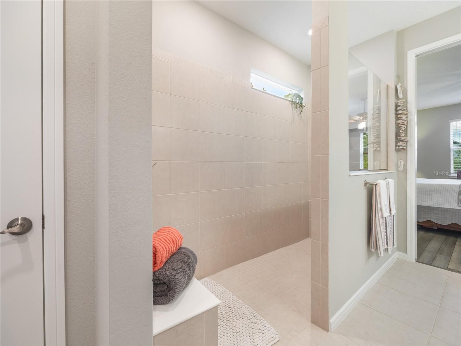 - Ceiling Fan(s), Eat-in Kitchen, High Ceilings, Kitchen/Family Room Combo, Living/Dining Room, Open Floorplan, Main Level Primary, Thermostat, Walk-In Closet(s)