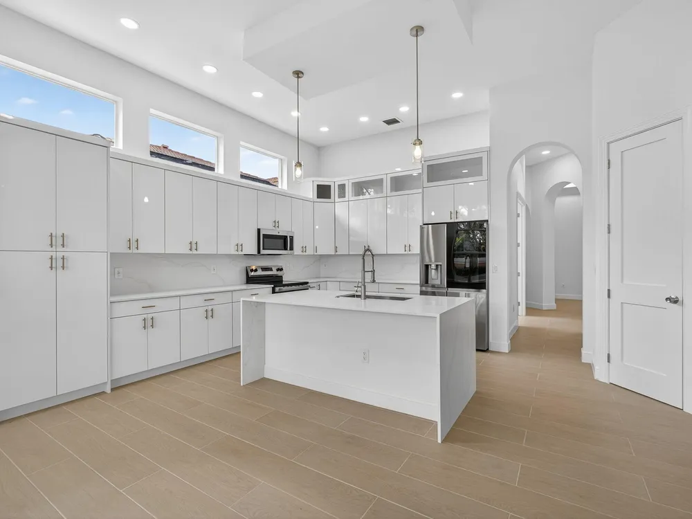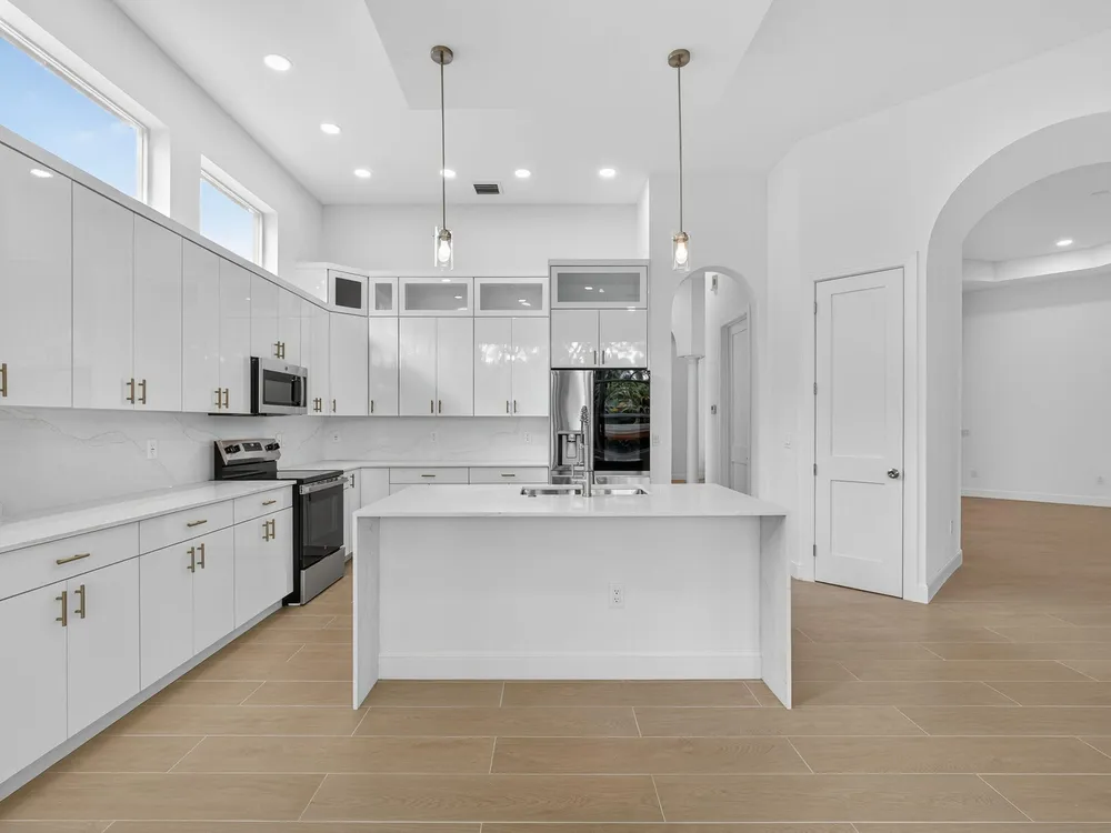 2025 COMPLETE INTERIOR RENOVATION! This ,never lived in, 3 bed/2.5 bath plus den house was taken down to the studs and the interior was rebuilt. BRAND NEW drywall, modern tile flooring, 2.5 new bathrooms, primary bathroom featuring stand alone modern tub and a stunning BRAND NEW modern kitchen with a contemporay waterfall island, quartz countertop throughout! Brand new cabinets and new appliances! Welcome to the beautiful and highly sought after community of Buena Vida. An active 55+, man gated community that features and award winning clubhouse with cafe, fitness center, tennis and pickleball courts, pools/spas, an active social club, and visiting entertainers in the club room and stage. This home is as close as it gets to a new build home! A MUST SEE!