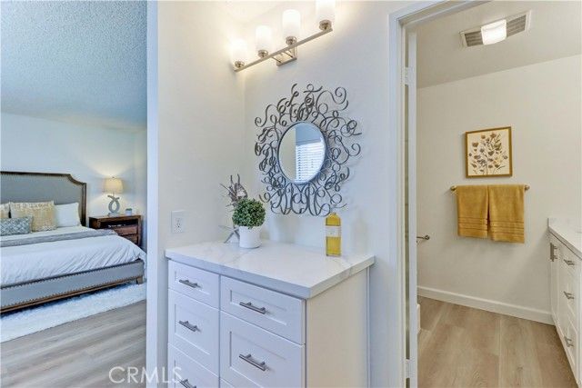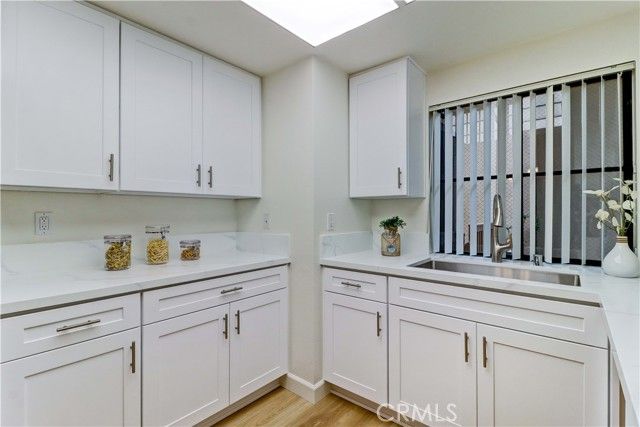 What an Exquisite Remodel! With Tasteful appointments throughout, this Very Popular 2 Br Upstairs Surf Model is a Must See. When you walk through the Front door, you are Greeted with Vaulted ceilings of which only one other upper listing currently has, not to mention gas capability with a forced air furnace with most others currently for sale operating completely on Electricity. Light, Bright and Airy this property you can call home. New luxury Vinyl Plank Flooring and High Baseboards throughout. Gorgeous Kitchen Remodel has New White Shaker Cabinetry, Quartz Countertops & Backsplash, LED Lighting with Color options, Gooseneck Faucet, Stainless Sink and New Stainless Steel Appliances. Includes a New Stainless Refrigerator. Both Baths have been completely Remodeled and Updated with Cabinetry & Quartz Countertops Matching the Kitchen, Reglazed Showers, Updated Exhaust Fans, Faucets, Sinks, Mirrors & Lighting. Additionally the Primary Bedroom has an Added Cabinet for Extra Storage Space in the Wardrobe area, as well as, the Primary Bath has Double Sinks and a New Glass Frameless Shower Enclosure. Laundry Closet on the Balcony has included Washer and Dryer and a Water Heater replaced in 2023. Garage off the Back of the Condo Bldg and Guest Parking. The Community Feels Like Being at a Resort with a Fabulous Recreation Center. 2 Pools, 2 Spas with Main Rec Center Pool being almost Olympic Size! Tennis Courts, Pickleball Courts, Ping Pong, Dances, Trips, Movies, Clubs, Parties, Concerts, Fitness Center, Fitness classes-Water Aerobics, Yoga & Zumba, Woodshop, Chorale, Quilters, Art & Ceramics Clubs & Classes, Billiards, Putting Green, Library & Much More. Well Maintained Grounds with Mature Trees. Located in the heart of the Famous Beaches of Huntington Beach and close to the HB Pier, Downtown Area & Pacific City. You are Close to Shopping and the Post Office. 24 Hr Guard Gated 55+ Community Near the Ocean (Approx.1.2 Miles)