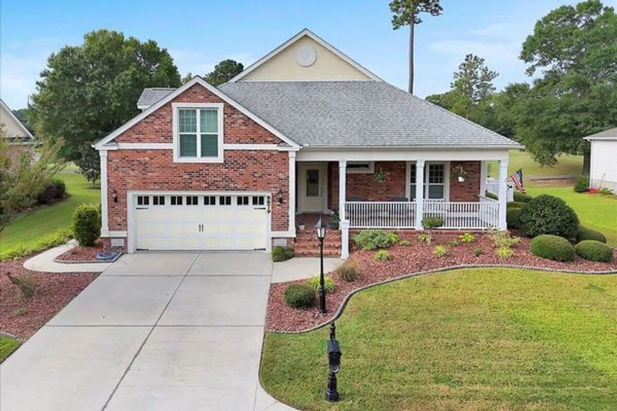 Welcome to 8879 Habersham Place. Discover refined coastal living in this all-brick home overlooking the 5th green of the Magnolia Green golf course in Brunswick Plantation. Step inside to soaring ceilings, rich hardwood floors, and elegant millwork create a refined yet inviting atmosphere. The gourmet kitchen steals the show with granite countertops, an oversized island, and abundant cabinetry-With mostly its one-level design and thoughtful details throughout including plantation shutters, updated flooring, enhanced landscaping, and a retractable awning-this home blends elegance with ease. Step outside to the expansive deck, where panoramic golf course views become your daily escape. Life here extends well beyond the front door. Brunswick Plantation offers resort-inspired amenities, indoor and outdoor pools, a fitness center, tennis, pickleball, and a champion golf course, while pristine beaches and vibrant Grand Strand are just a short ride away. This home is more than a residence-its a lifestyle.