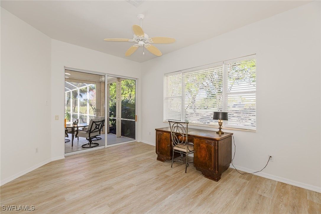 Beautiful, award-winning Lely Resort community. Lush landscaping, fantastic amenities and near shopping and restaurants with beaches 15 minutes away, have always been the appeal of living in this community. This is a custom home with one owner and well maintained. Many new features make moving to your new home worry-free for years to come. New features include a brand new tile roof, newly installed air conditioning system, all new appliances, never-used, new flooring in the 3 bedrooms, master bath and den, freshly painted interior and garage, lanai surface pressure washed and surface painted. All new screens on lanai. The floor plan features three bedrooms, three full baths plus a generous space as a den/office or fourth bedroom, further complemented by the private views of the lanai and amazing sunsets, and a formal dining area. The large open, eat-in kitchen has loads of cabinet space plus pantry, granite counters with pullup seating and those new stainless steel appliances. The outdoor space offers a swimming pool and spa. You will enjoy the golf course fairway as the backdrop to this outdoor space. Nature being the starring role as you relax or soak up the invigorating Florida sun. Plenty of covered space for outdoor eating and dozing. For individuals with an active lifestyle, there are optional memberships available to the Lely Resort Golf & Country Club, which includes one private and two public golf courses. Furthermore, the Players Club and Spa offers a range of resort-style amenities, including swimming pools, tennis and pickleball courts, a tiki bar, dining facilities and a comprehensive fitness center, catering to the needs of the entire family. Hurricane protection is provided for safe, secure and worry-free living.