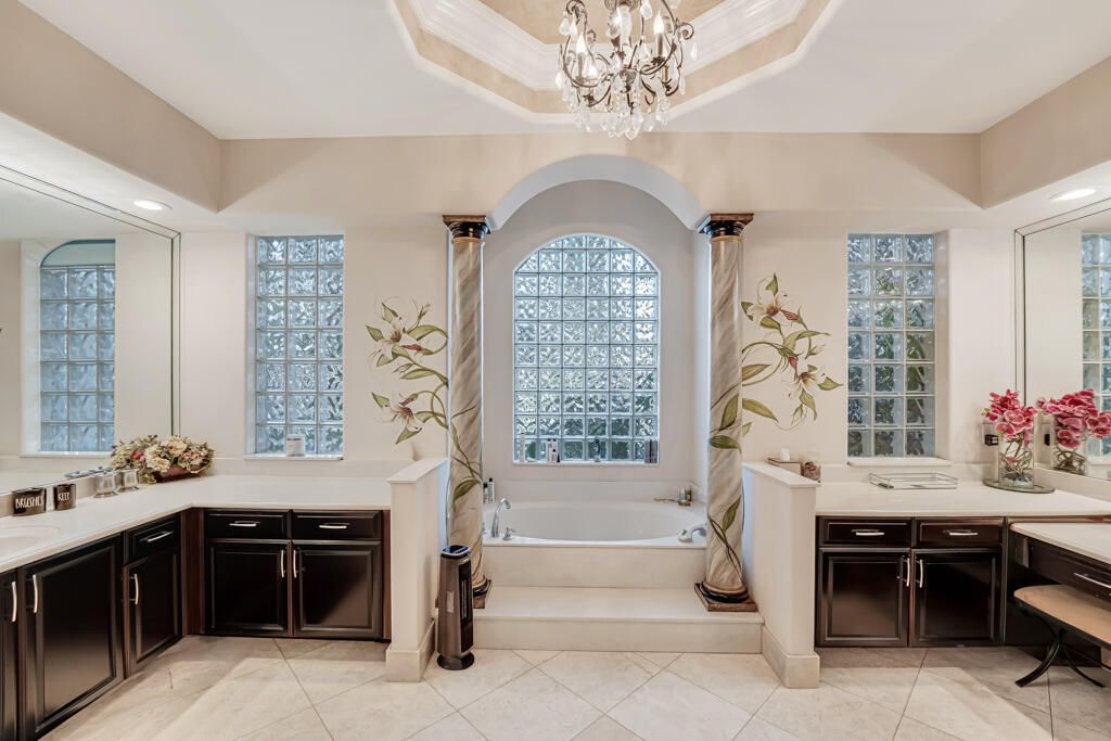 - Entry Level Living Area, Entrance Foyer, French Door(s)/Atrium Door(s), Pantry, Garden Tub/Roman Tub, Split Bedrooms, High Ceilings, Walk-In Closet(s), Attic, Home Office, Family Room, Breakfast Area, Separate/Formal Dining Room, Snack Bar, Dual Sinks, Primary Downstairs, Sitting Area In Primary Bedroom, Separate Shower, Bathtub, Storm Shutters
