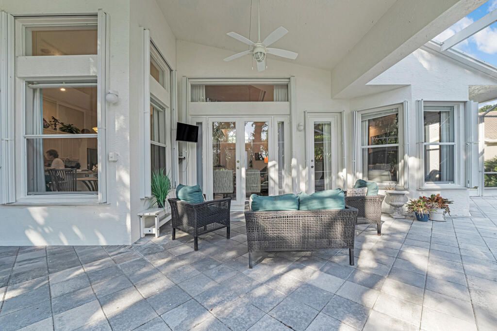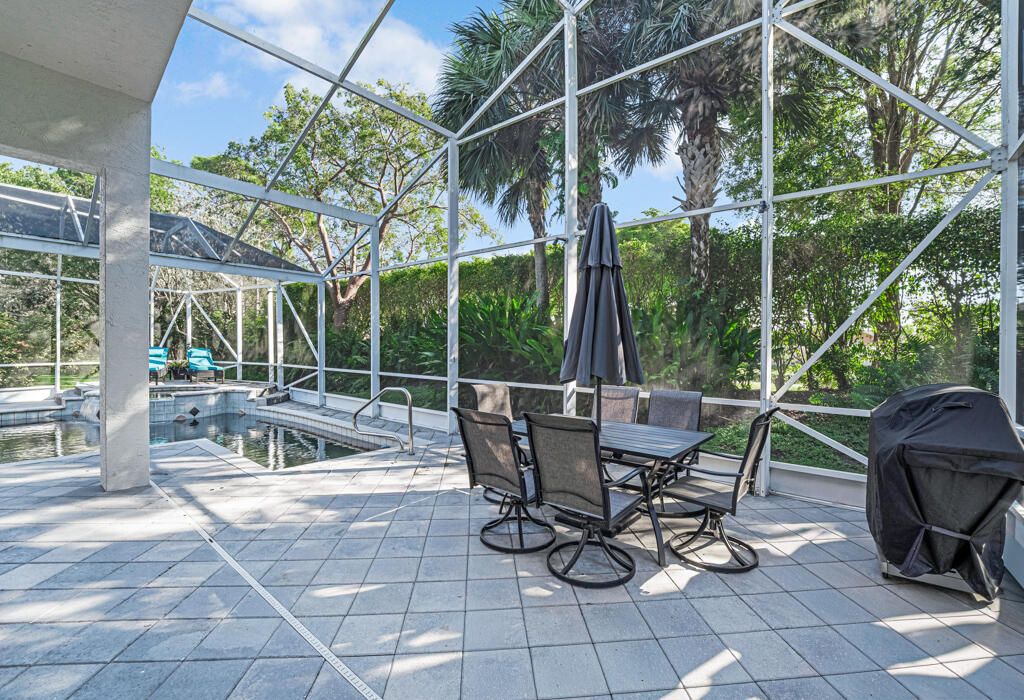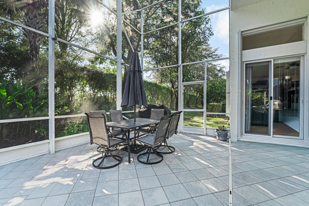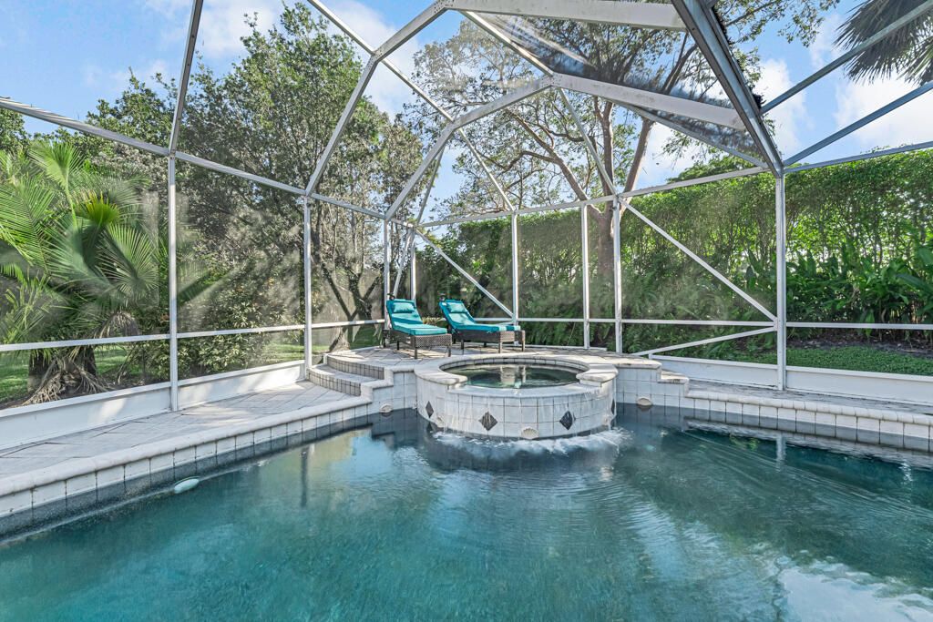 Ideally situated on a cul de sac. The lush landscaping and attention to detail throughout suggests a must see. Enjoy the serenity and luxury in your private resort -style, screened patio with a heated pool, hot tub and ample space for dining and lounging This well-maintained, sun-filled house has 3br, 2.5 Ba and a large bonus area. The recently upgraded kitchen has quartz countertops and newer appliances. There are custom, fitted closets, loads of storage, newer water heater, accordion shutters and many desirable features. Amenities galore - card rooms, billiards, pools, a full service restaurant, tennis, pickleball, bocce, & indoor racquetball,courts. A beauty salon, state of the art fitness ctr., clubs, lectures, games and entertainment enhance every day at The Shores! Welcome!