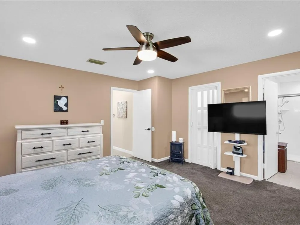 - Ceiling Fan(s), Main Level Primary, Solid Surface Counters, Thermostat