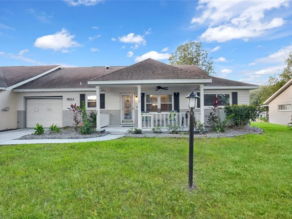 Come and visit this END UNIT villa at On Top of the World in Ocala's premiere 55+ Gated community. A spacious front porch perfect for enjoying your morning coffee or evening beverages welcomes you to this home. Step inside into the living room/dining room area and notice the laminate flooring throughout. The bedrooms are on the left side of the home with the guest/hall bath with tub and tile surround in between. The primary bedroom is in the back for privacy with an ensuite bath along with a step-in shower and large walk-in closet. The kitchen has been nicely updated with newer appliances and Granite countertops! The Florida Room is fully finished with heat/AC. The lanai has been converted into an all season room. Washer/Dryer are in the garage. The monthly HOA fee includes basic Spectrum cable, irrigation water, roof maintenance & repair, exterior painting every seven years, exterior maintenance and insurance, landscaping, trash & recycling, 24/7 guarded gates and all the amenities that OTOW provides, three pools (2 outside & 1 inside & another under construction), two state of the art fitness centers, pickleball, billiards, archery range, corn hole, bocce ball, tennis, shuffleboard, horse shoes, remote control flying field and race cars, 175+ clubs, woodworking shop (extra fee), library, and much, much more! A golf cart community with access to three shopping centers. 2 years warranty is offered by the seller.
