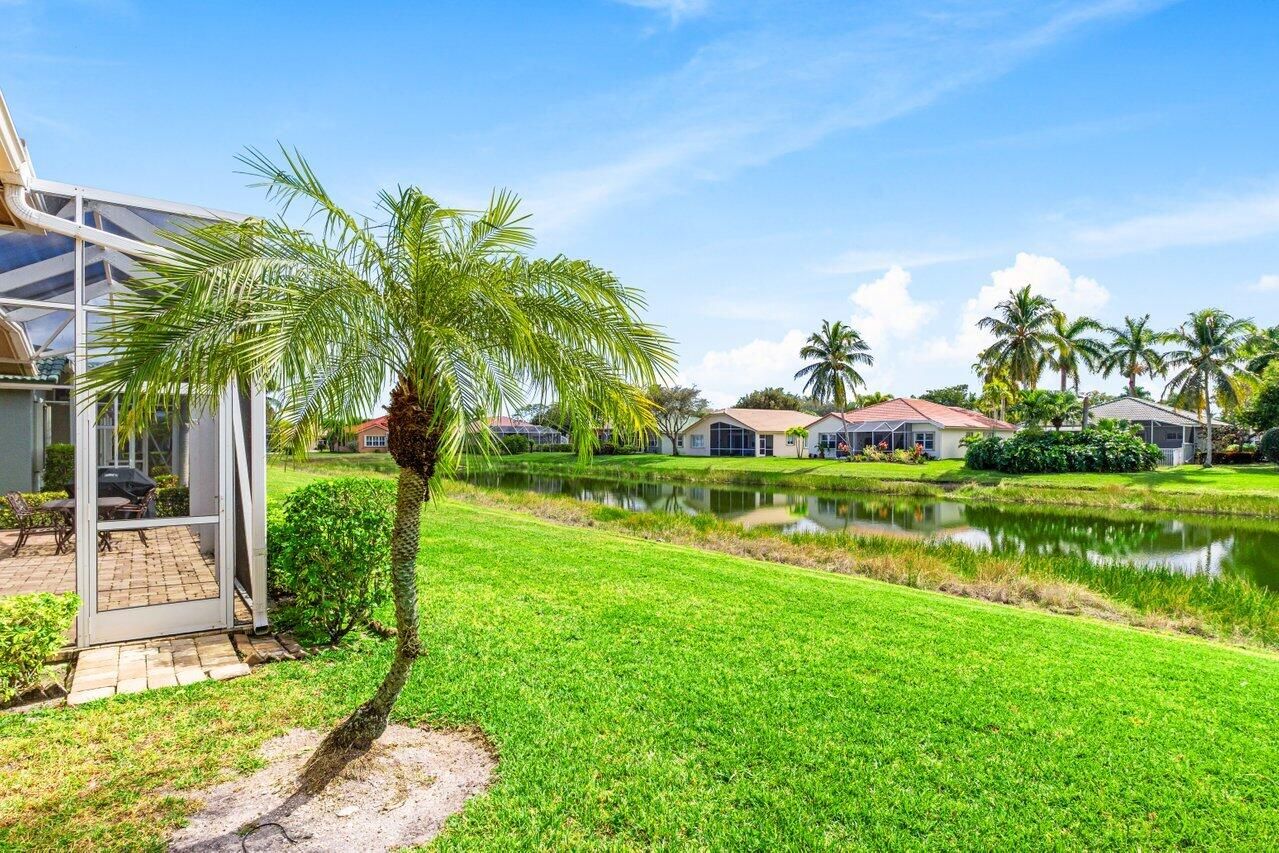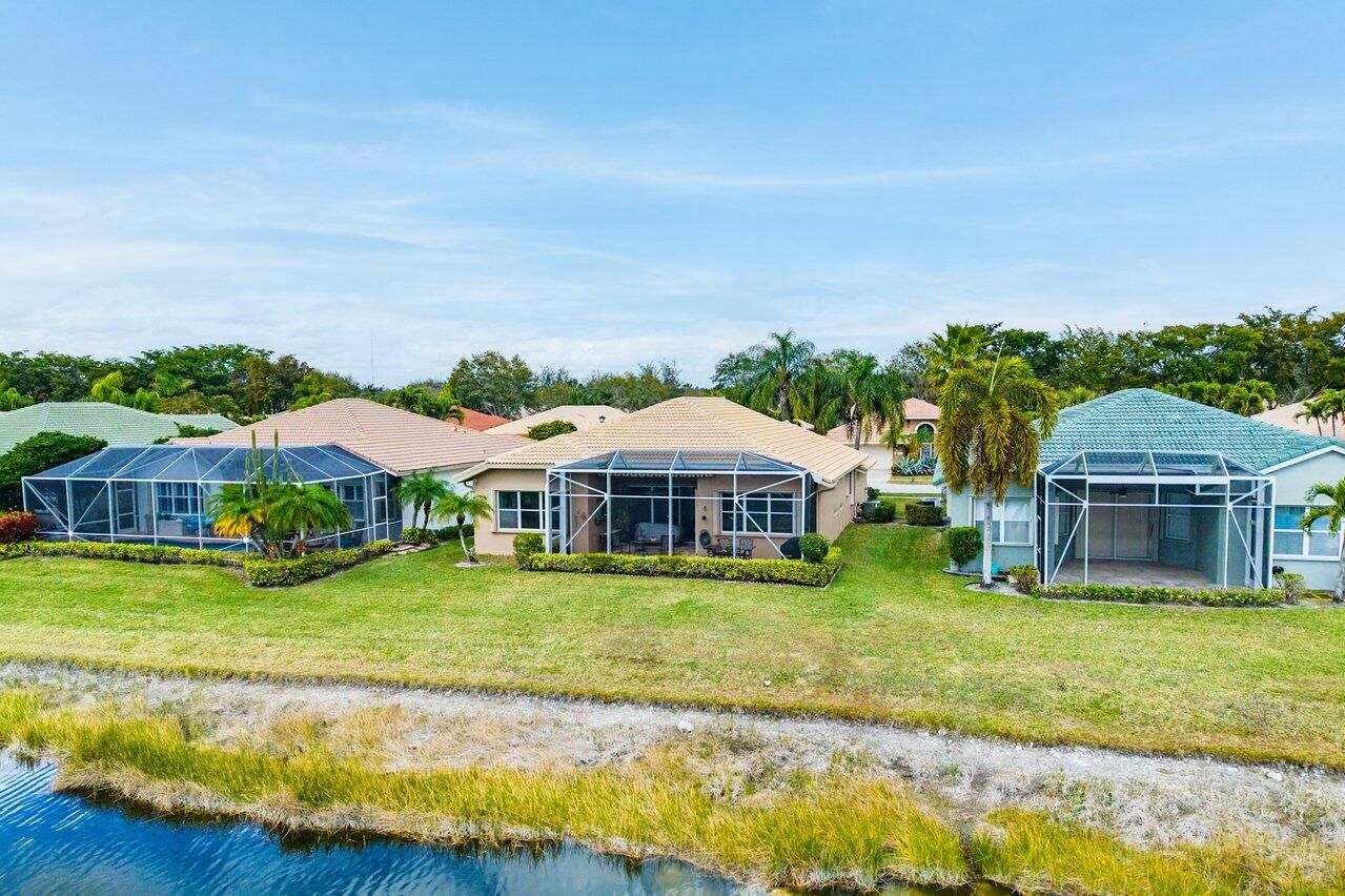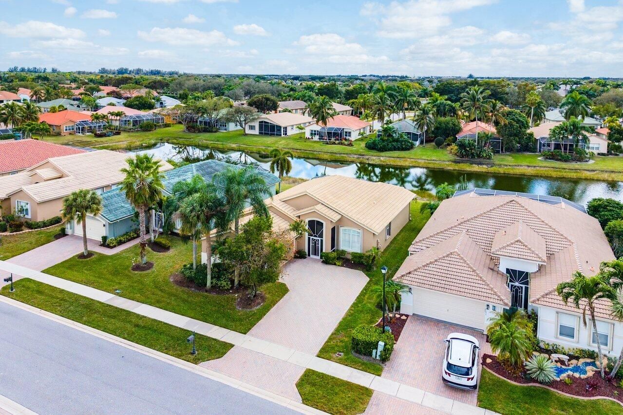 Impeccably maintained and perfectly positioned on the lake, this 3-bedroom, 2-bath residence is located in the desirable Palermo section of the active 55+ gated community of Venetian Isles. Can be offered fully furnished if desired turnkey! This light-filled home features porcelain wood-look tile flooring, volume ceilings throughout, and custom millwork in the family room, adding architectural interest and warmth. The spacious layout includes a large family room, open kitchen, and a separate dining area with a custom built-in table—ideal for both everyday living and entertaining. The updated and spacious kitchen features white cabinetry, granite countertops, and a breakfast island providing ample workspace, and opens seamlessly to a light and bright dining area. The primary suite overlooks the lake and serves as a peaceful retreat, offering generous closet space and an ensuite bath with a separate shower and spa tub. The split floor plan includes two additional bedrooms and a full bath, providing privacy for guests. Enjoy Florida living at its best from the extended screened lanai with expansive lake views. Additional features include accordion shutters for storm protection and a two-car garage. Venetian Isles offers resort-style living with a newly renovated, state-of-the-art clubhouse featuring a restaurant and café, full-service bar, rooftop lounge and patio, resort pool, resistance pool, fitness center, yoga studio, pickleball, tennis, bocce, putting green, billiards, card rooms, library, arts and crafts center, and an active social calendar with shows and events year-round. Don't miss this opportunity to enjoy luxury living in one of Boynton Beach's most sought-after 55+ communities.