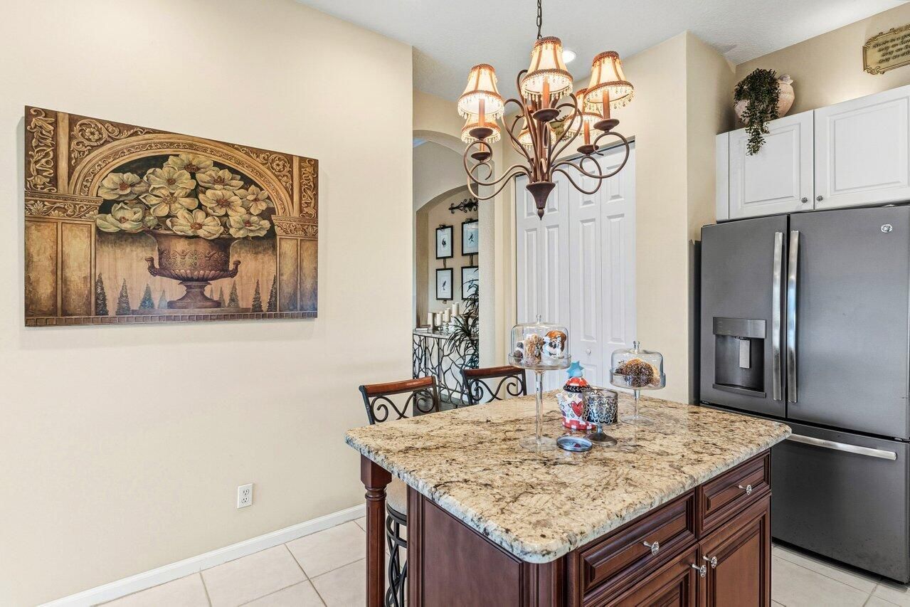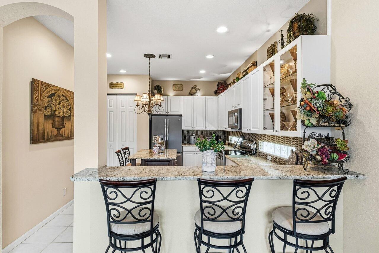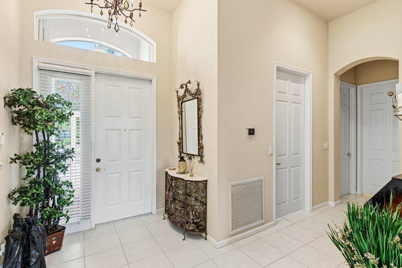 Impeccably maintained and perfectly positioned on the lake, this 3-bedroom, 2-bath residence is located in the desirable Palermo section of the active 55+ gated community of Venetian Isles. Can be offered fully furnished if desired turnkey! This light-filled home features porcelain wood-look tile flooring, volume ceilings throughout, and custom millwork in the family room, adding architectural interest and warmth. The spacious layout includes a large family room, open kitchen, and a separate dining area with a custom built-in table—ideal for both everyday living and entertaining. The updated and spacious kitchen features white cabinetry, granite countertops, and a breakfast island providing ample workspace, and opens seamlessly to a light and bright dining area. The primary suite overlooks the lake and serves as a peaceful retreat, offering generous closet space and an ensuite bath with a separate shower and spa tub. The split floor plan includes two additional bedrooms and a full bath, providing privacy for guests. Enjoy Florida living at its best from the extended screened lanai with expansive lake views. Additional features include accordion shutters for storm protection and a two-car garage. Venetian Isles offers resort-style living with a newly renovated, state-of-the-art clubhouse featuring a restaurant and café, full-service bar, rooftop lounge and patio, resort pool, resistance pool, fitness center, yoga studio, pickleball, tennis, bocce, putting green, billiards, card rooms, library, arts and crafts center, and an active social calendar with shows and events year-round. Don't miss this opportunity to enjoy luxury living in one of Boynton Beach's most sought-after 55+ communities.