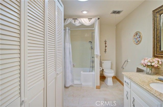 Welcome to this well-loved charming Granada cottage (2bd/1ba). Meet your neighbors while sitting on the beautiful front patio or working in your garden. Enjoy your access to three great community assets: Serpentine Walk, Clubhouse Three, the Performing Arts Center and Clubhouse One with a fitness center, swimming pool and much more. Walk into your new home and notice the pride of the owner. The kitchen was updated with new countertops, a dishwasher and recessed lighting. The adjacent dining area allows for a full sized table and hutch – perfect for entertaining. The living room is spacious with a vaulted ceiling. Dual paned windows and ceiling fans have been added. Laminate flooring flows throughout the home with tile in the bathroom. Other great features include a full sized stackable washer/dryer, smooth ceilings, mirrored closet doors, and Central AC/Heating. Make this lovely home yours and enjoy this fun and active community located in Laguna Woods Village, the premier 55+ active community in Orange County. The Village is just a 15-minute drive from Laguna Beach and it offers many great amenities with over 200 clubs for all hobbyists. Popular activities include the 27-hole golf course, tennis, pickleball, performing arts, three fitness centers, five swimming pools, seven clubhouses and much more! Clubhouse 4 boasts amazing classes in art, ceramics, wood shop, jewelry making, and sewing. It’s time to enjoy your retirement.