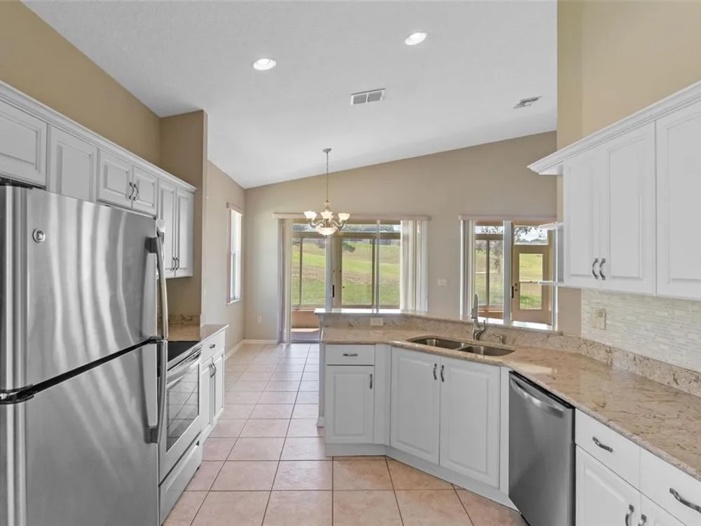One or more photo(s) has been virtually staged. Welcome to 890 Summit Greens Boulevard! Enjoy resort style living in the active & highly sought after 55+ Golf Community of Summit Greens. Your new home offers impeccably maintained curb appeal with a paver driveway, lush landscaping & views of the community golf course. This move-in ready home offers you 3 full Bedrooms & 2 full Bathrooms. Fully appointed & upgraded kitchen (2021) with new 42" cabinets, Quartz countertops, beautiful backsplash & Stainless Steel Appliances. Your dining nook offers built in cabinet storage along w/ample space for a small dinette. The Family area offers views to the expansive 25" long lanai with privacy & entertaining opportunities. The Primary Suite is tucked towards the back with no rear neighbors & a newly upgraded en-suite appointed with Quartz Dual Sinks, soaking tub & walk in shower. The conveniences of this home are endless with neutral paint throughout, newer carpeting, two generous additional bedrooms & a 2nd bathroom (also with an upgraded quartz sink). Enjoy the Florida winters with this well appointed home & no worries. Roof (2021), HVAC (2021). You are a golf cart ride away from the Clermont Favorite - Clermont National Golf Course which offers nighttime fun, daytime activities for all & all of the conveniences that Clermont offers. Minutes to the Turnpike, Shopping, Hospitals & Restaurants.