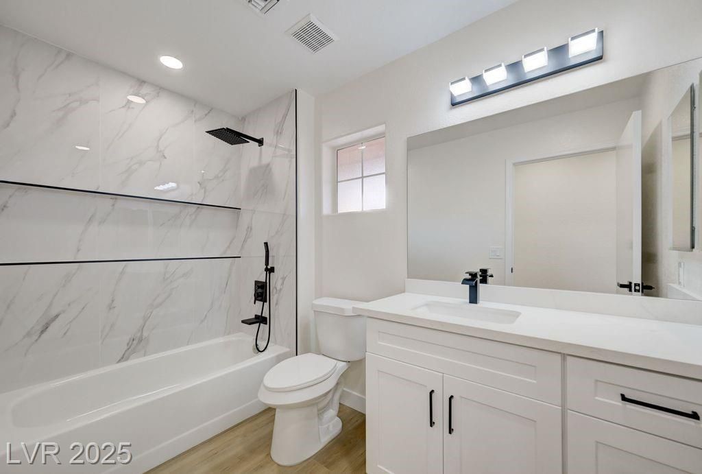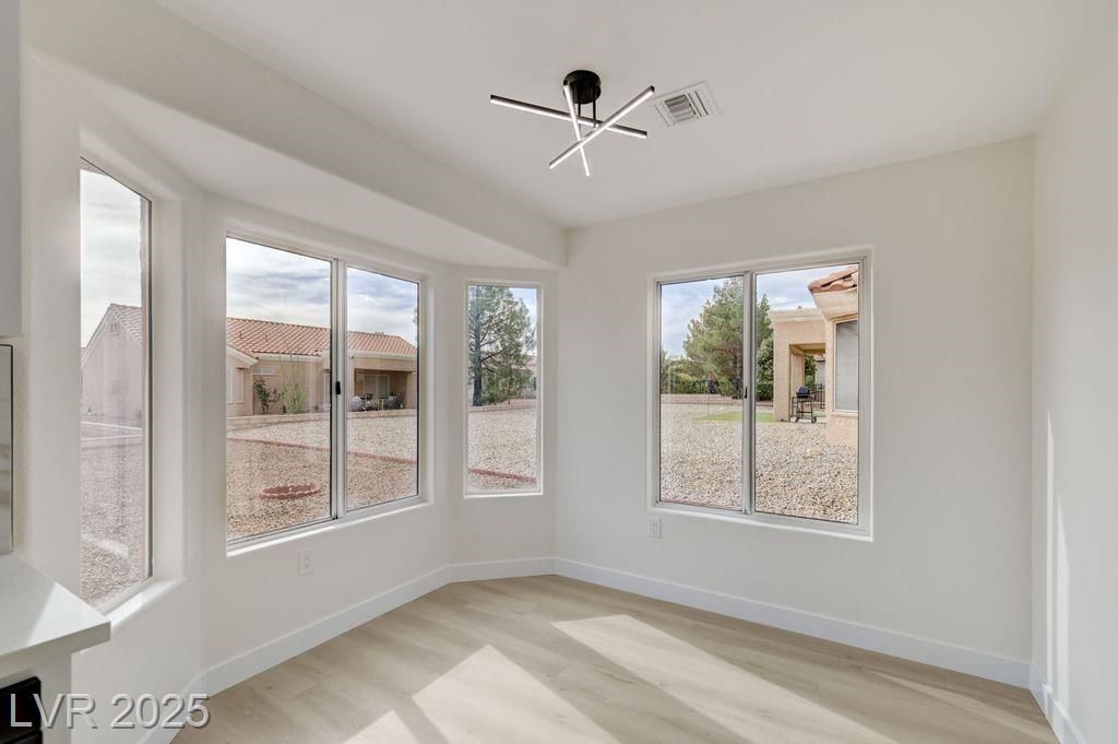 Fantastic completely remodeled open concept home in the age restricted 55+ Sun City Summerlin community! This home features new quartz countertops throughout, kitchen sink and the stove location were switched unlike other remodels creating a more functional kitchen, new custom cabinets throughout, new LG black stainless steel appliances, double ovens, microwave, refrigerator, kitchen backsplash, dual bathroom vanities, custom tile shower, new interior paint, laminate flooring with 5 inch baseboards, new plumbing and lighting fixtures, covered patio and vaulted ceilings! Sun City Summerlin has again won best Premier 55+ community in the state of Nevada and #3 in the US with 3 golf courses, 2 restaurants, 4 club houses, many amenities including 4 indoor/outdoor pools, gyms, tennis and pickle ball courts, racquetball court, baseball park, miniature golf, roaming patrols, social clubs and activities galore! Living in Sun City Summerlin makes you feel like you are on vacation!
