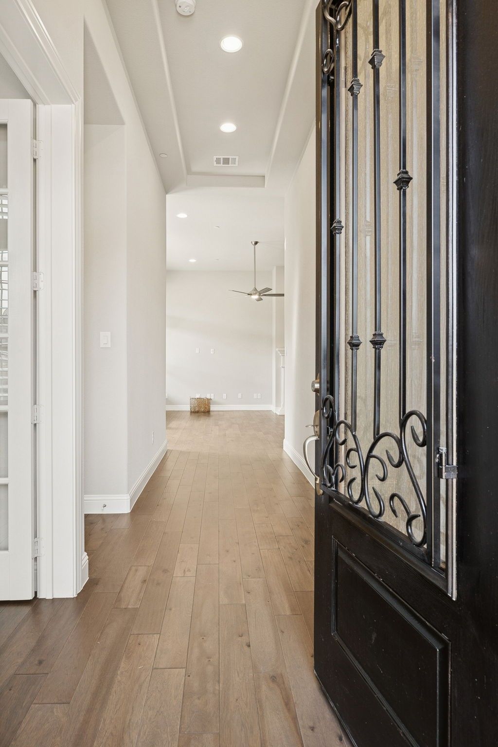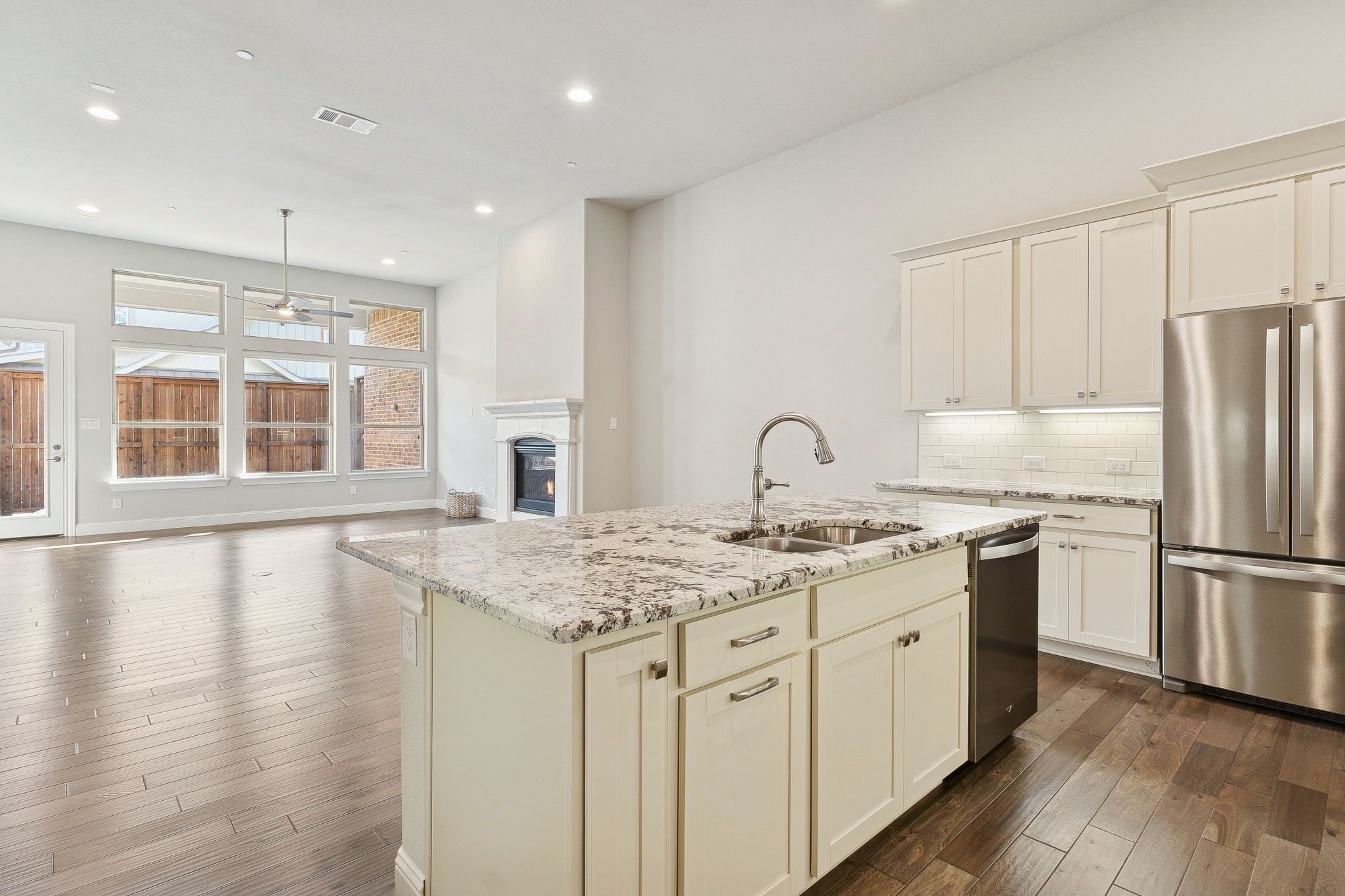 Welcome to 8901 Woodheath Circle, a beautifully appointed one-story home offering low-maintenance luxury living in the heart of Craig Ranch. This 2019 Trendmaker Craftsman-style home offers a light, bright, and contemporary feel with an impressive high-end finish throughout. Upon entry, soaring ceilings, beautiful wood floors, and abundant natural light create an inviting, modern atmosphere enhanced by numerous upgrades and custom details. The open-concept living room is highlighted by 10 ft. ceilings and a striking gas fireplace, providing an elegant focal point. The chef’s kitchen features crisp white cabinetry, upgraded granite countertops, a large center island, stainless steel appliances, a gas cooktop, and tons of storage, along with a huge walk-in pantry and butler’s pantry for effortless entertaining. The spacious primary retreat boasts vaulted ceilings, wood floors, and 2 oversized walk-in closets. The spa-like ensuite bath includes dual sinks, granite countertops, a garden tub, & seamless glass shower. The convenient split-bedroom layout offers an additional bedroom with a large walk-in closet and private bath. A dedicated office near the entry provides glass doors and a large window with a view, creating an ideal, light-filled workspace. Outdoor living is equally inviting with a large covered patio offering complete privacy. Additional home features include pre-wiring for sound, shutters and electric shades throughout, and a mudroom off the spacious laundry room. The HOA includes exterior maintenance and landscaping, community irrigation, and exterior insurance, providing a true lock-and-leave lifestyle. Just steps from your front door, enjoy access to the 9,000-square-foot amenity center featuring fitness facilities, a resort-style pool and spa, outdoor grills, and an active social community. With its ideal layout, contemporary design, and premium amenities, this home offers effortless luxury living in one of Craig Ranch’s most desirable neighborhoods.